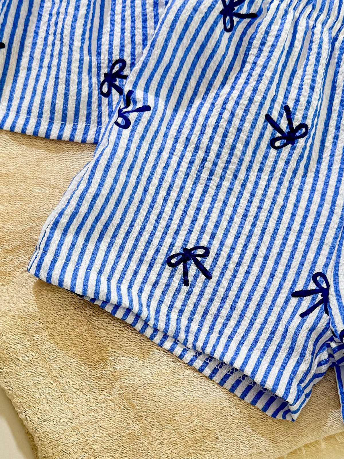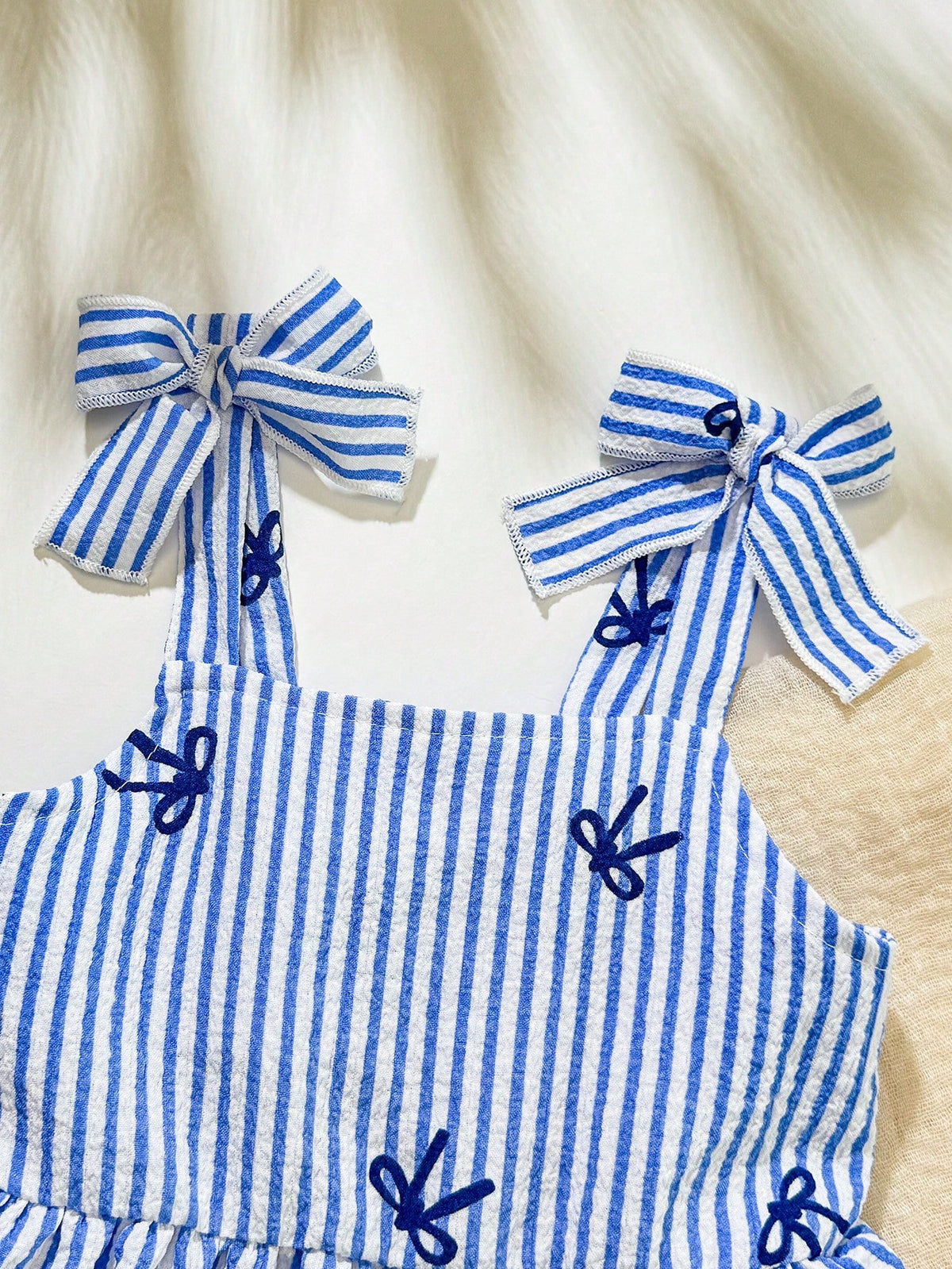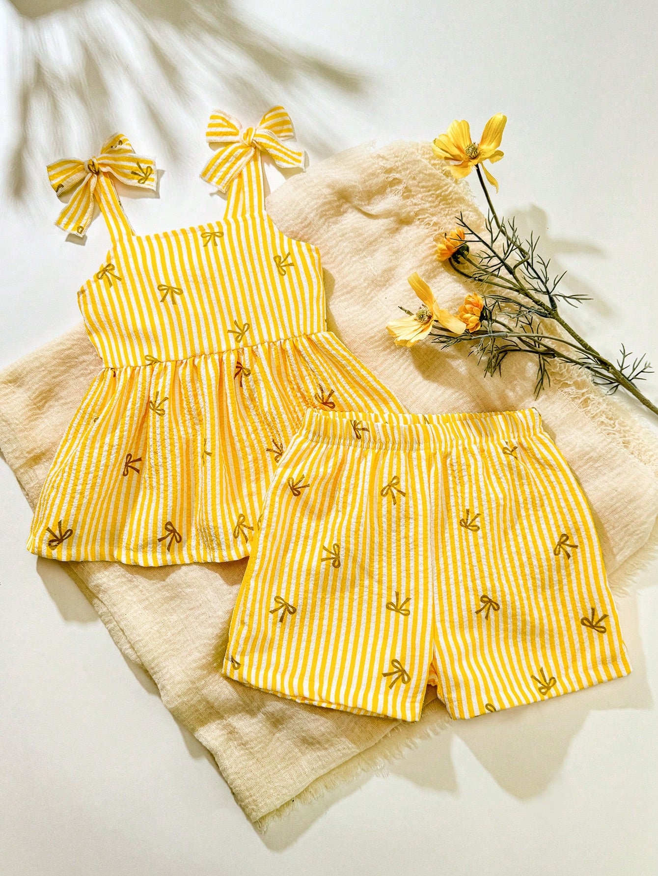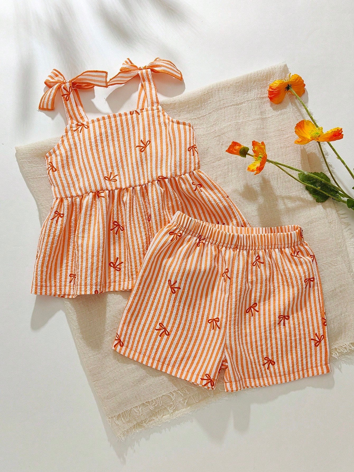 Your little one will look adorable and stay comfy in this 2-piece summer outfit. Featuring a striped camisole top with bow detail and matching shorts, this set is perfect for daily wear, playdates, and outings. Made from soft, breathable fabric to keep your baby girl cool and stylish during warmer days.
