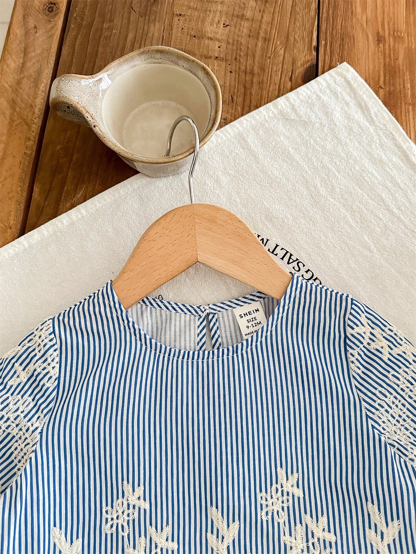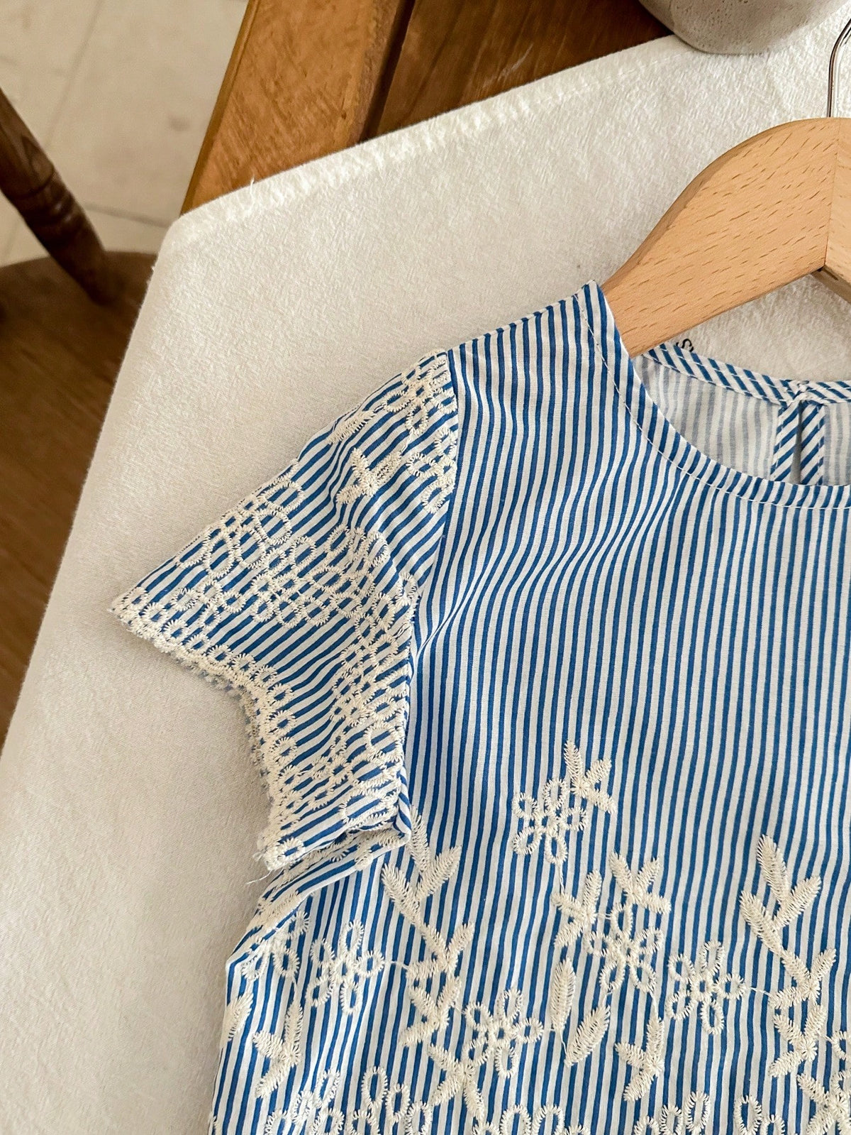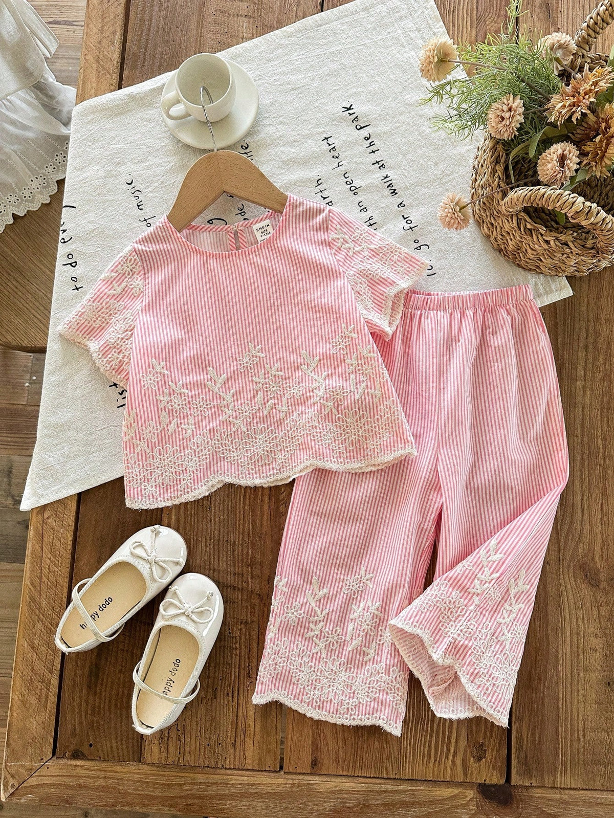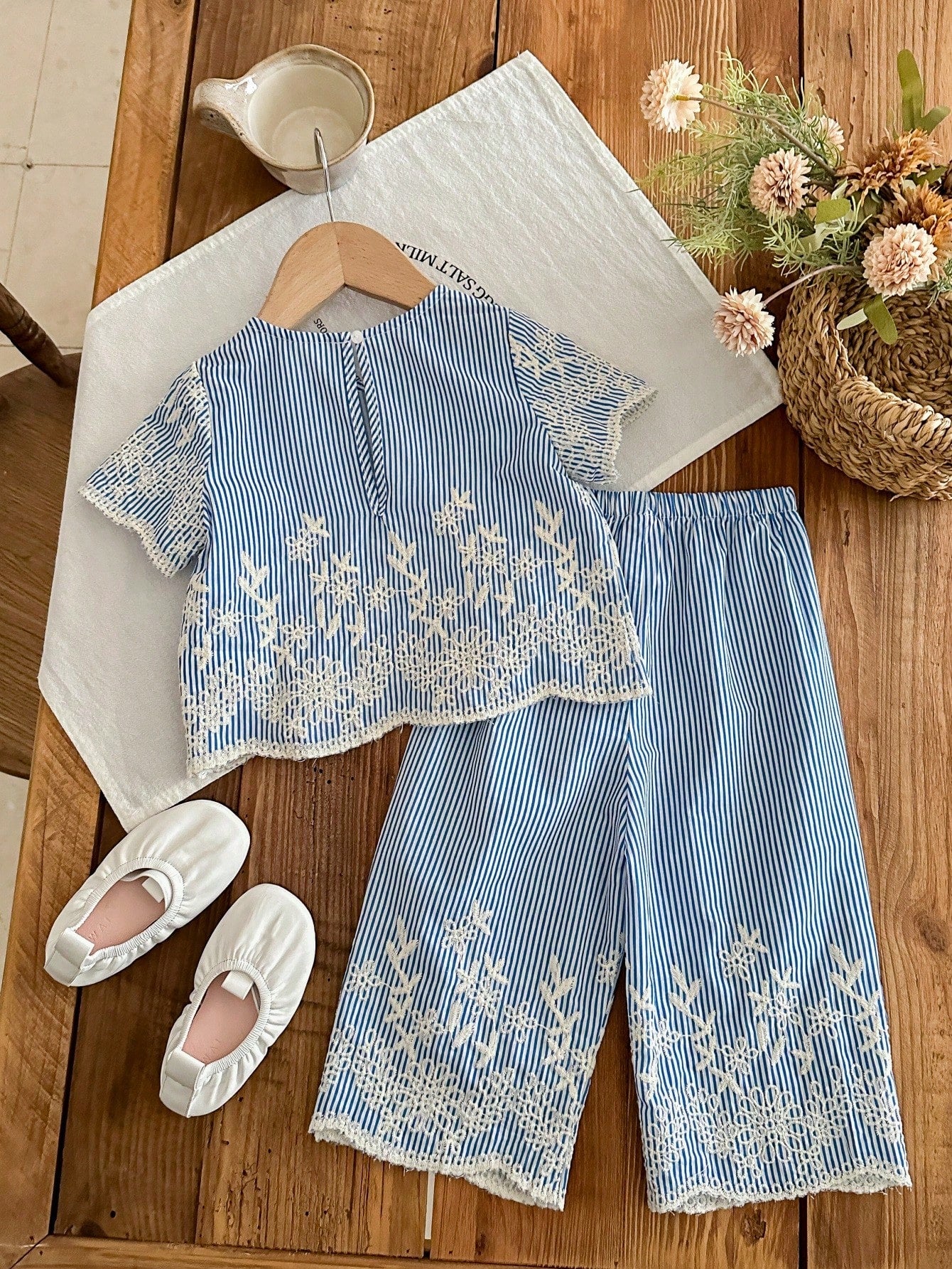 Stripe Floral Top Pants Set - Blue / 4Y-7Y