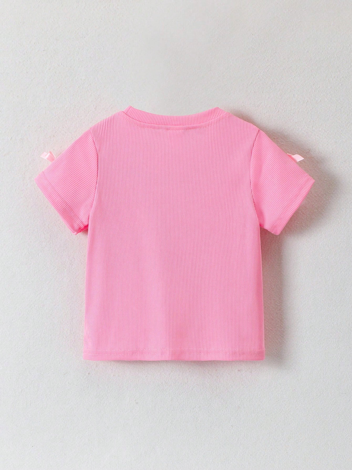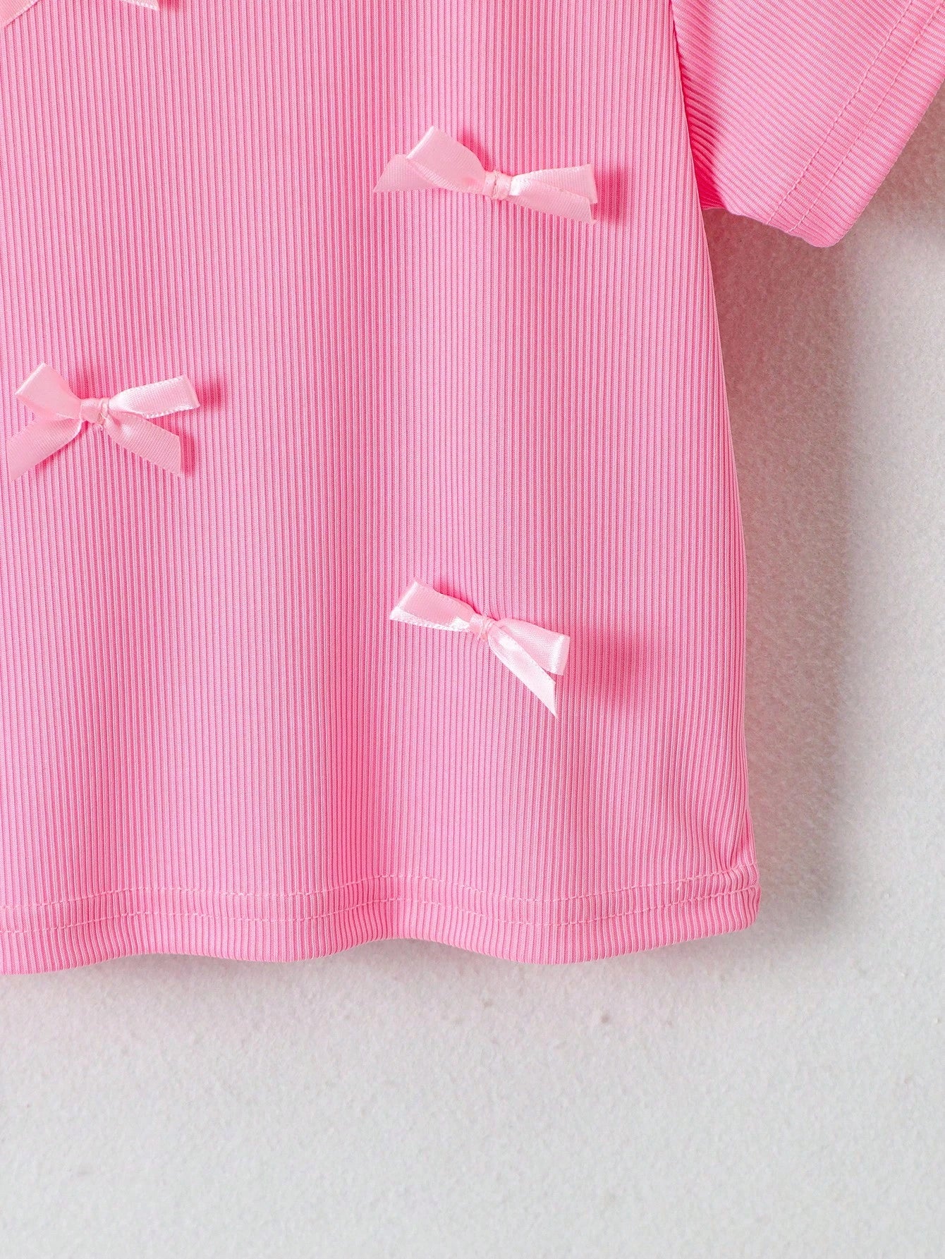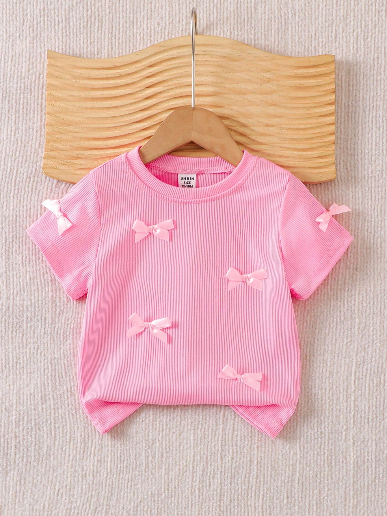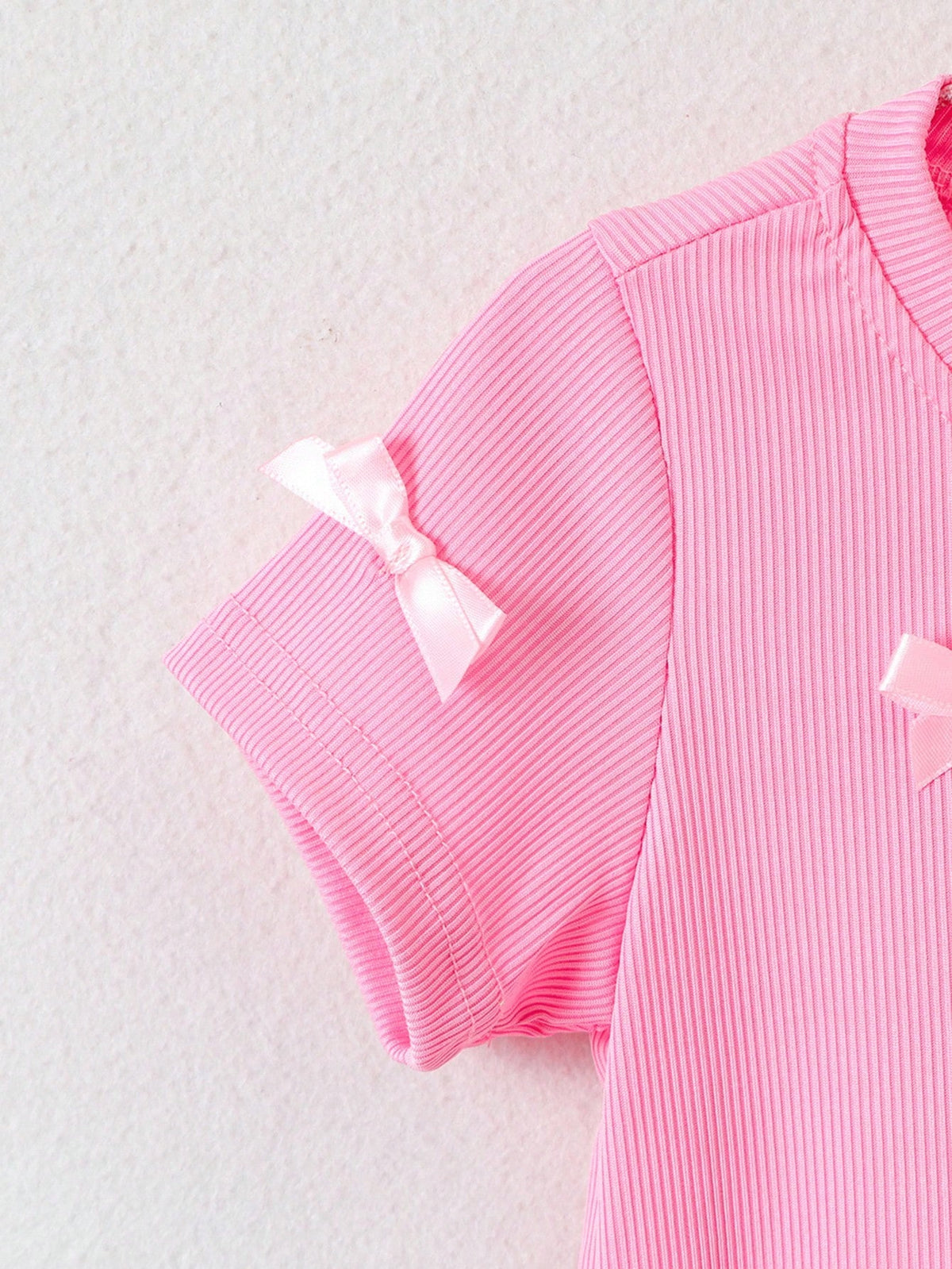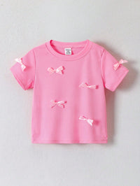 Casual Short Sleeve Bowknot Top - Baby Pink / 3-6M