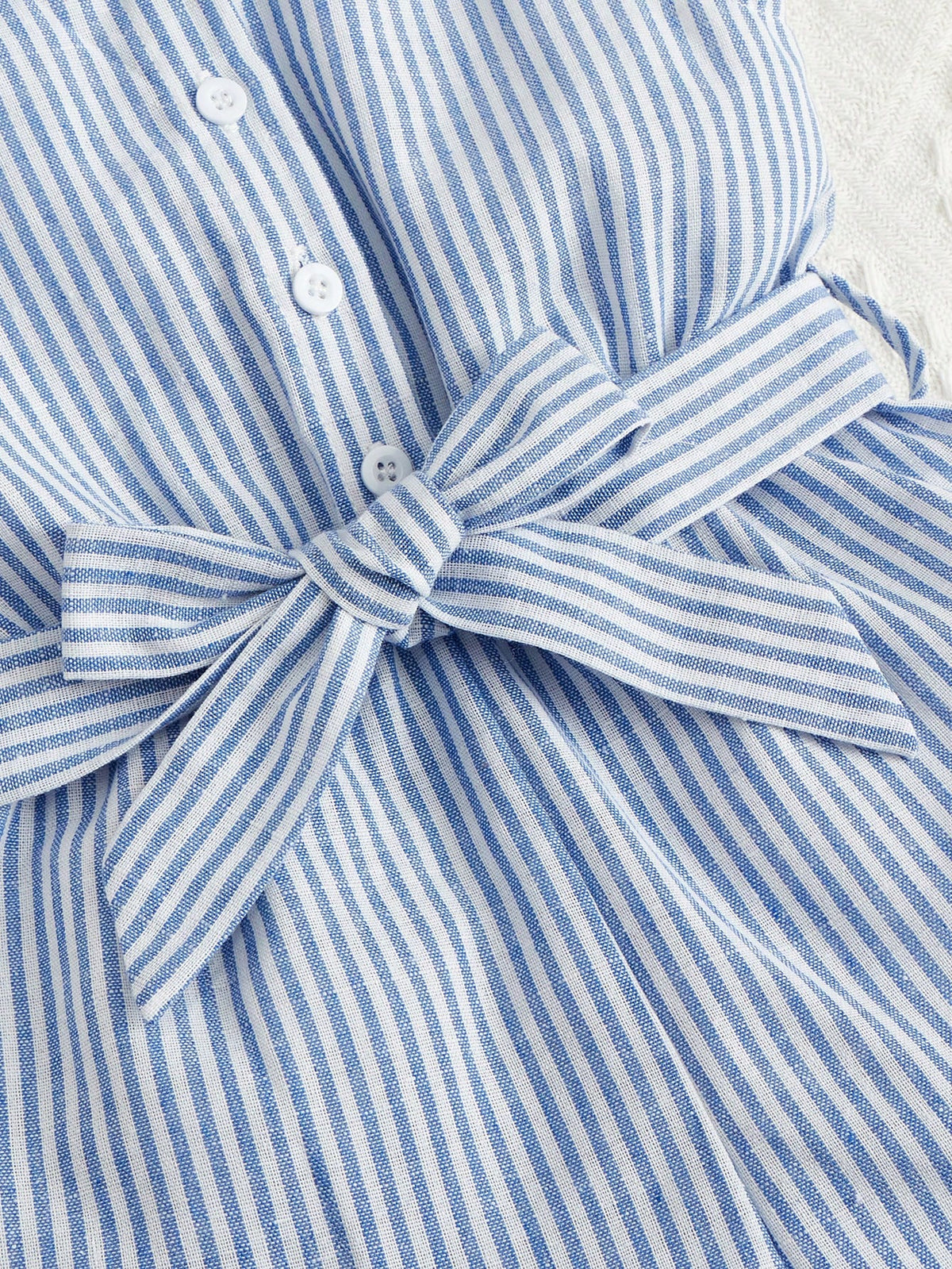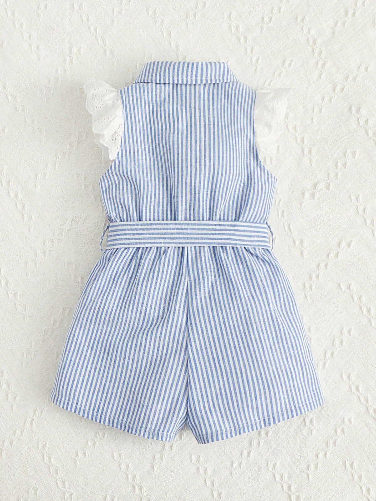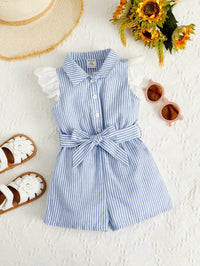 Dress your little one in chic comfort with this striped romper featuring ruffle trim details and a cute belted waist. Perfect for summer days, playdates, and outings, this romper combines stylish design with breathable fabric for all-day wear.