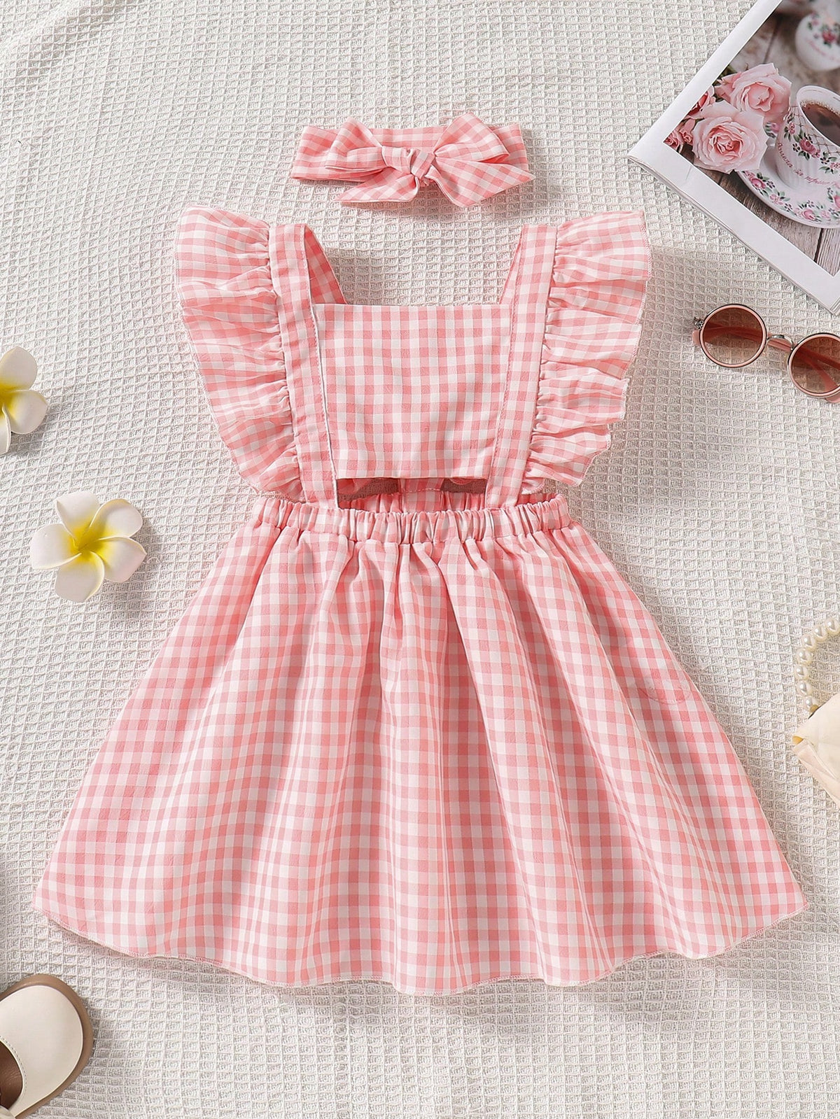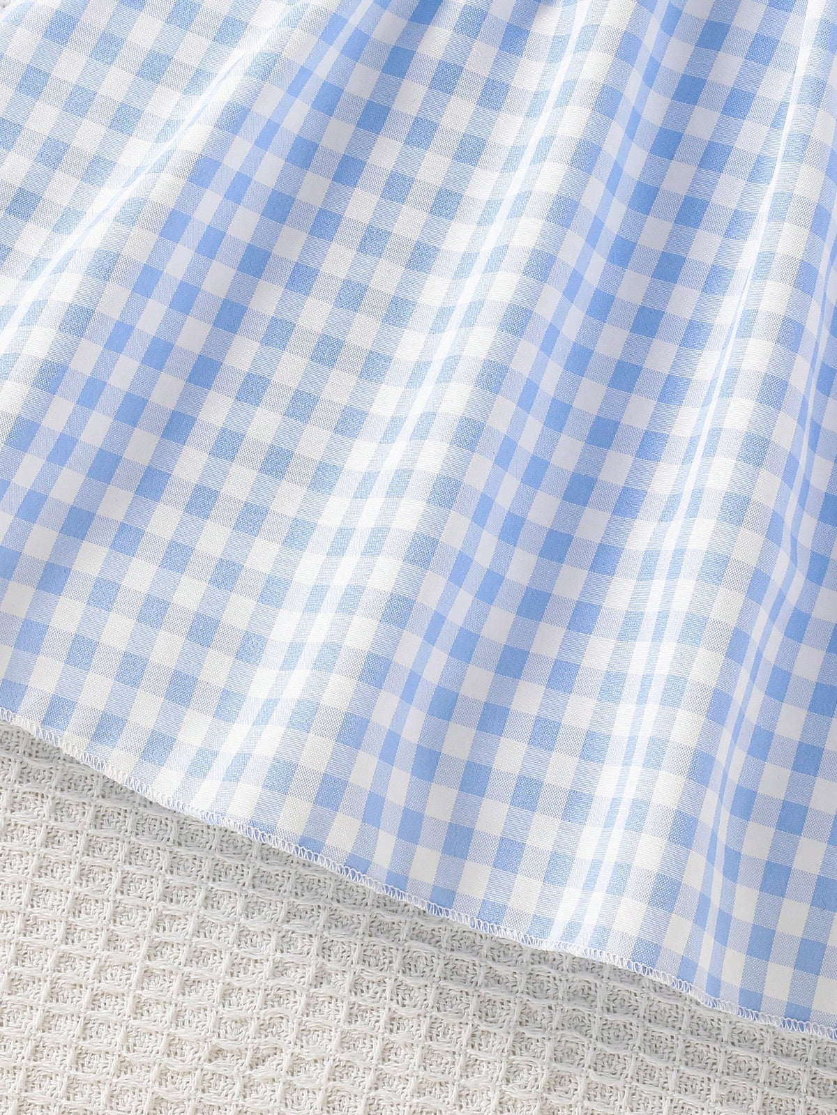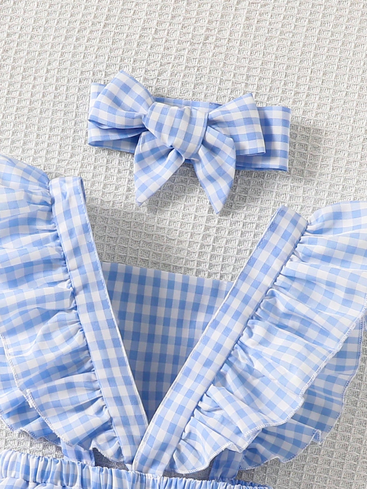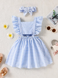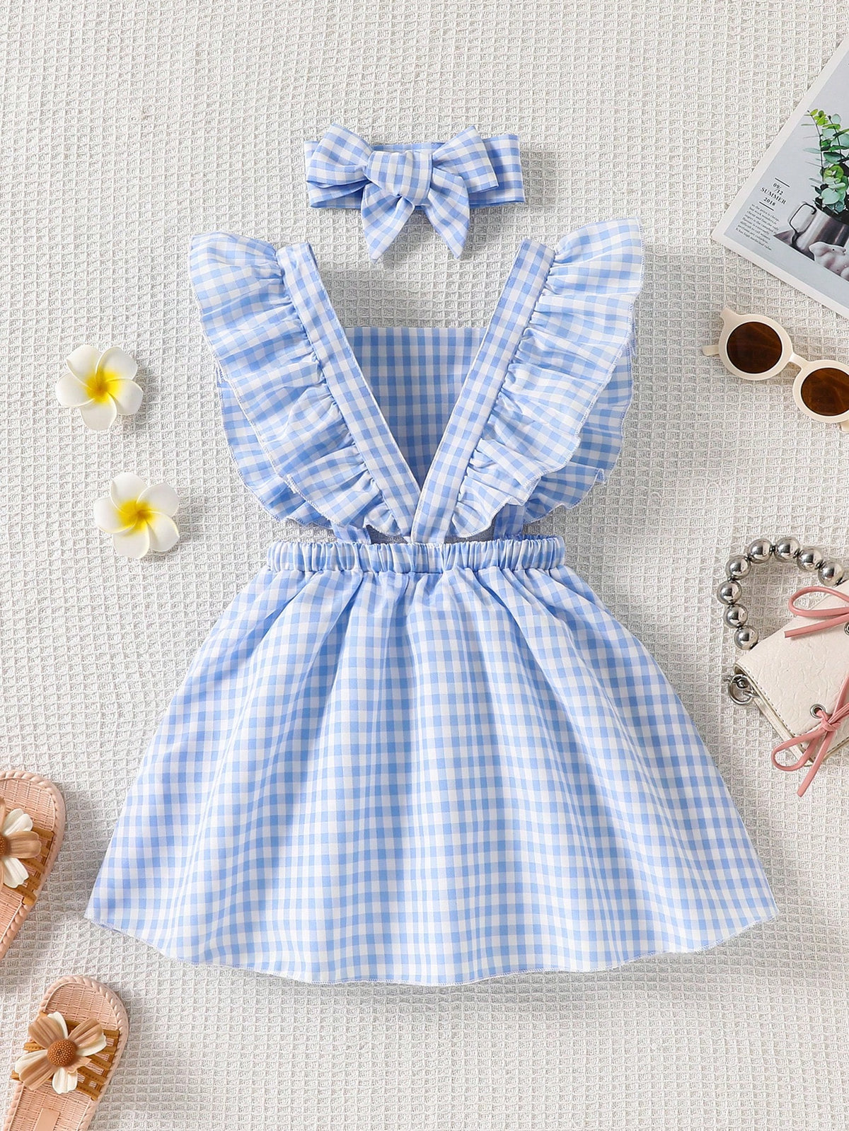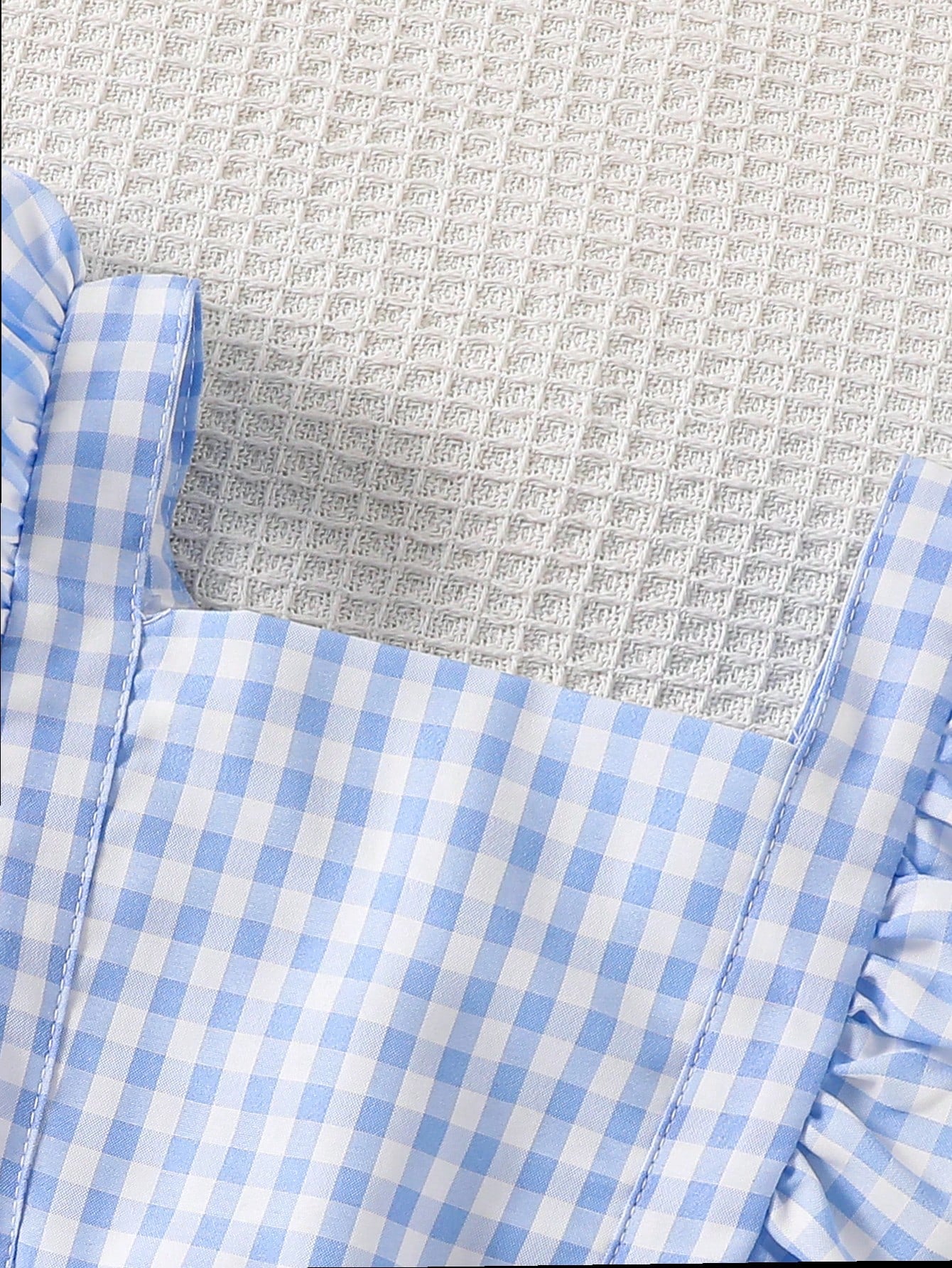 Gingham Ruffle Overall Dress Set - Baby Blue / 3-6M-2-3Y