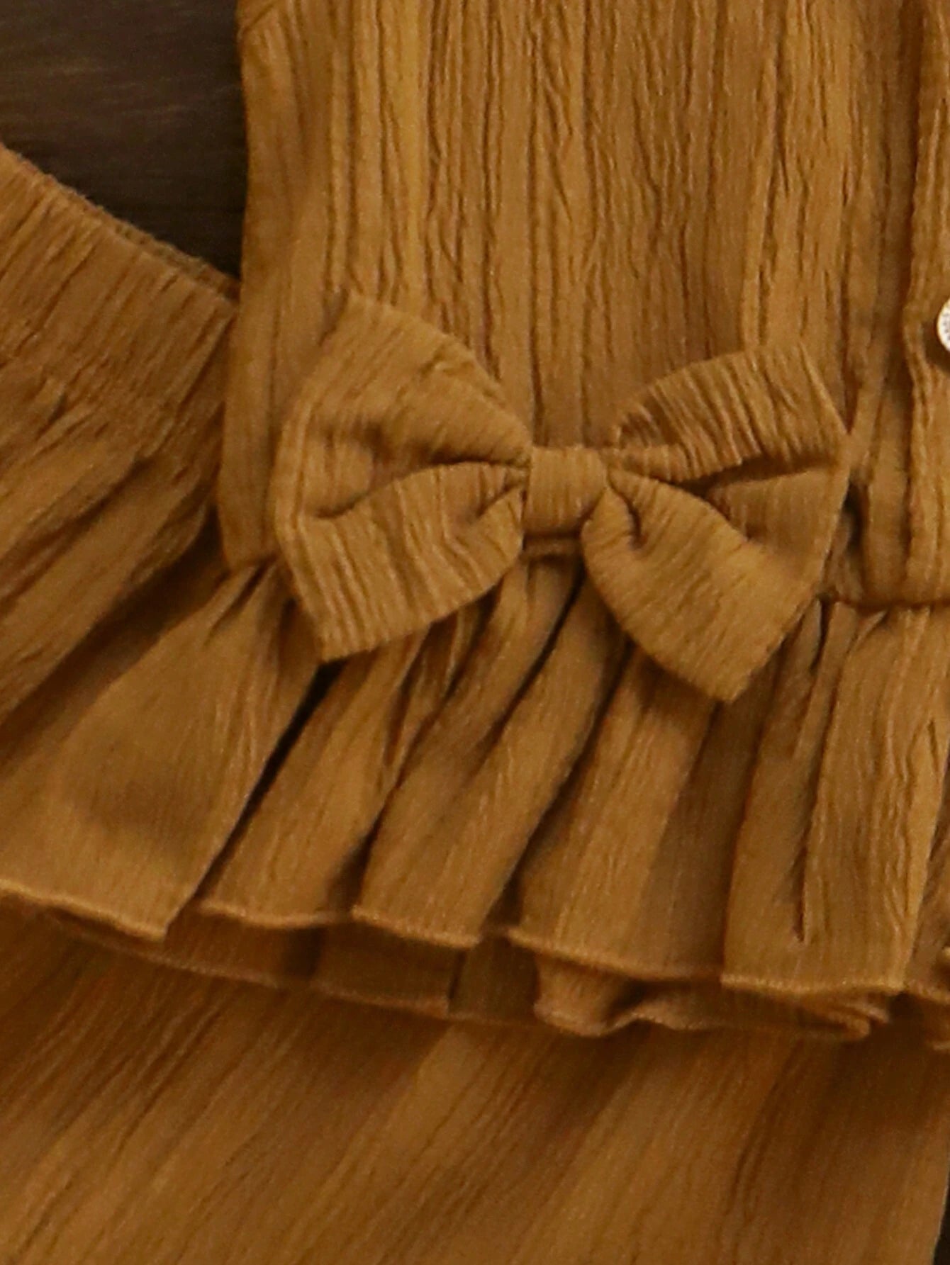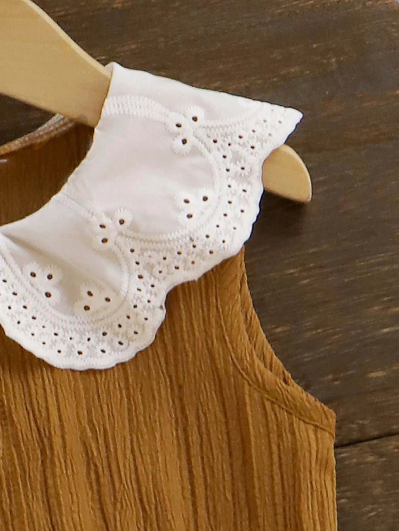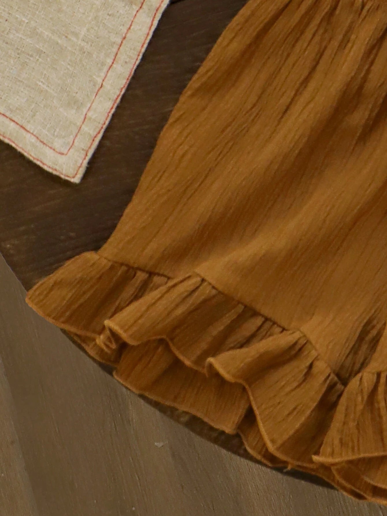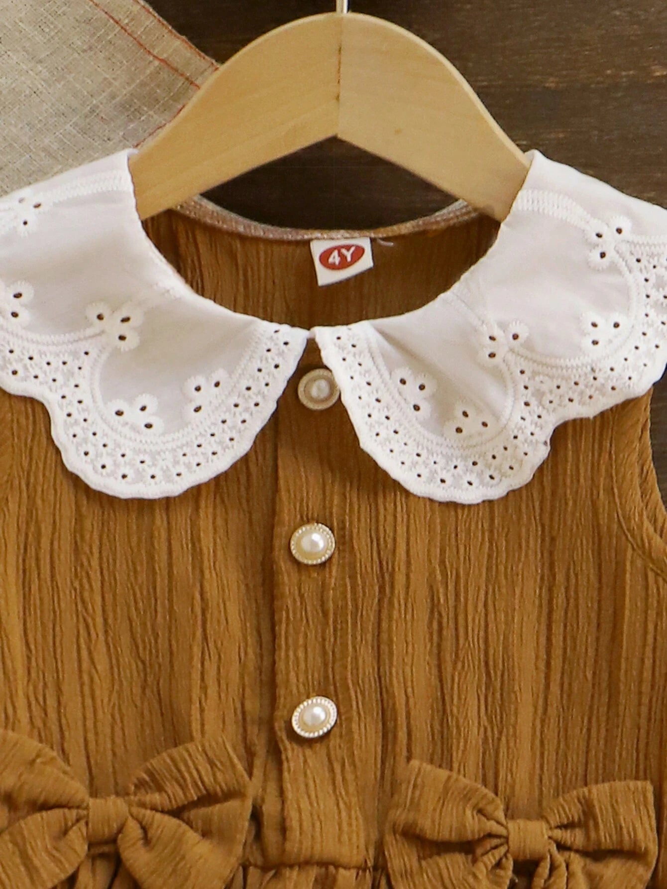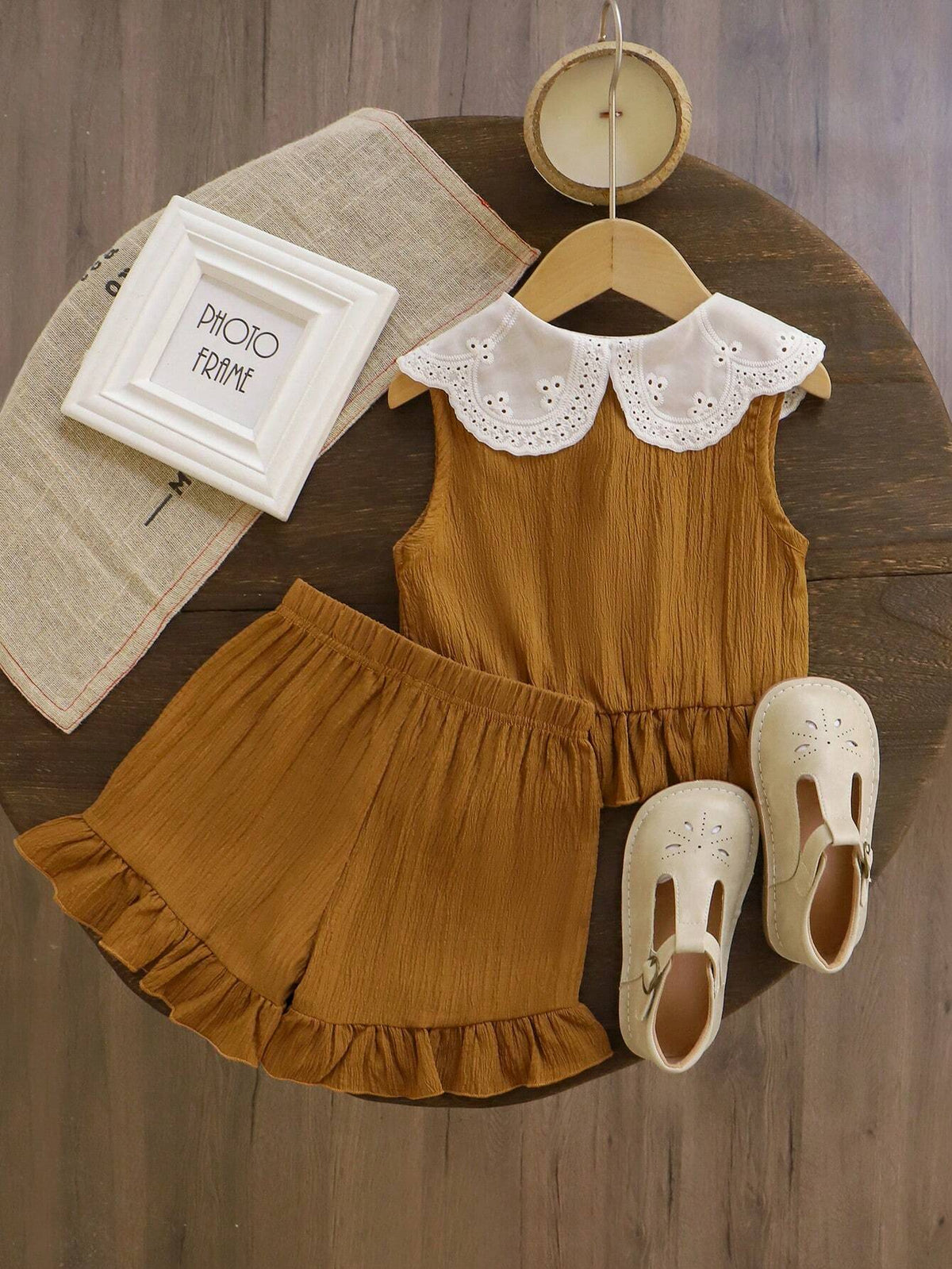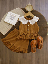 Keep your little girl looking adorable this summer with our 2-piece outfit featuring a Peter Pan collar short-sleeve top and matching ruffled shorts. Designed for ages 4–7, this set is lightweight, breathable, and perfect for warm-weather outings, vacations, or everyday wear. The playful design adds a touch of sweetness to her summer wardrobe.