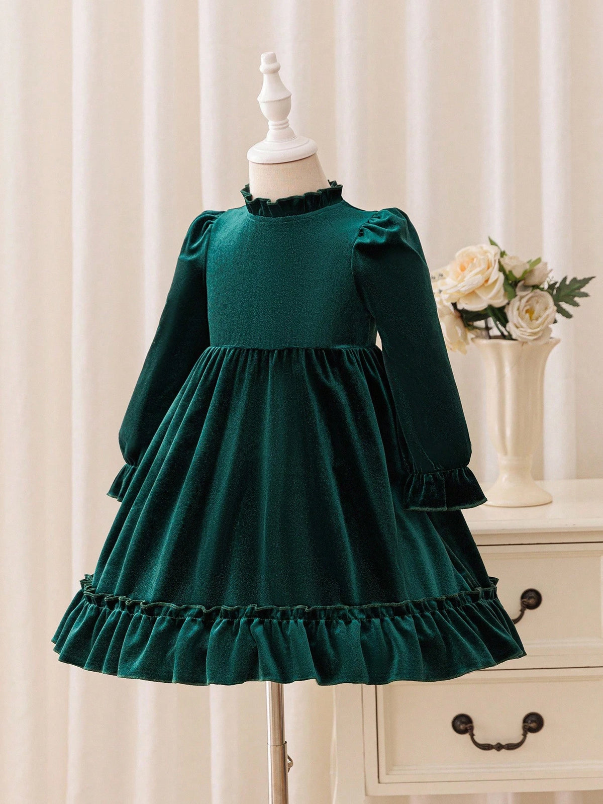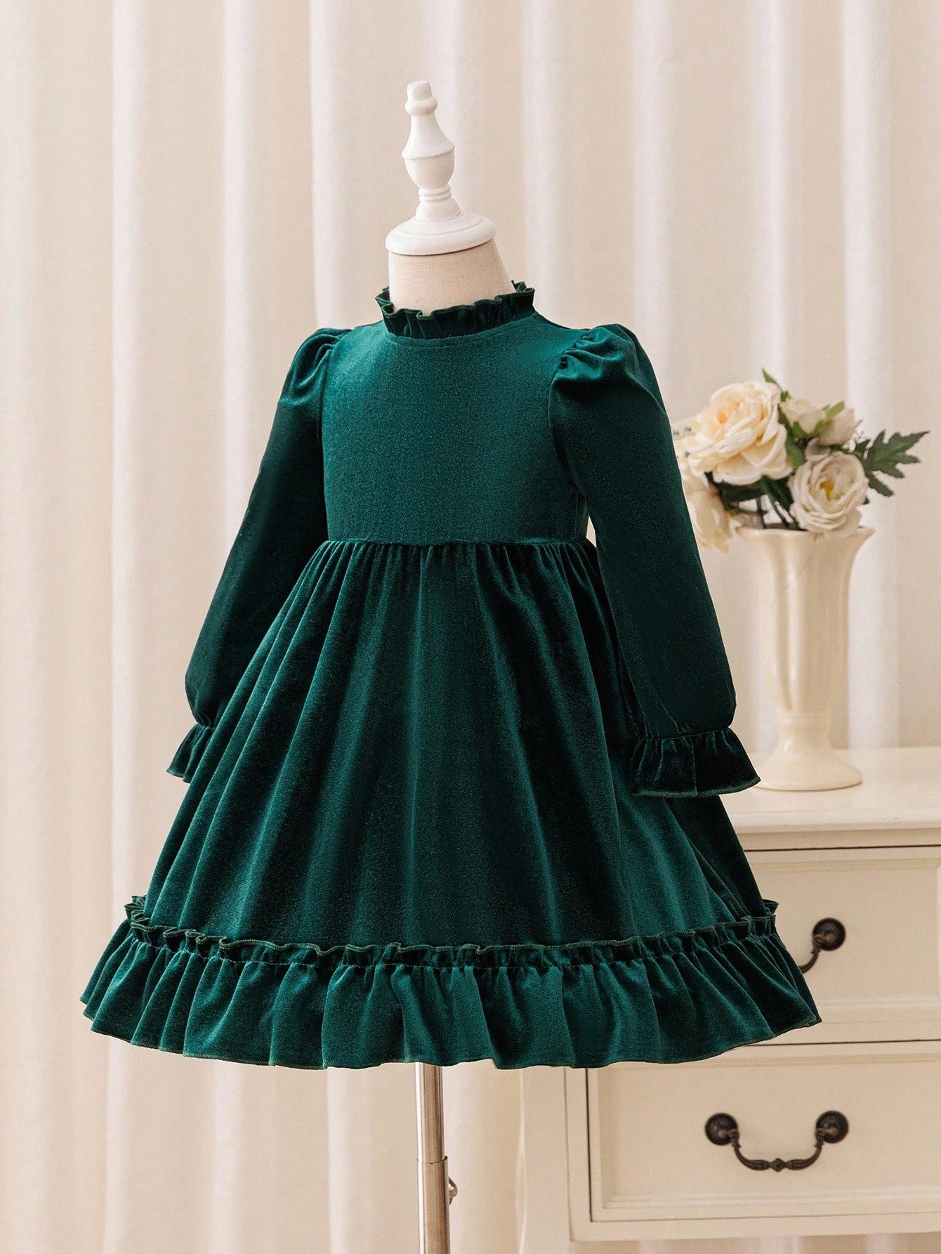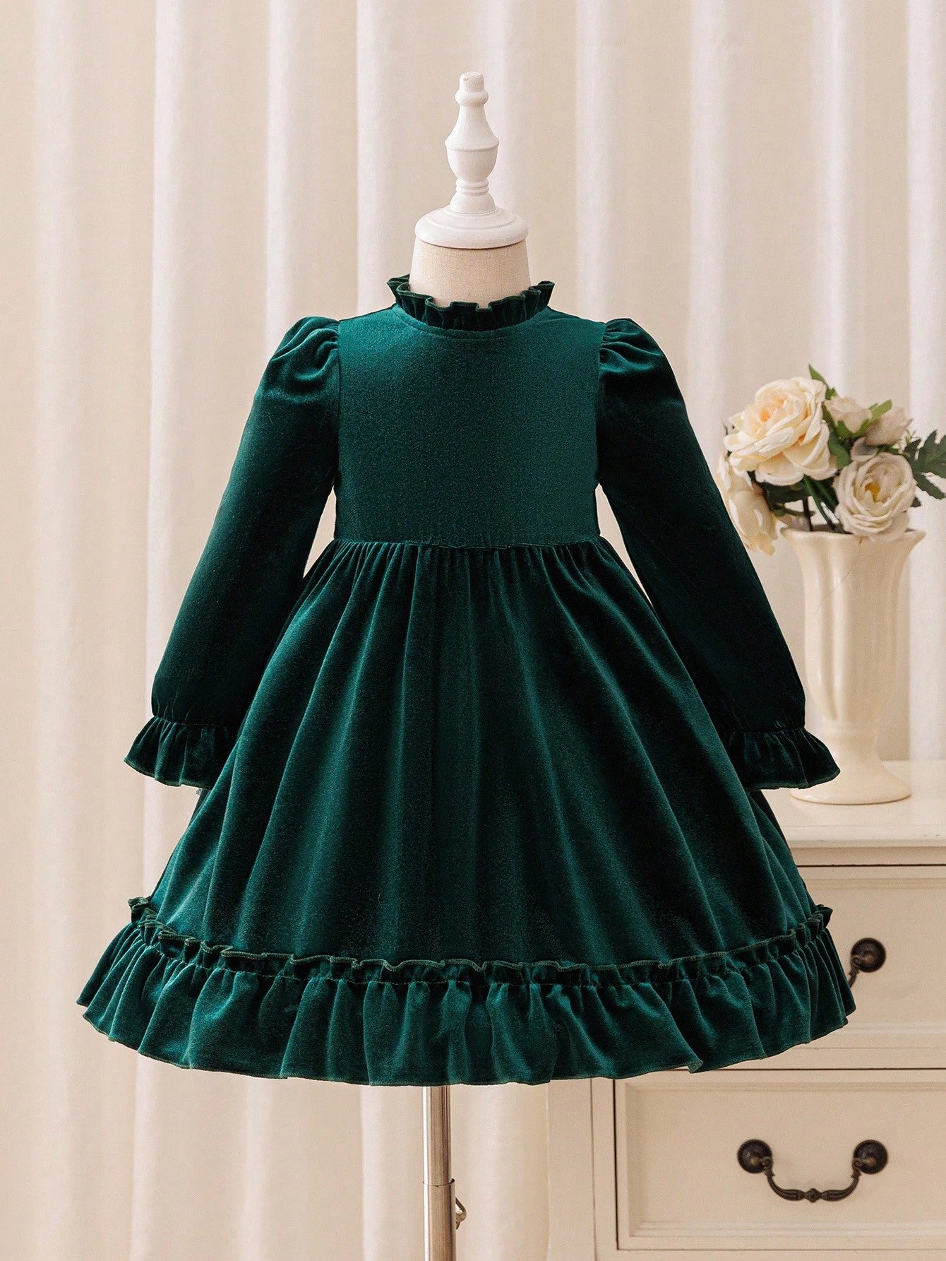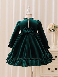 This velvet long sleeve party dress features a luxurious soft fabric, 3D bow detail, and ruffled hem — perfect for birthdays, festive occasions, and Christmas celebrations. Designed for warmth and comfort, it’s an ideal pick for autumn and winter events.
