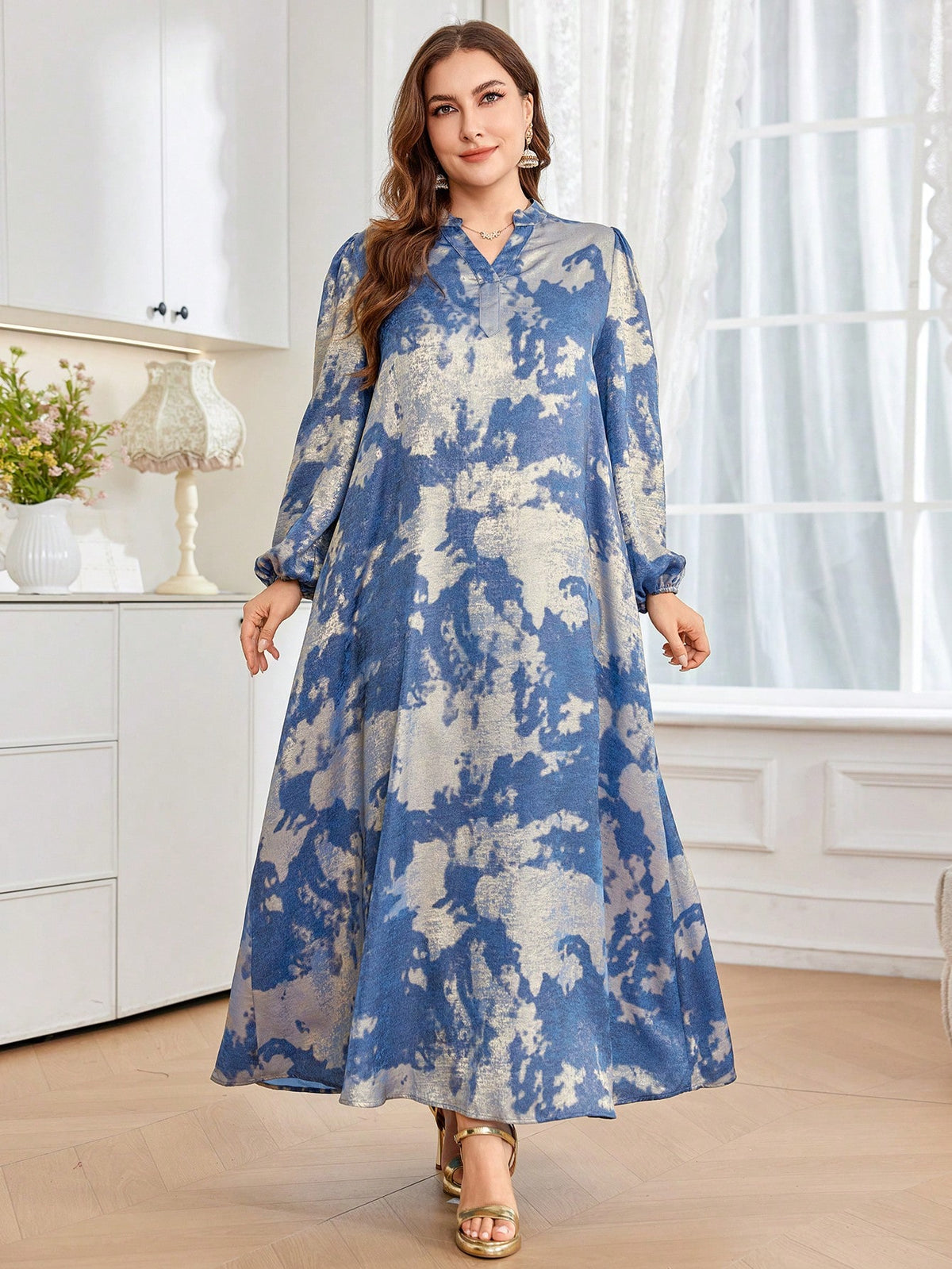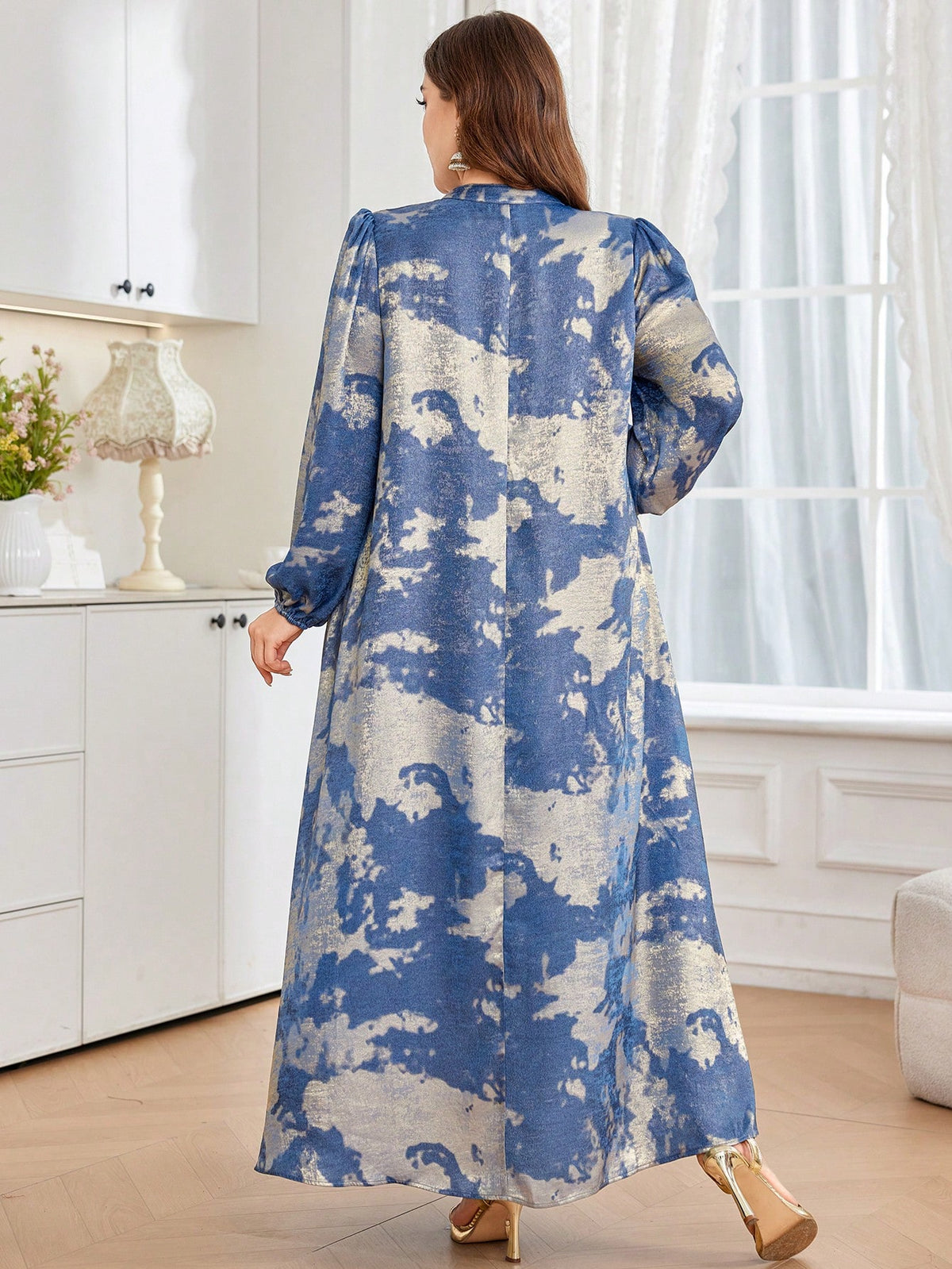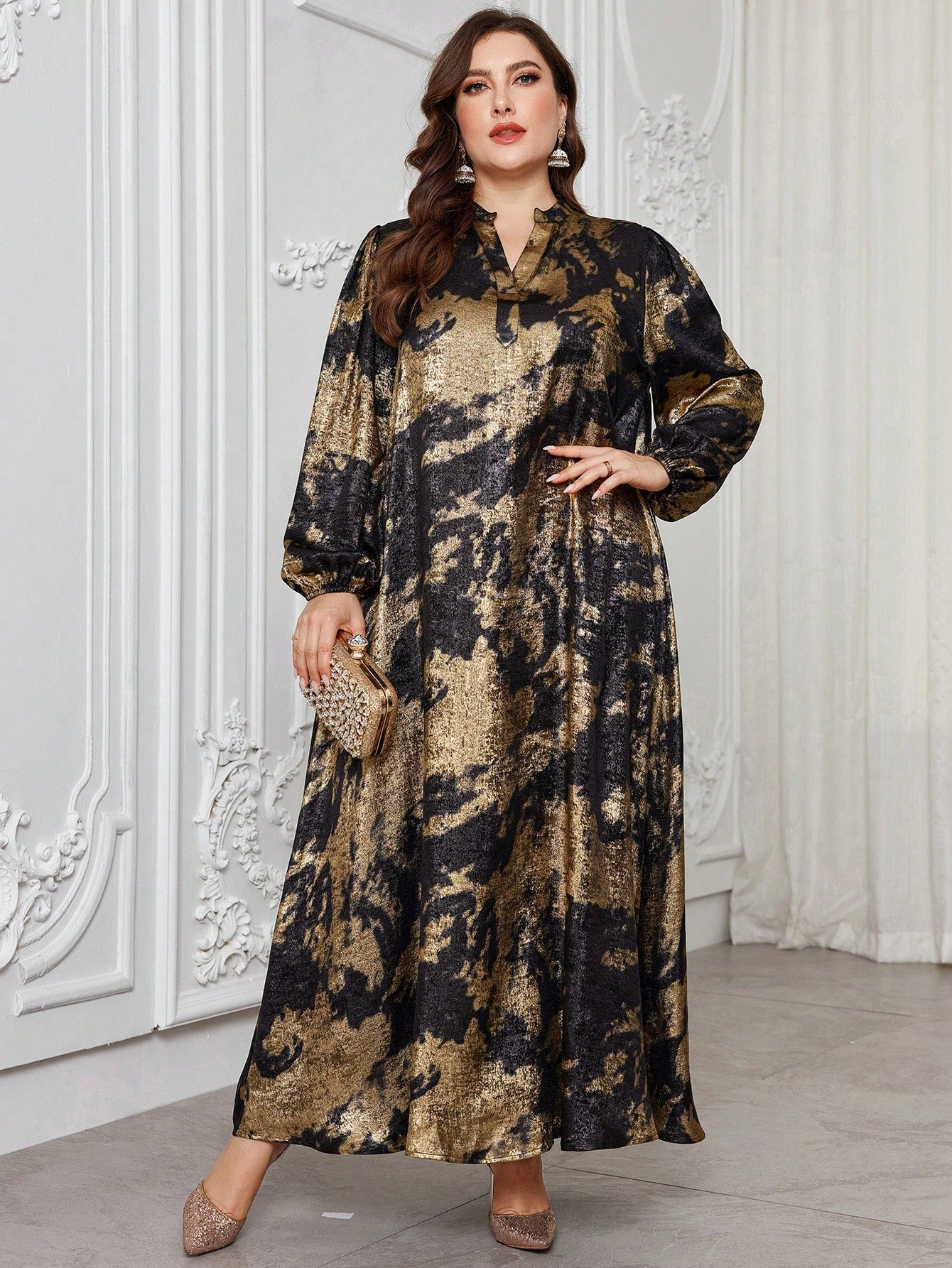 Turn heads with this elegant Arabic-style plus-size maxi dress featuring hot stamping print and long sleeves. Perfect for evening parties, weddings, anniversaries, or casual formal occasions. Flowing silhouette designed to flatter curves while keeping modesty.