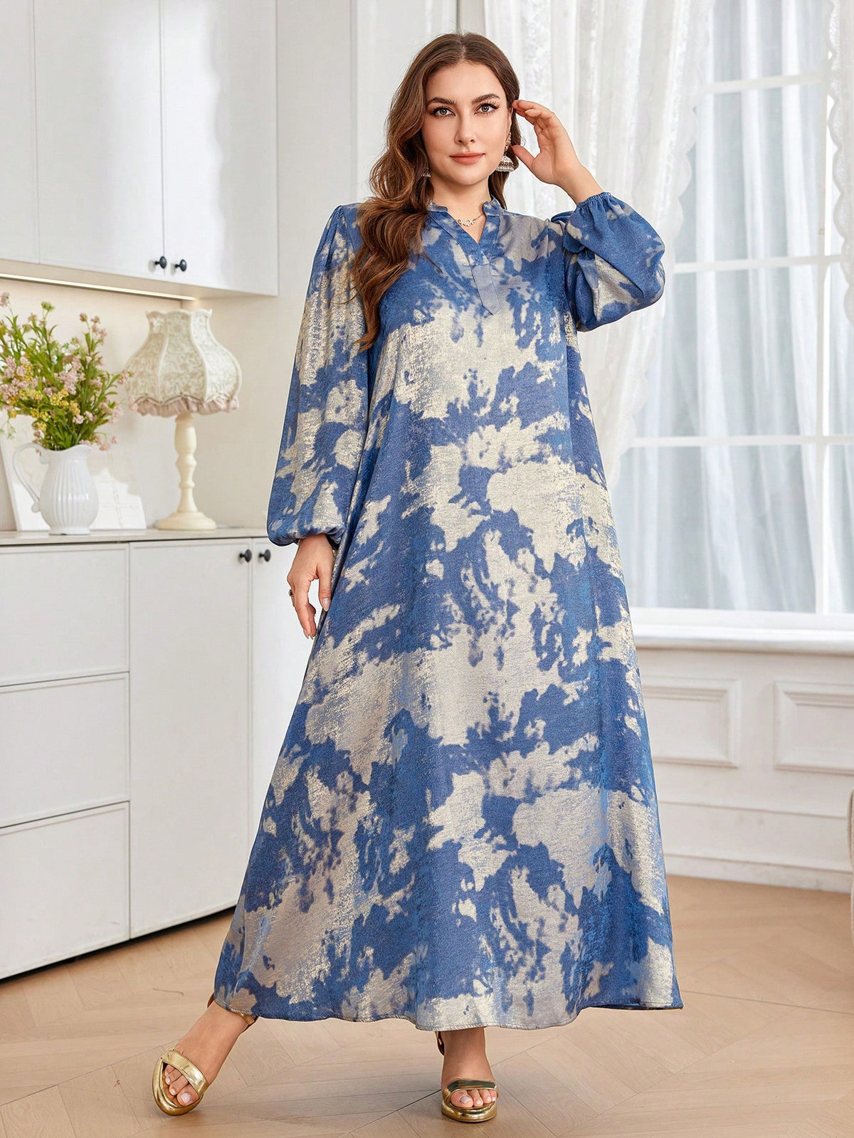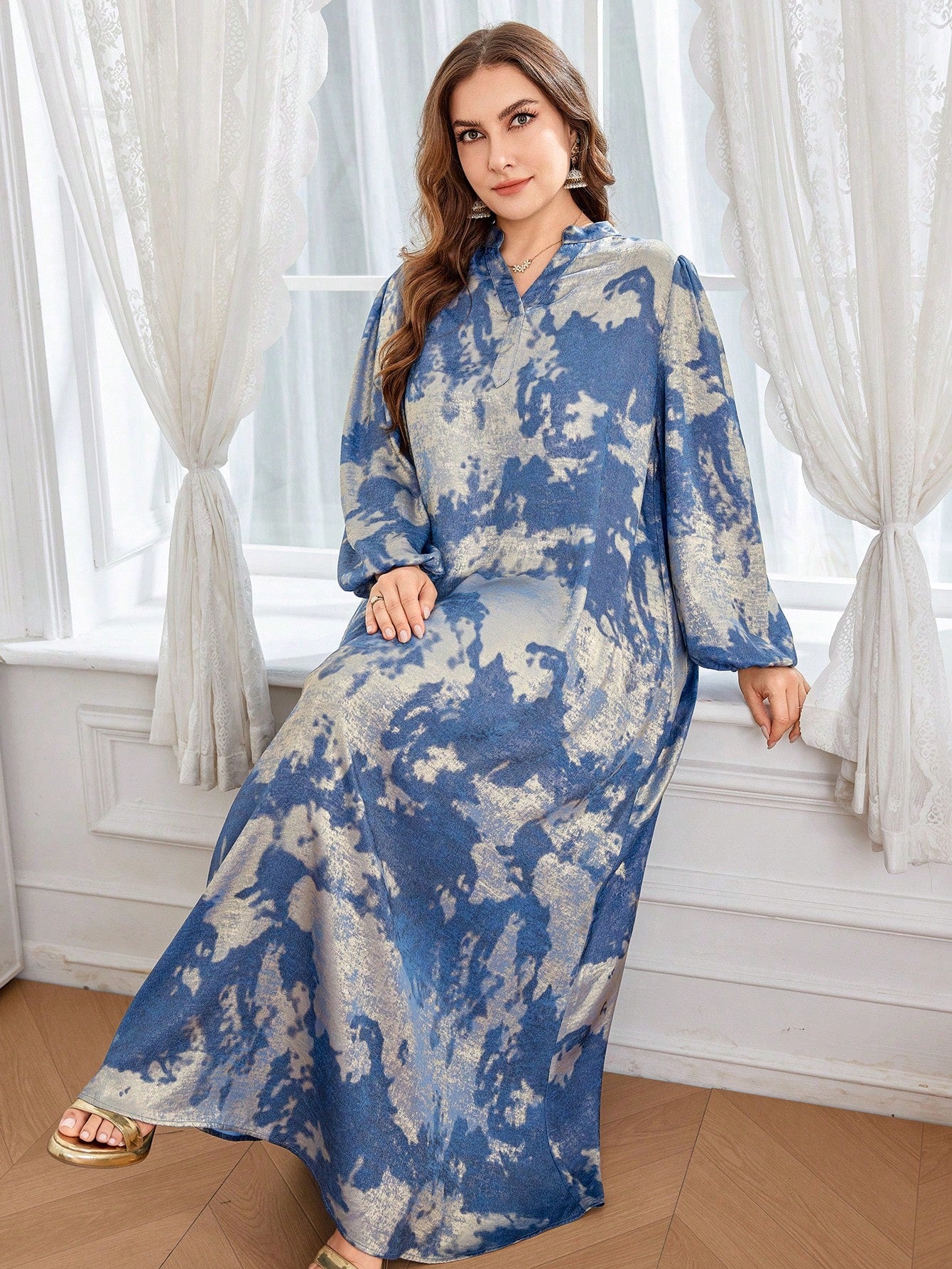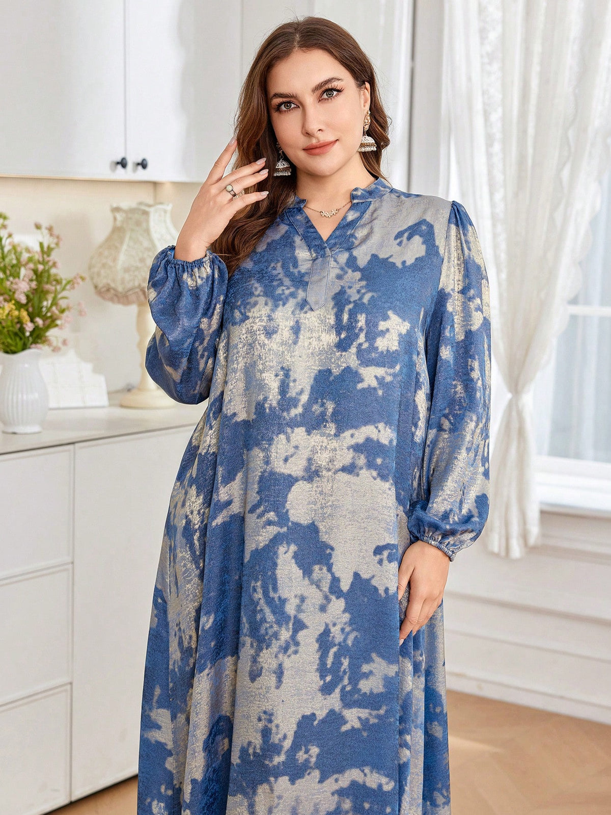 Turn heads with this elegant Arabic-style plus-size maxi dress featuring hot stamping print and long sleeves. Perfect for evening parties, weddings, anniversaries, or casual formal occasions. Flowing silhouette designed to flatter curves while keeping modesty.