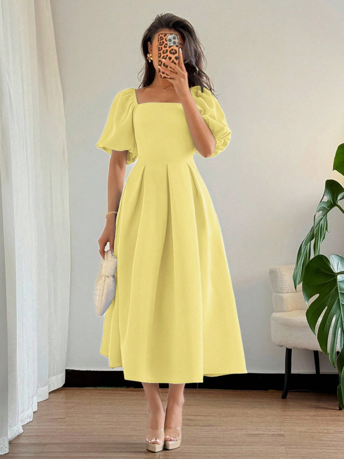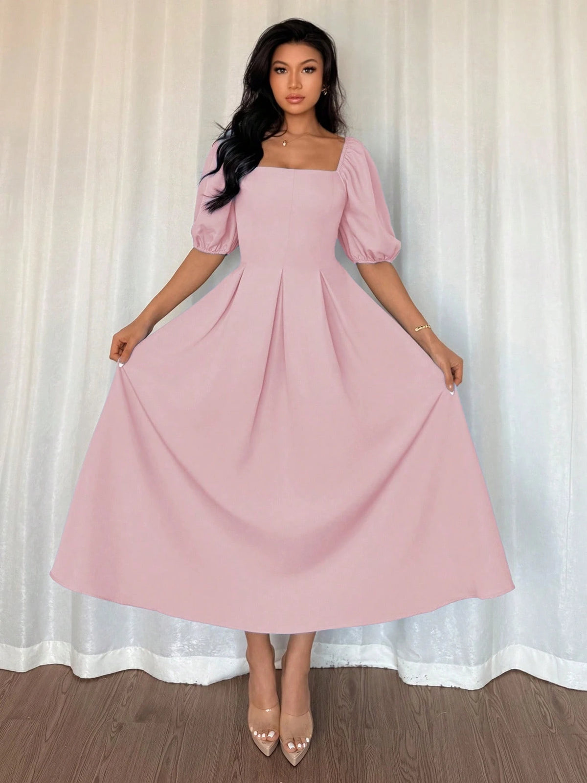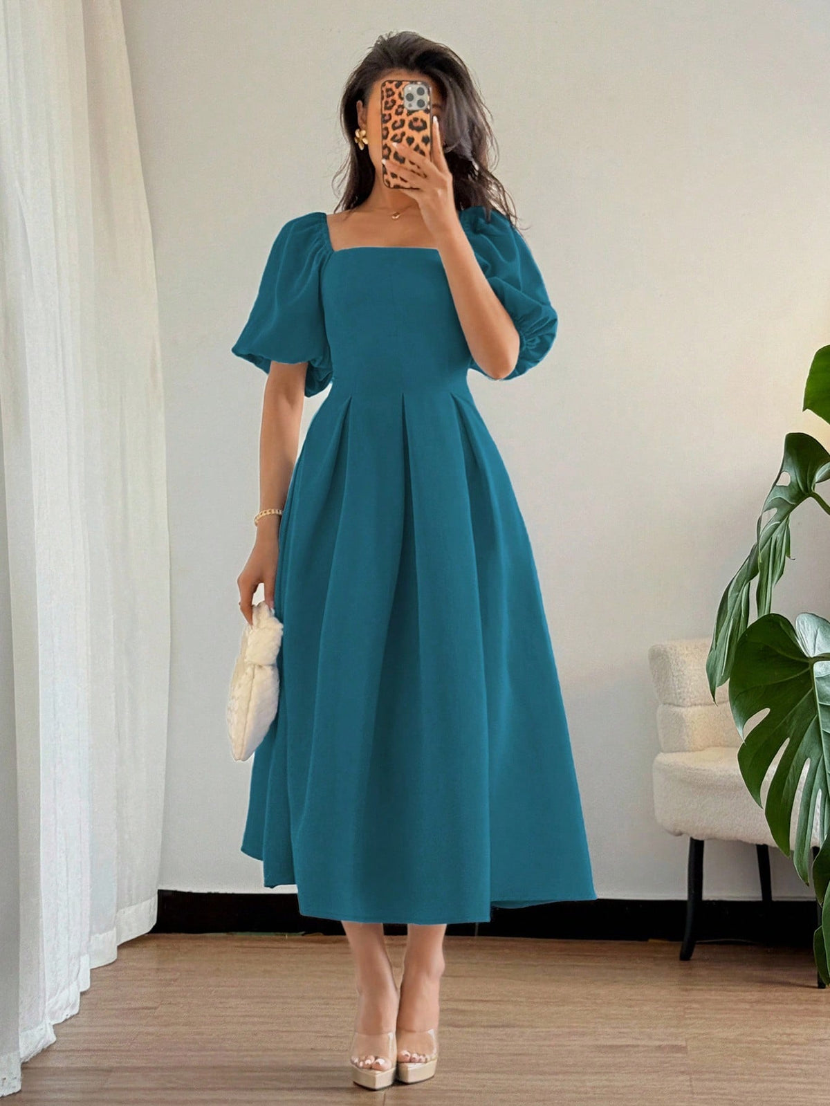 Inspired by timeless Parisian style, the French Draped Hem A-Line Dress blends sophistication with comfort. Its soft draped hem, structured crew neckline, and gentle A-line silhouette make it perfect for both office days and elegant evenings.