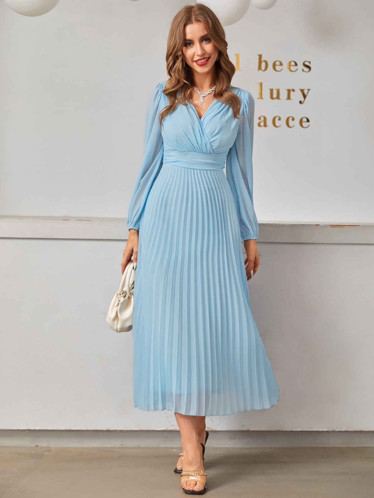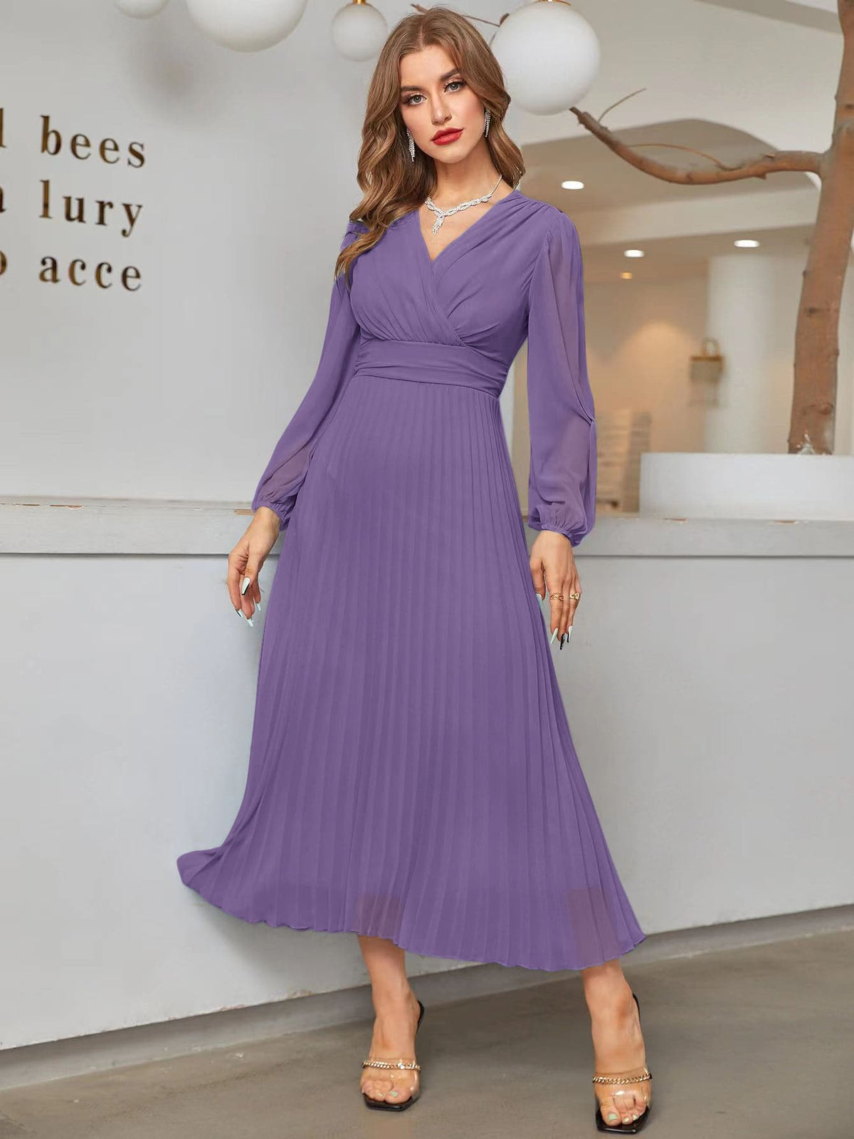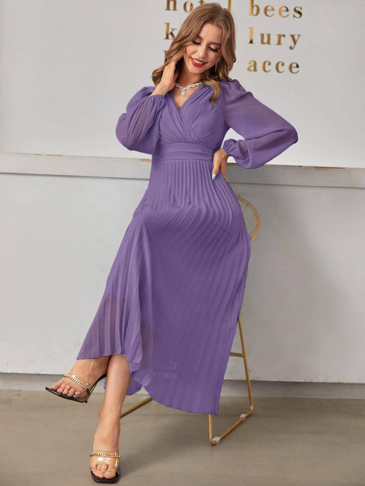 Step into effortless elegance with this Pleated Surplice Lantern Maxi Dress. Crafted with soft pleated detailing, a flattering surplice neckline, and romantic lantern sleeves, this design combines comfort with sophistication — ideal for dinner nights, celebrations, or seasonal gatherings.