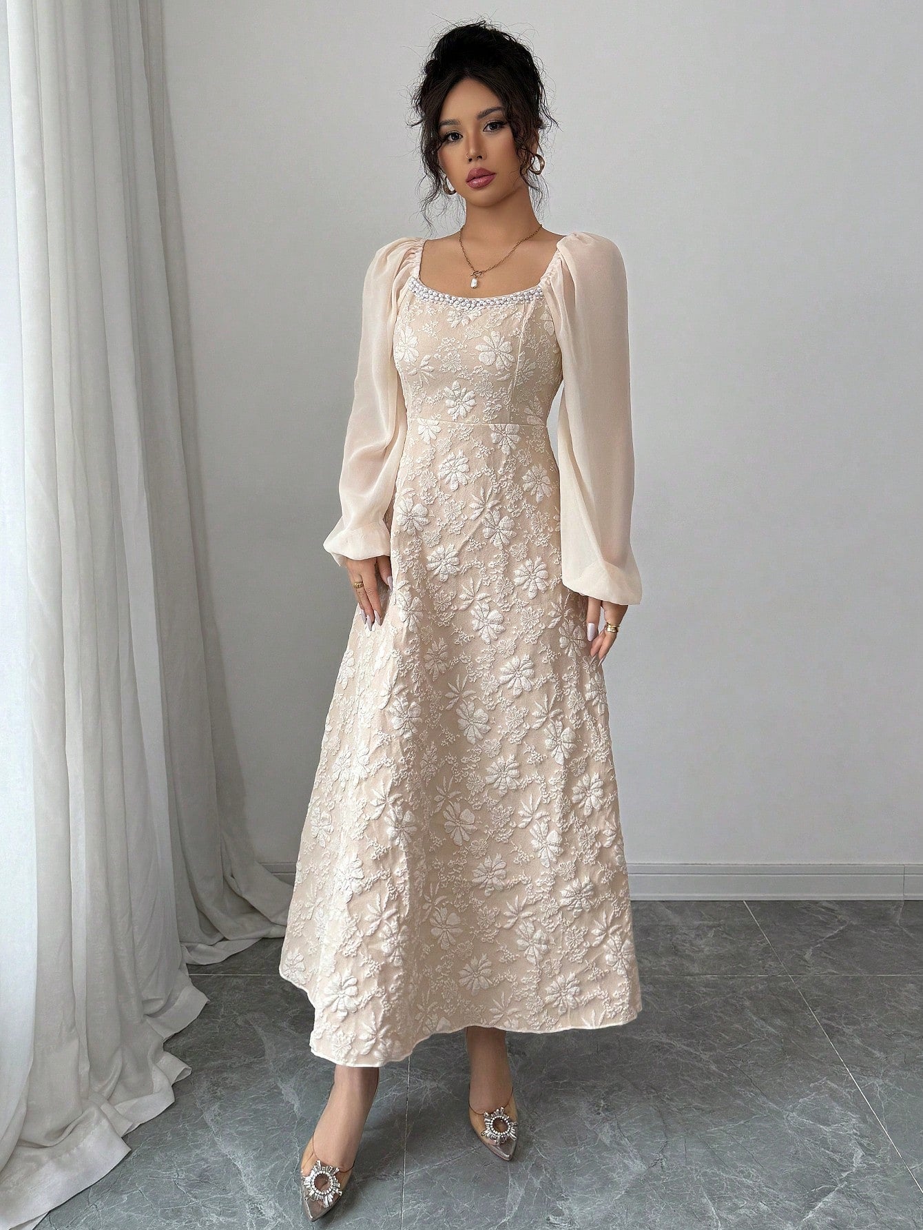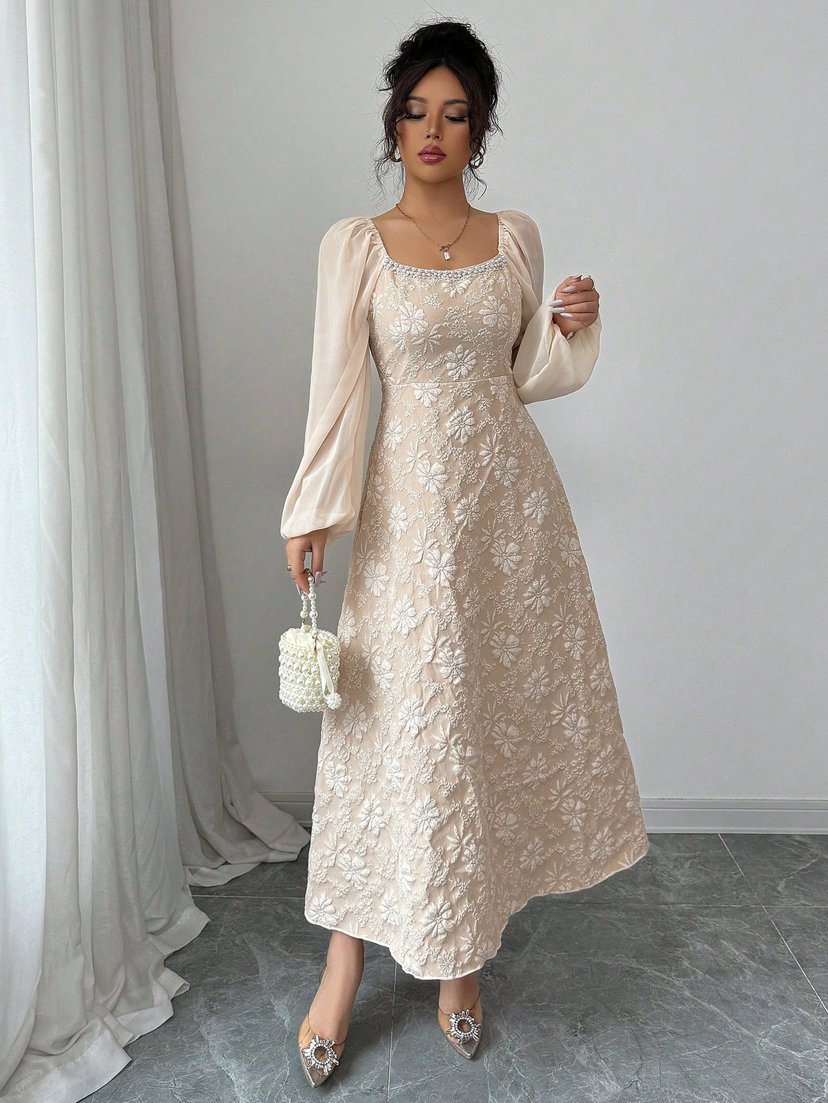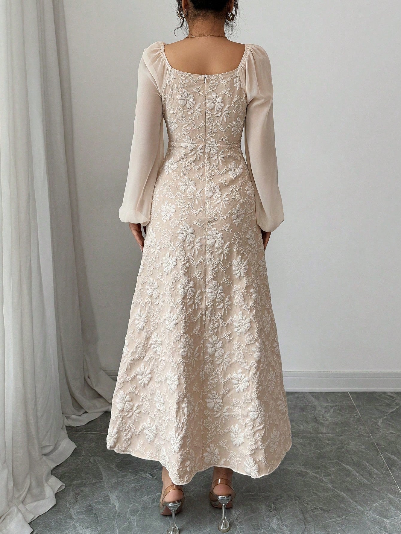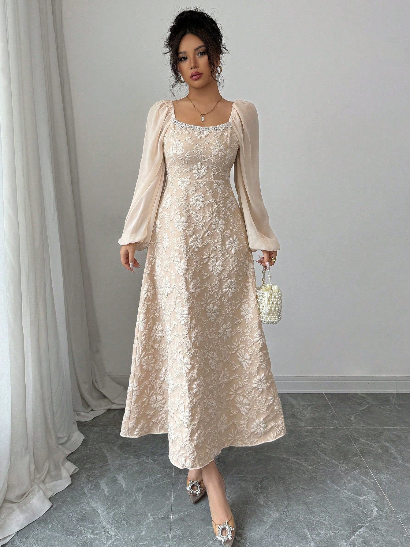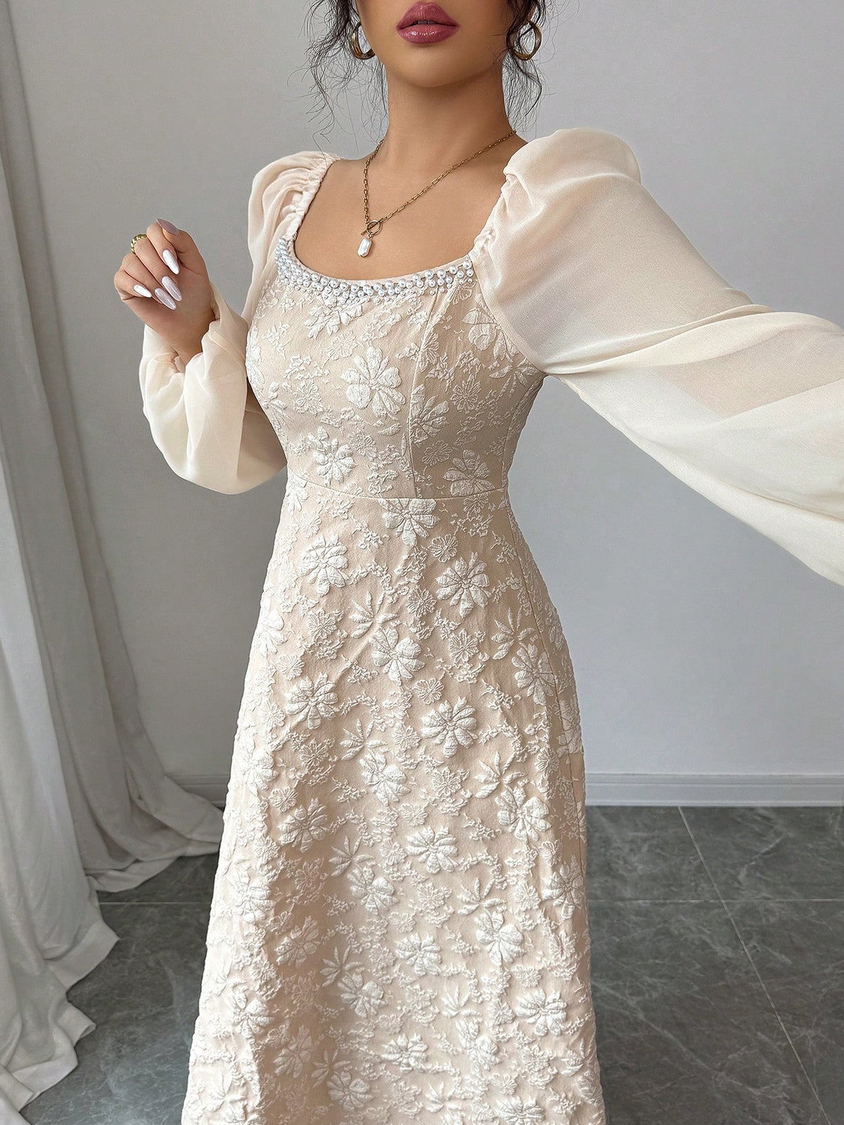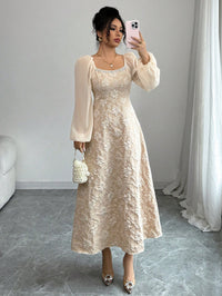 Graceful and effortlessly stylish, this Jacquard Chiffon Puff Sleeve Dress brings sophistication to your everyday elegance. Featuring soft woven chiffon with jacquard texture, airy puff sleeves, and a flattering A-line fit — perfect for brunches, dinners, or special gatherings.