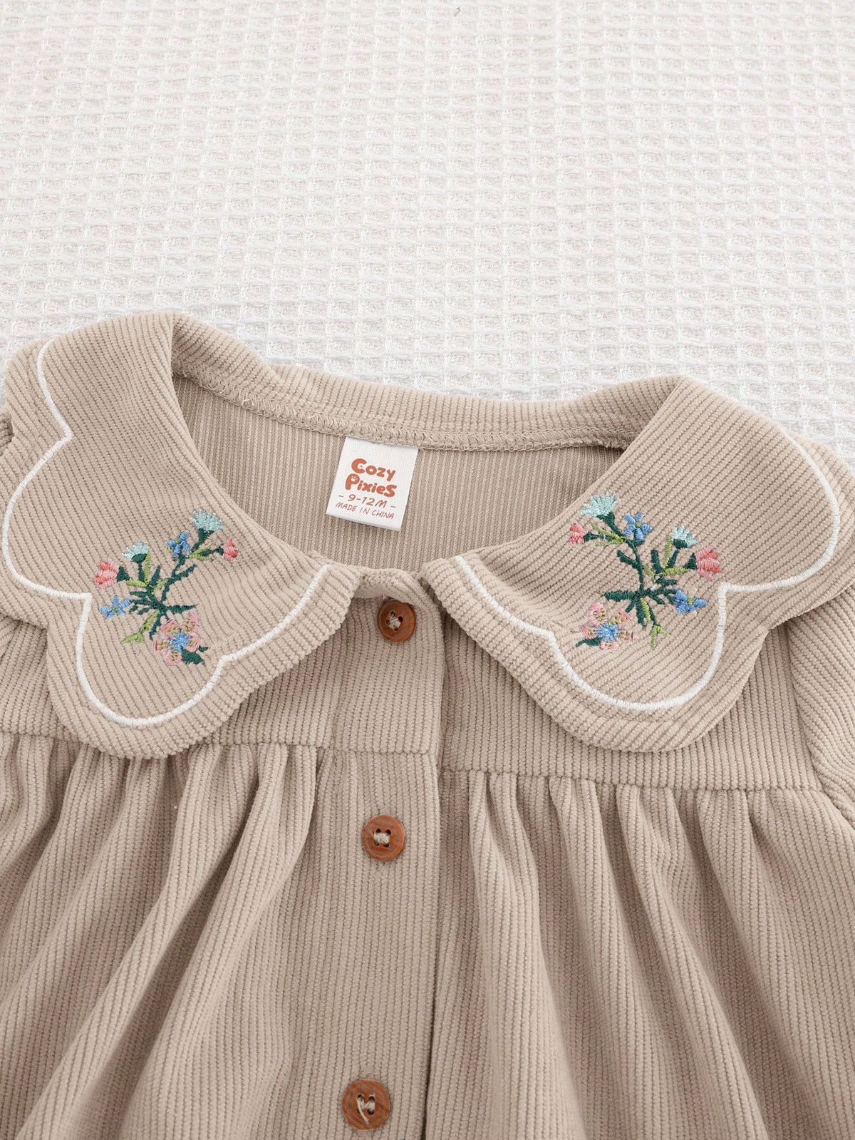 This adorable floral collared dress is perfect for your little one's everyday charm and special outings. Soft, breathable fabric with a gently cinched waist adds shape without discomfort. A must-have for cute photos, play dates, birthdays, and day wear.