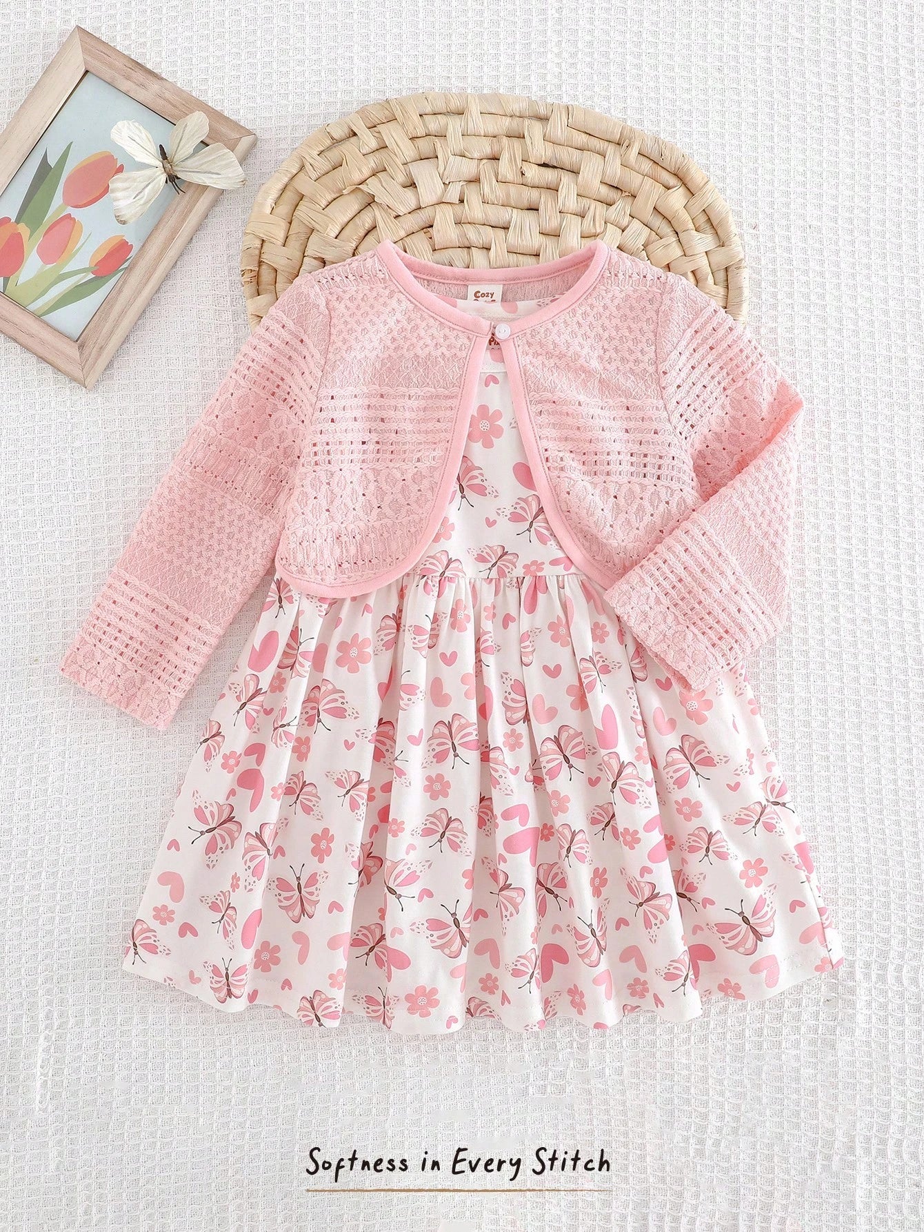 This sweet two-piece outfit makes dressing your little one easy and adorable. The floral sleeveless dress pairs perfectly with a soft knit cardigan for warmth and style. Ideal for daily wear, outings, gatherings, and cute photos.