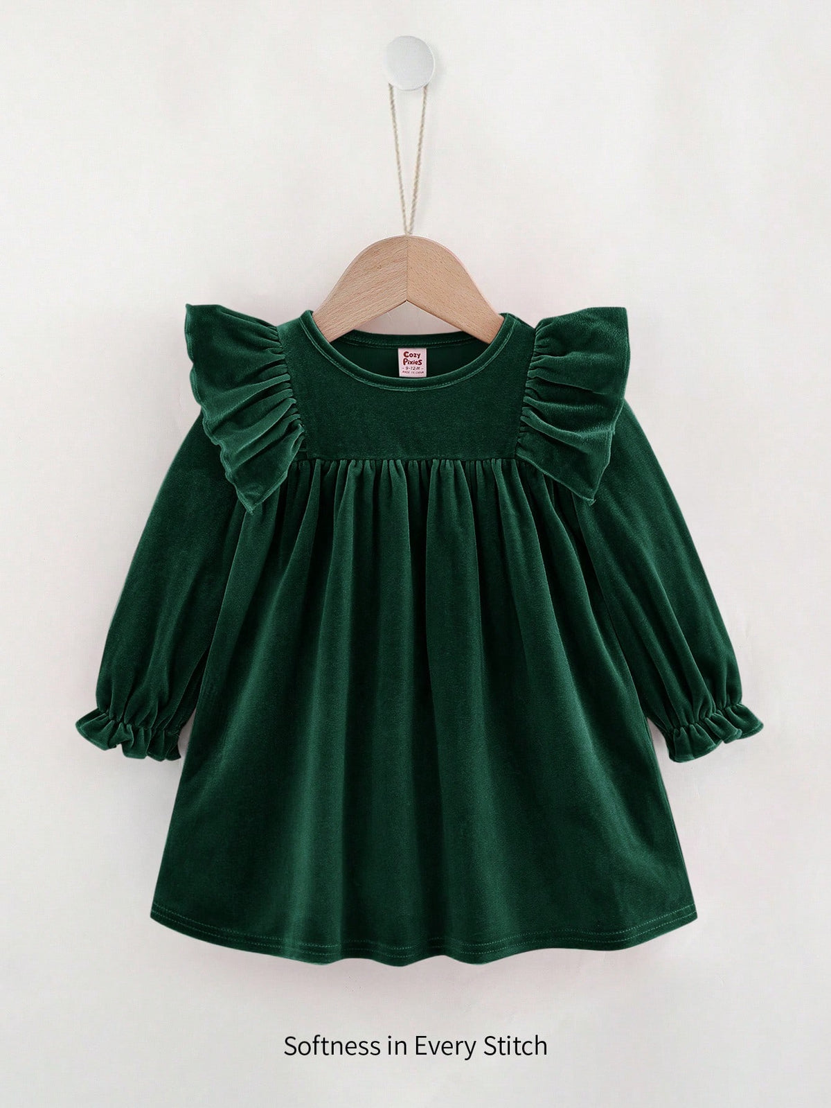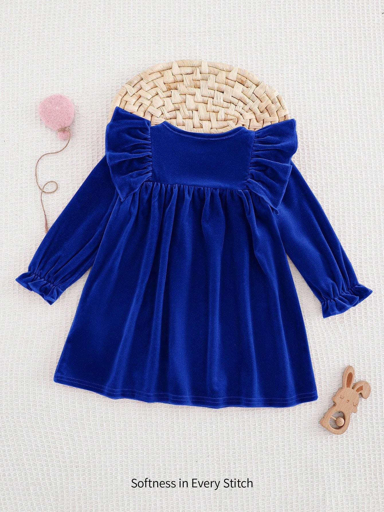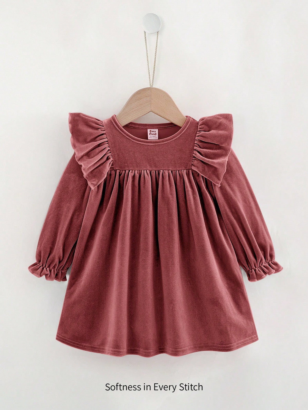 Make your little princess look effortlessly adorable in this cozy knitted dress. Featuring a ruffle hem, flounce long sleeves, and a softly cinched waist, this dress gives a sweet, elegant look suitable for daily wear and special outings.
