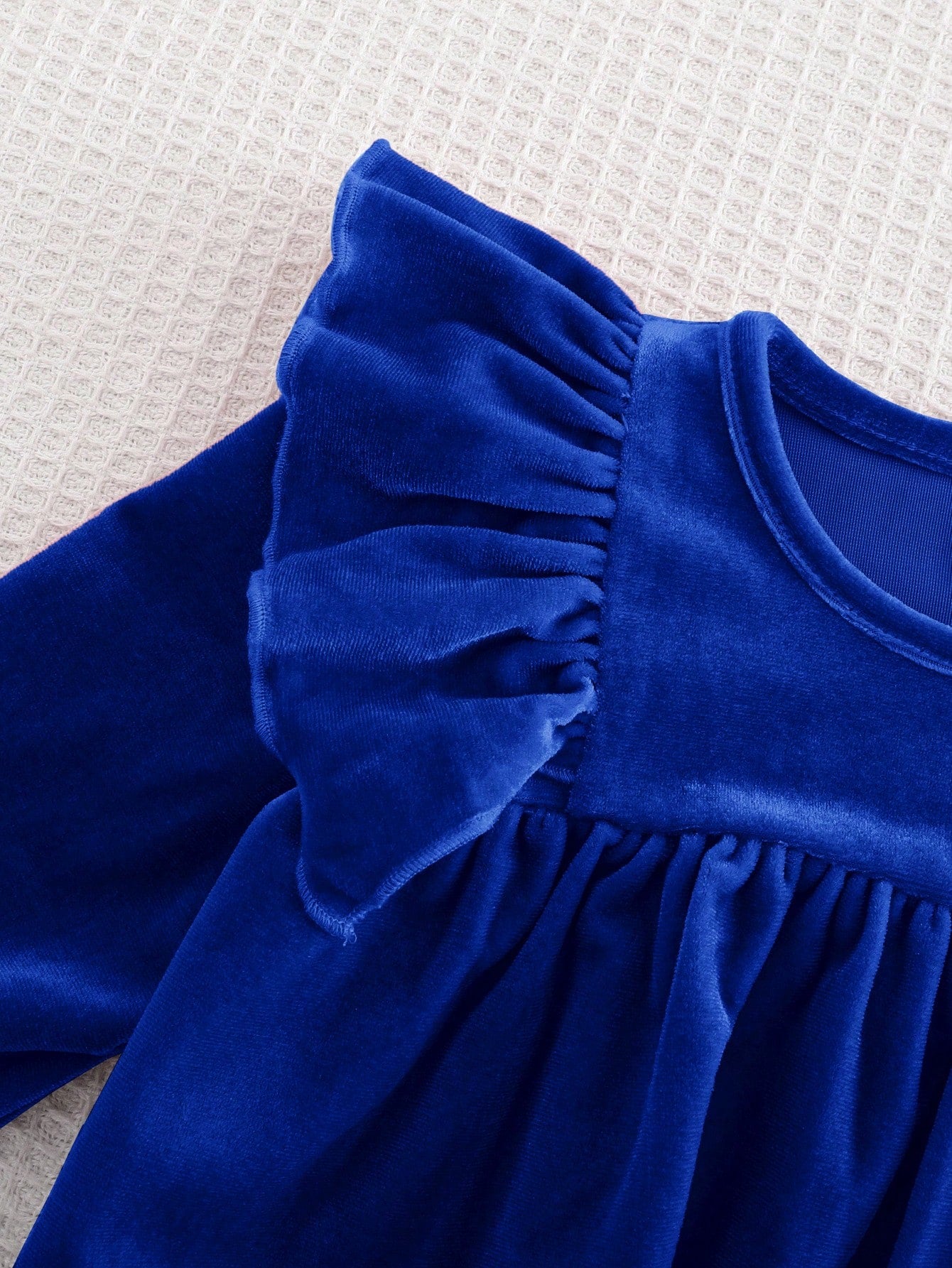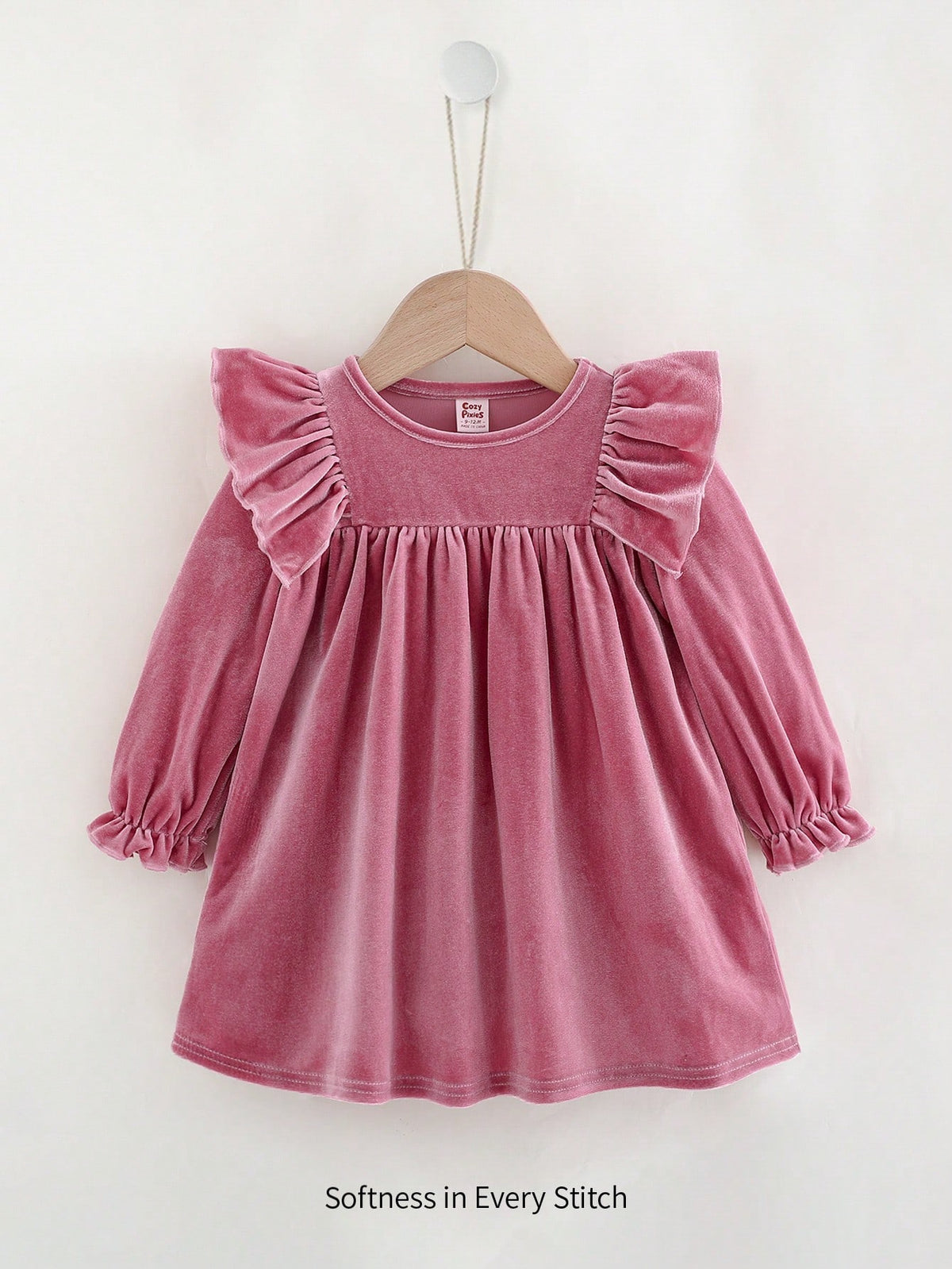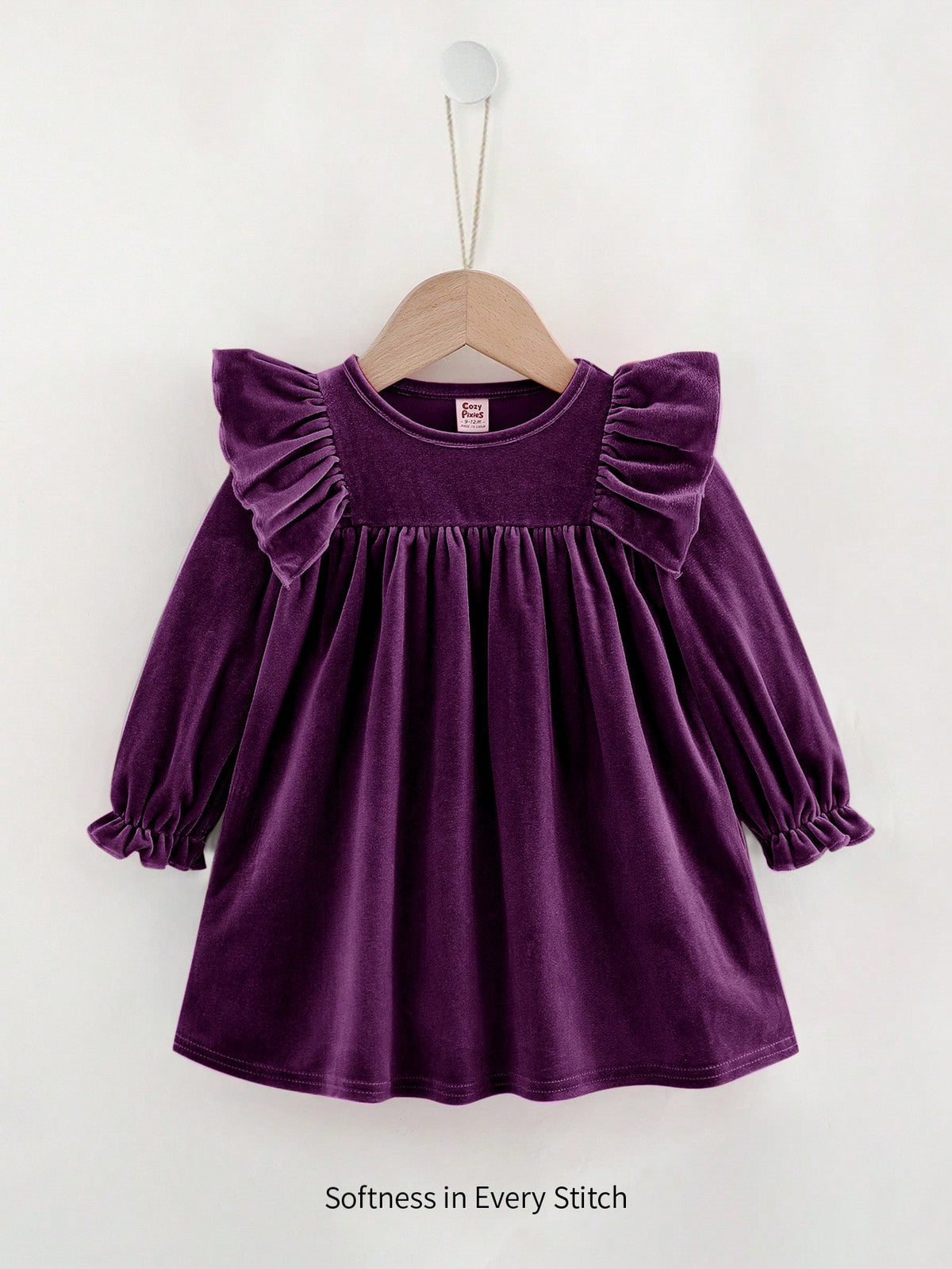 Make your little princess look effortlessly adorable in this cozy knitted dress. Featuring a ruffle hem, flounce long sleeves, and a softly cinched waist, this dress gives a sweet, elegant look suitable for daily wear and special outings.