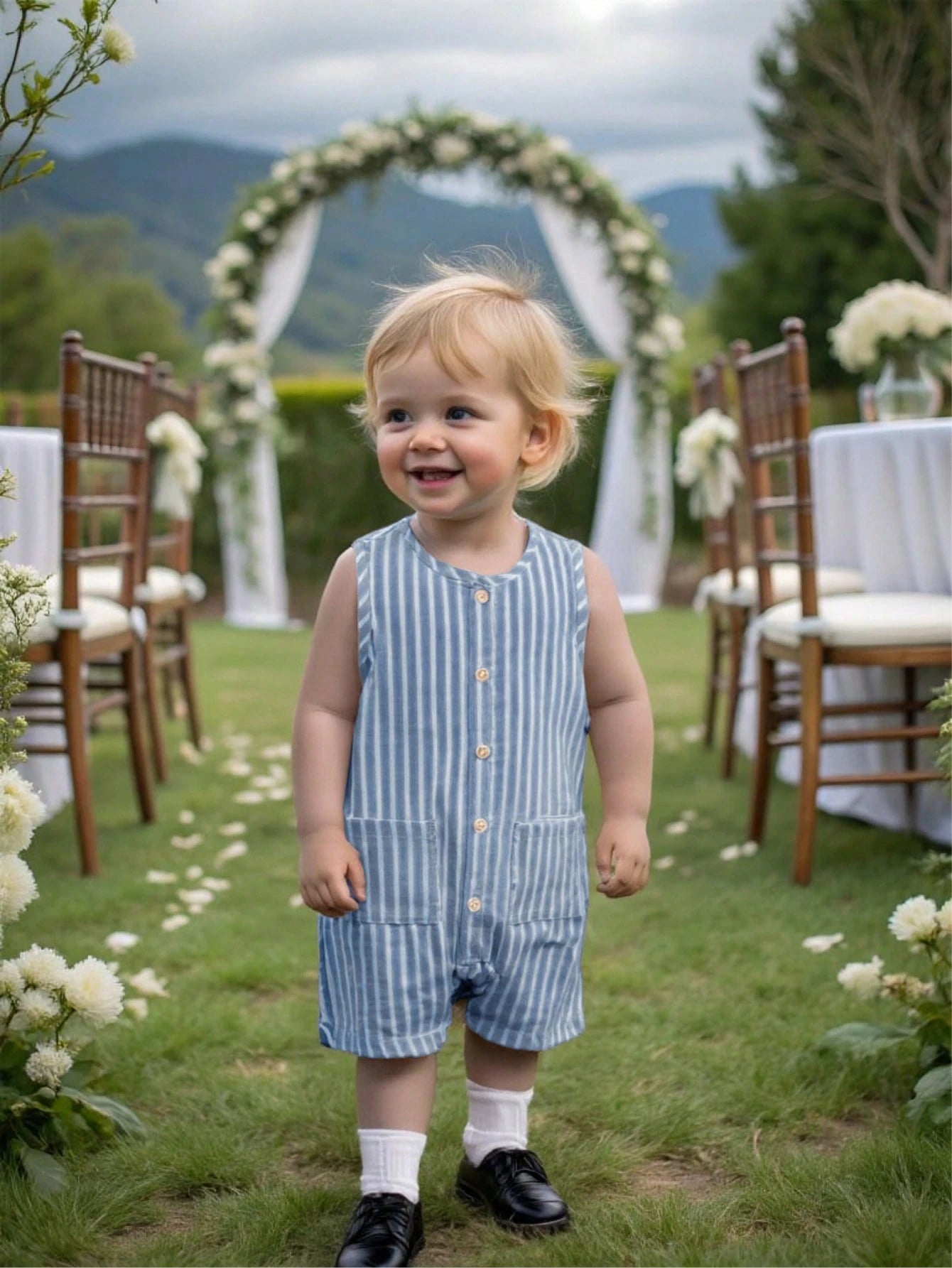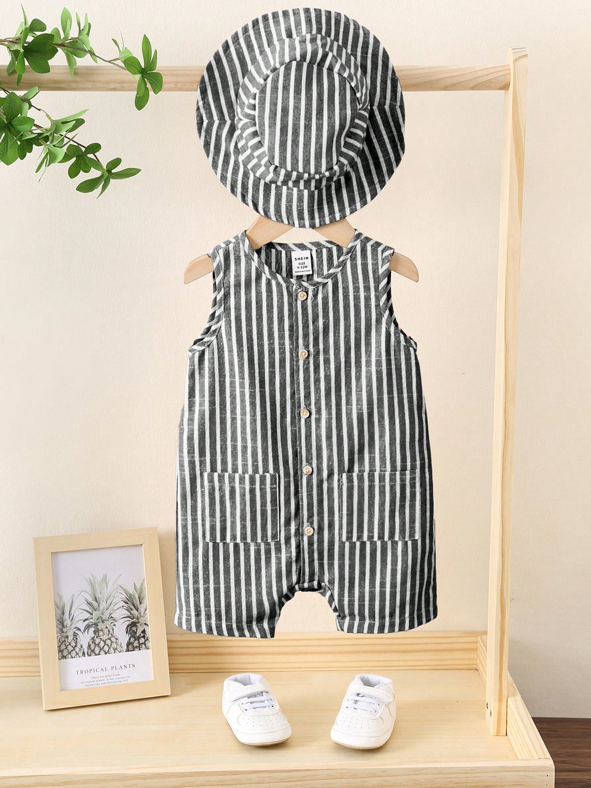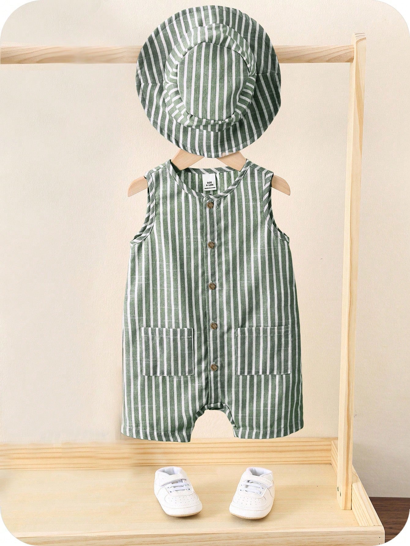 Bright, breezy, and ready for summer. This unisex 3-piece set includes a colorful striped sleeveless romper, matching shorts, and a cute bucket hat—perfect for travel, playdates, and sunny vacations. A comfy pick for newborn baby clothes and toddlers alike.