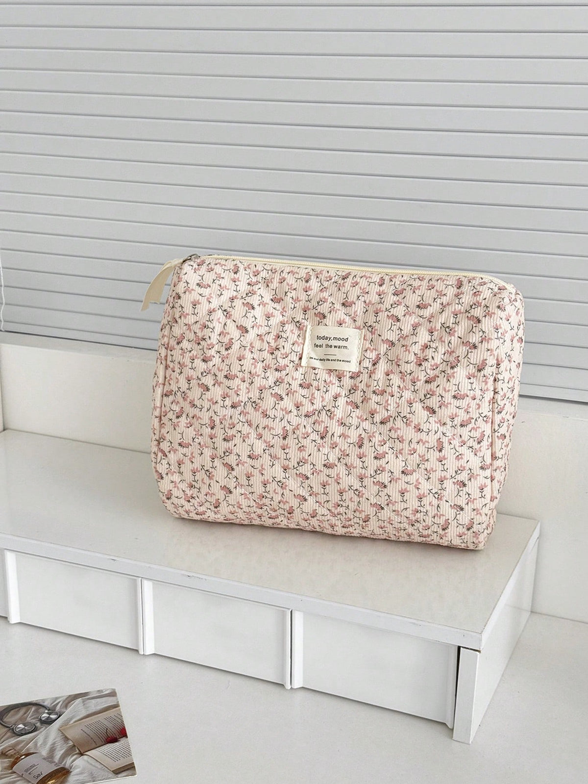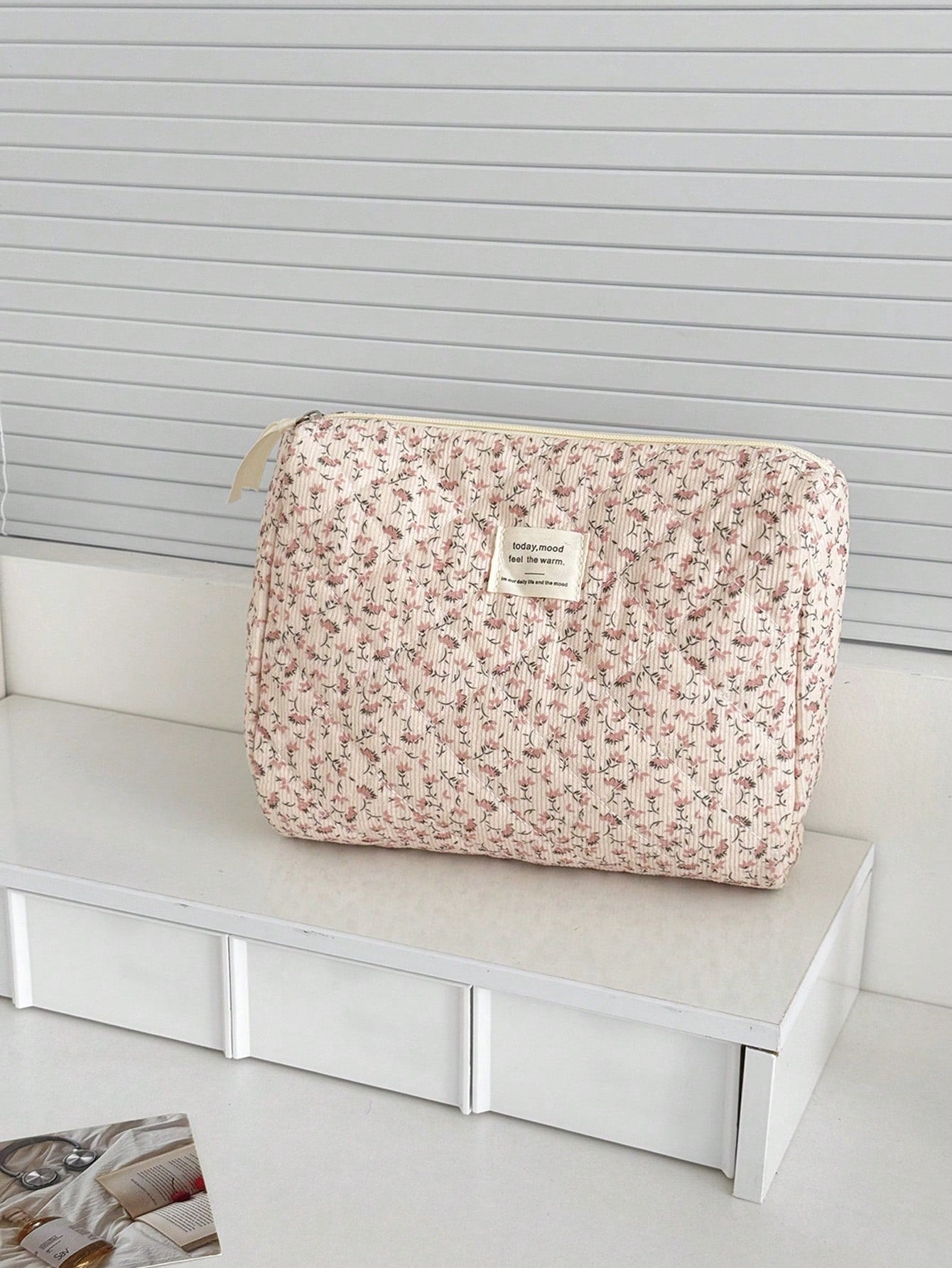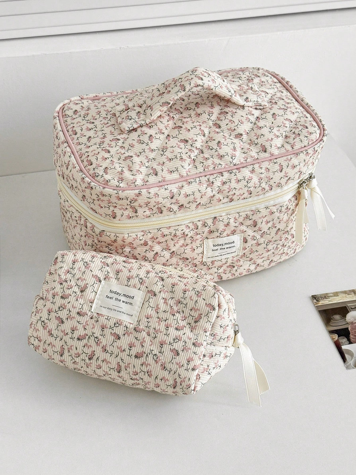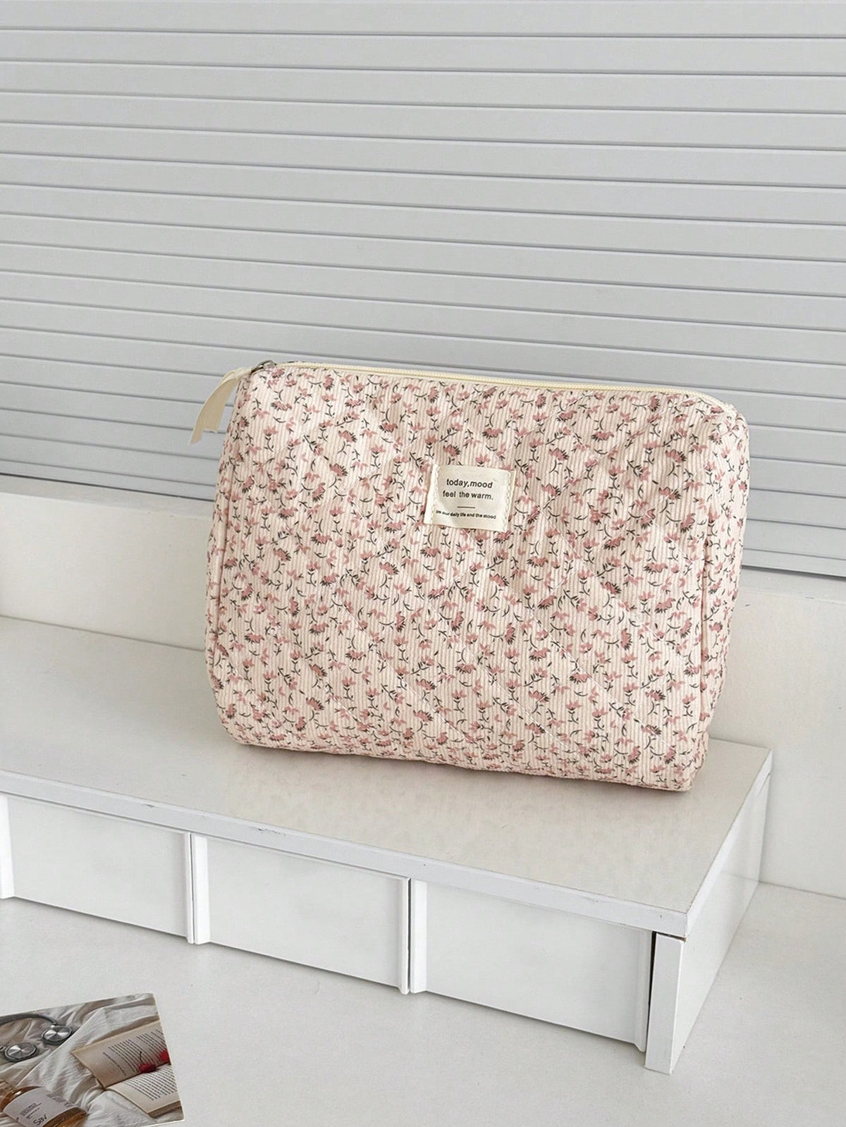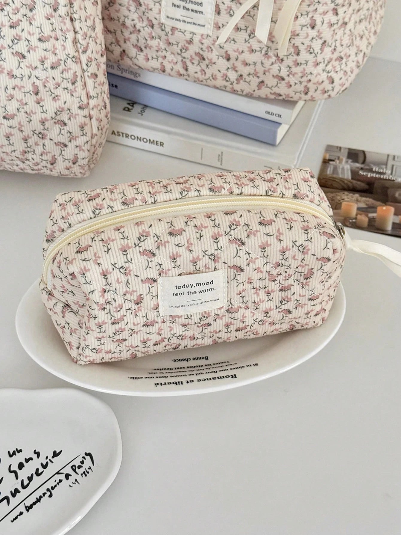 Corduroy Pink Floral Cosmetic Pouch - Baby Pink / Small