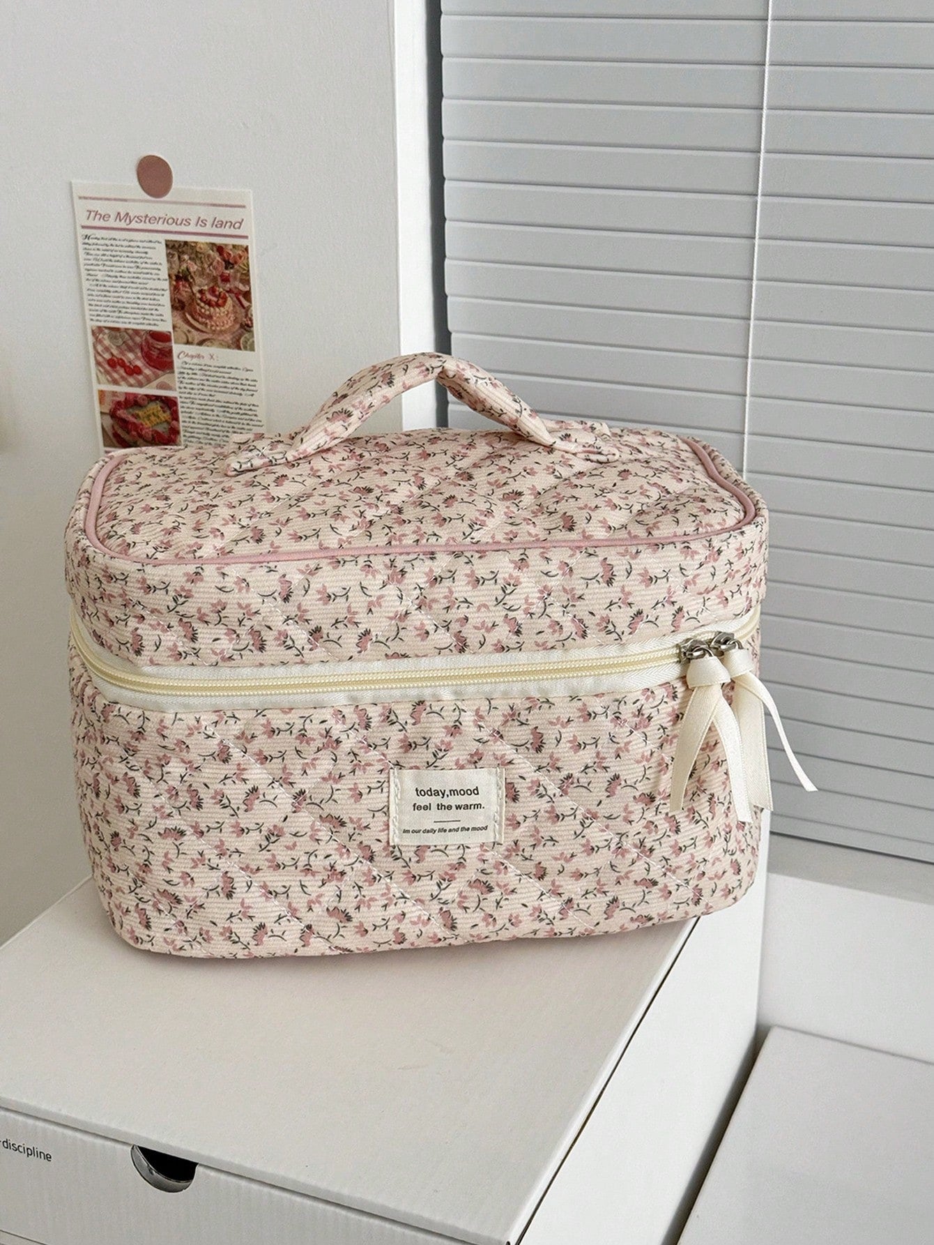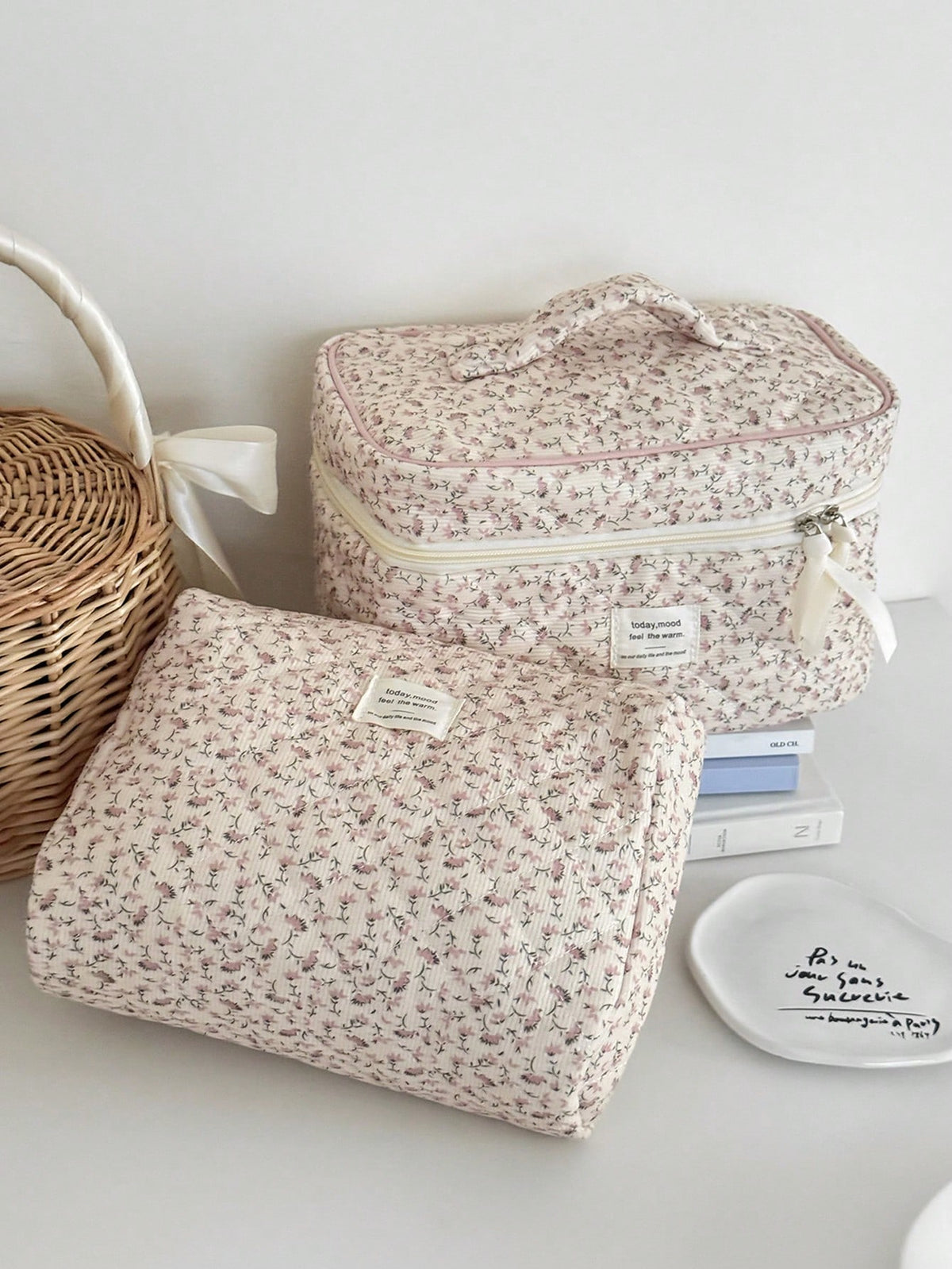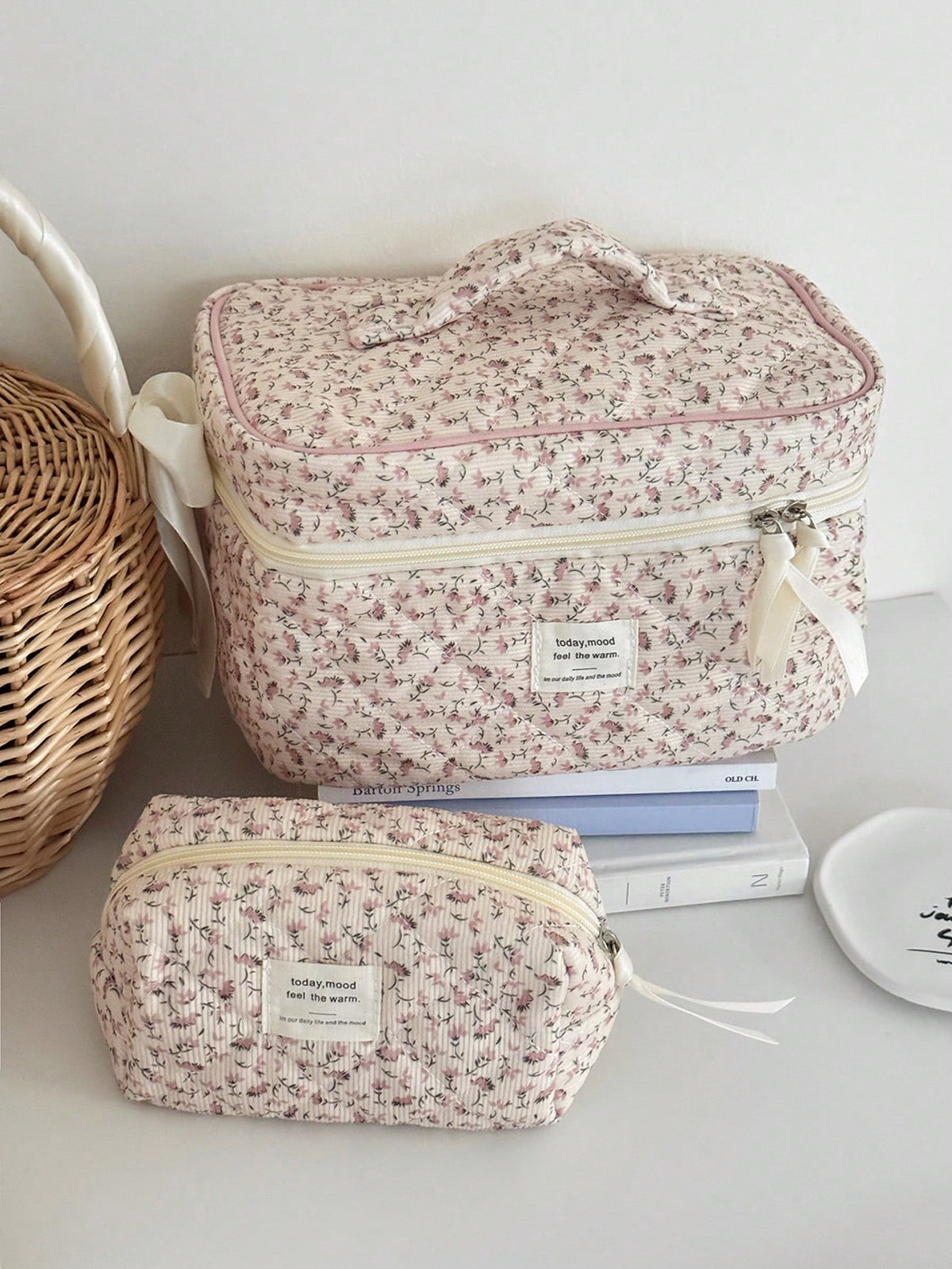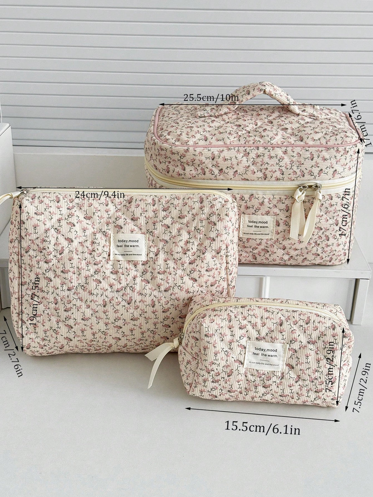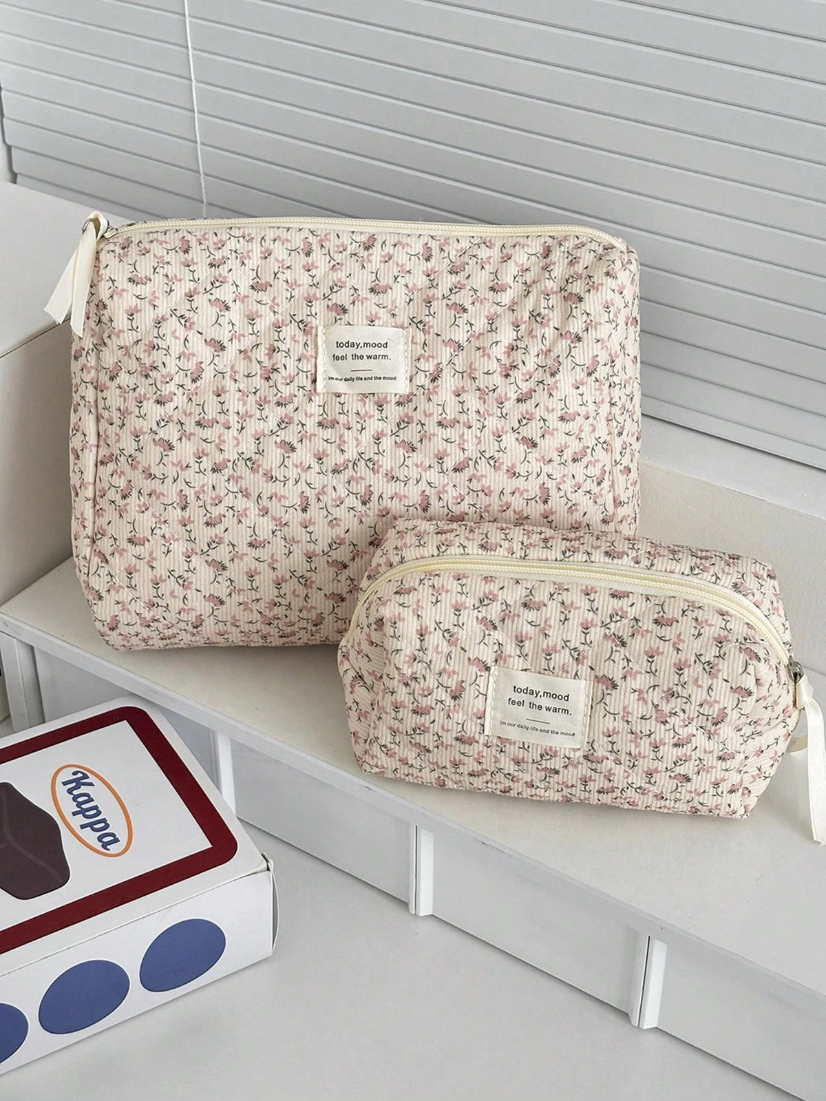 Corduroy Pink Floral Cosmetic Pouch - Baby Pink / Small