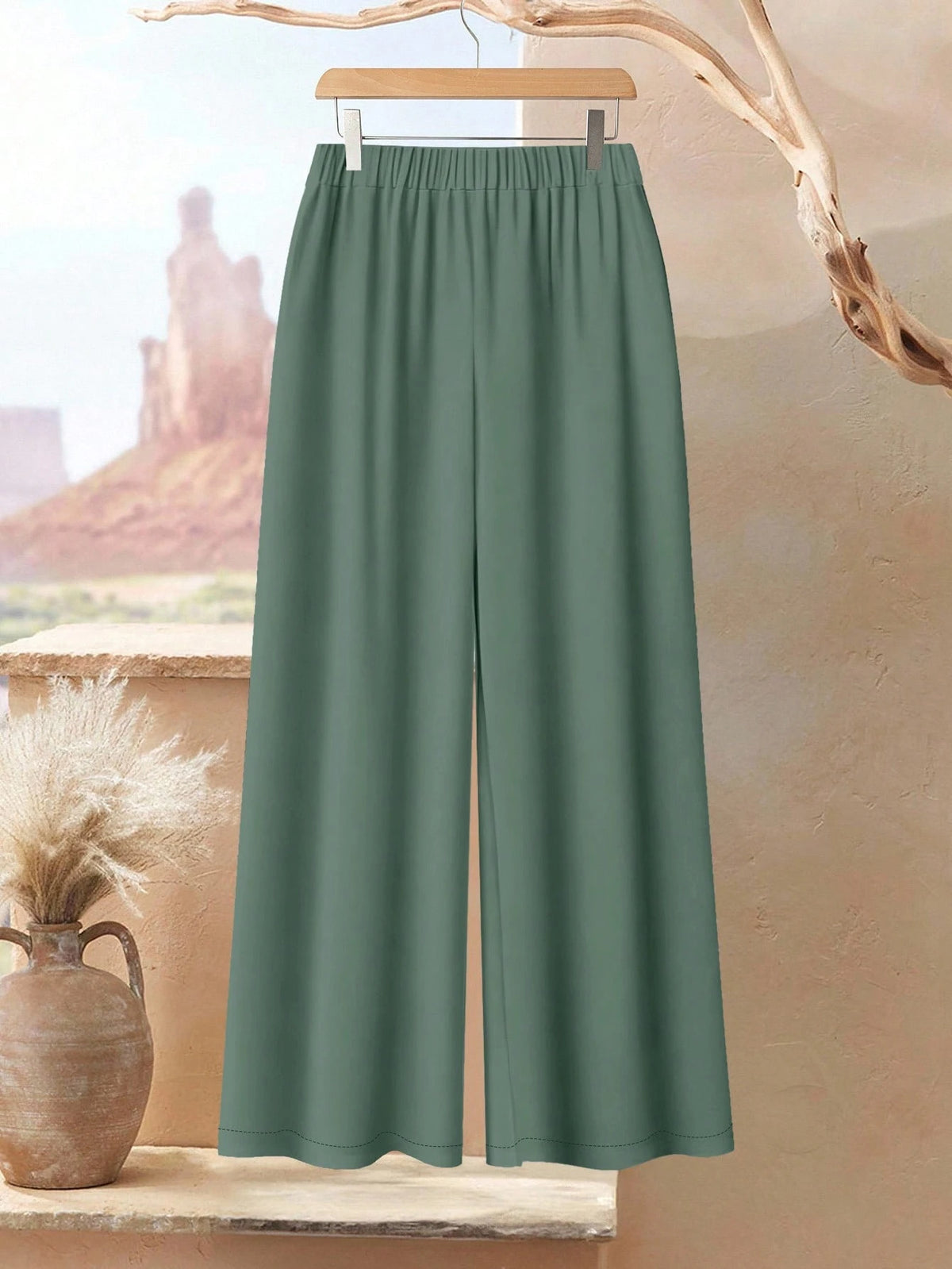 Relaxed fit pants with adjustable elastic waist to fit multiple body types