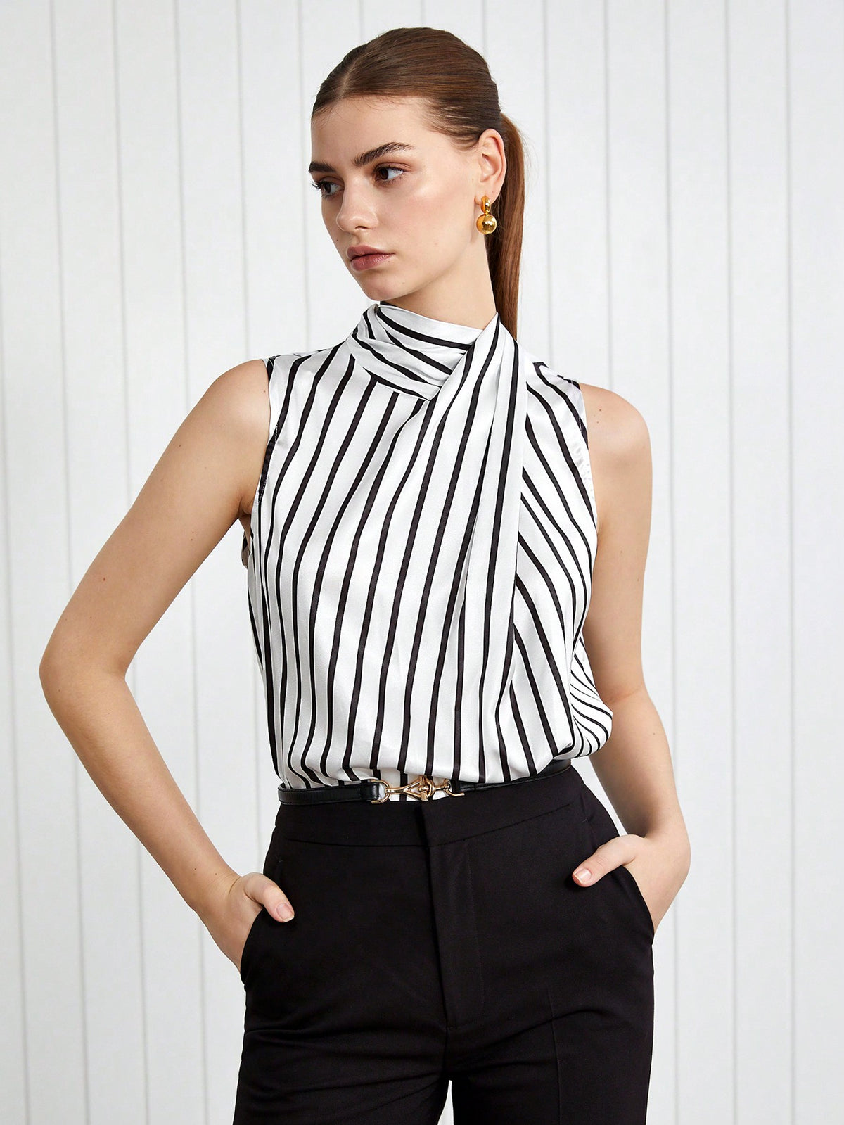 Elevate your office and casual wardrobe with this stylish asymmetric collar striped blouse for women. Featuring a romantic and elegant design with a unique tie strap detail, this long-sleeve blouse is ideal for business meetings, teacher uniforms, or everyday professional outfits. Designed to combine comfort and sophistication, it's perfect for autumn or mild winter days in Pakistan.
