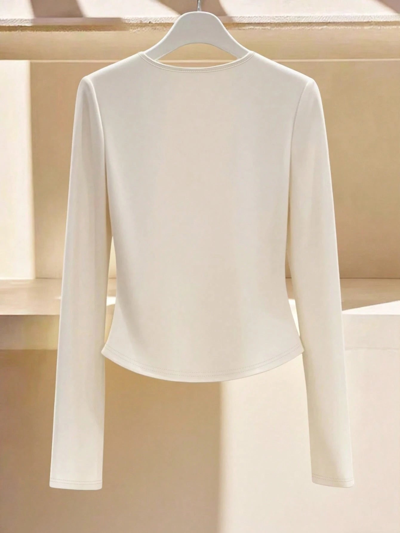 Upgrade your wardrobe with this elegant hollow out fitted long sleeve t-shirt designed for women who love chic and trendy fashion. Featuring a stylish solid color, this top is perfect for layering or wearing on its own. Whether you're heading out for a casual hangout or a formal meet-up, its sleek and fitted design adds the perfect touch of sophistication.