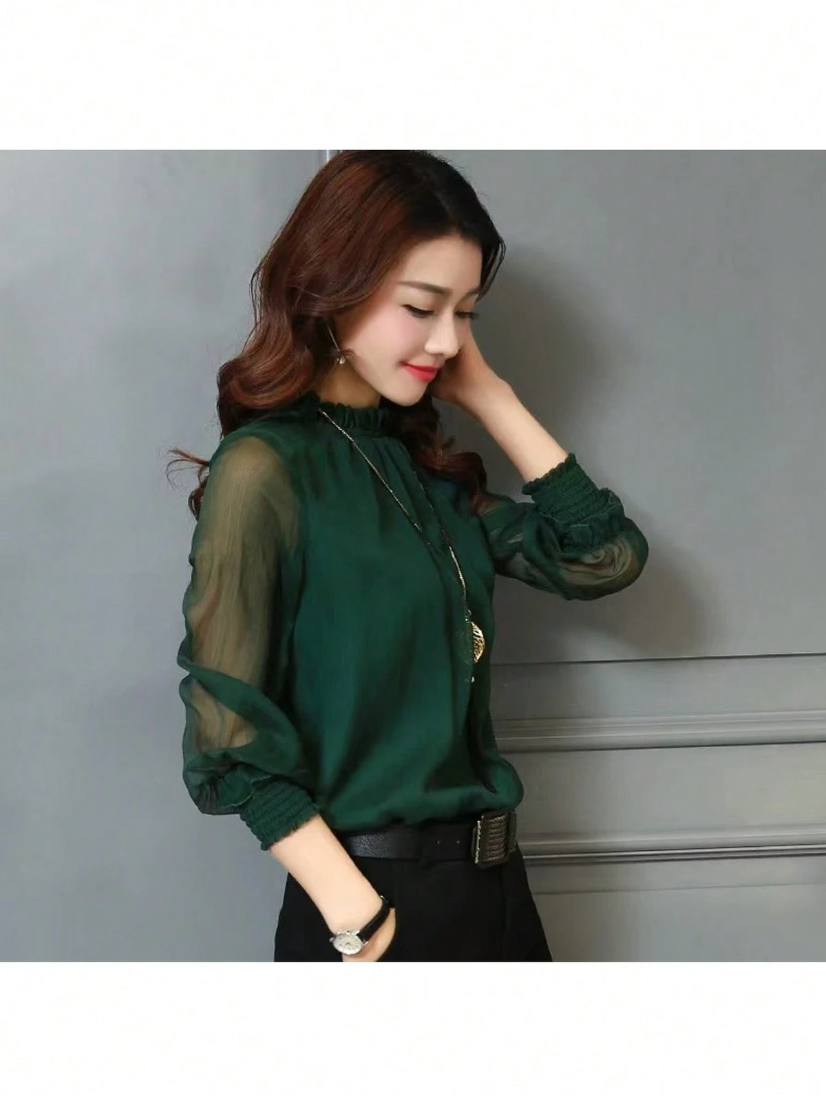 Long Sleeve Office Blouse – Fall Wear - Black / XS