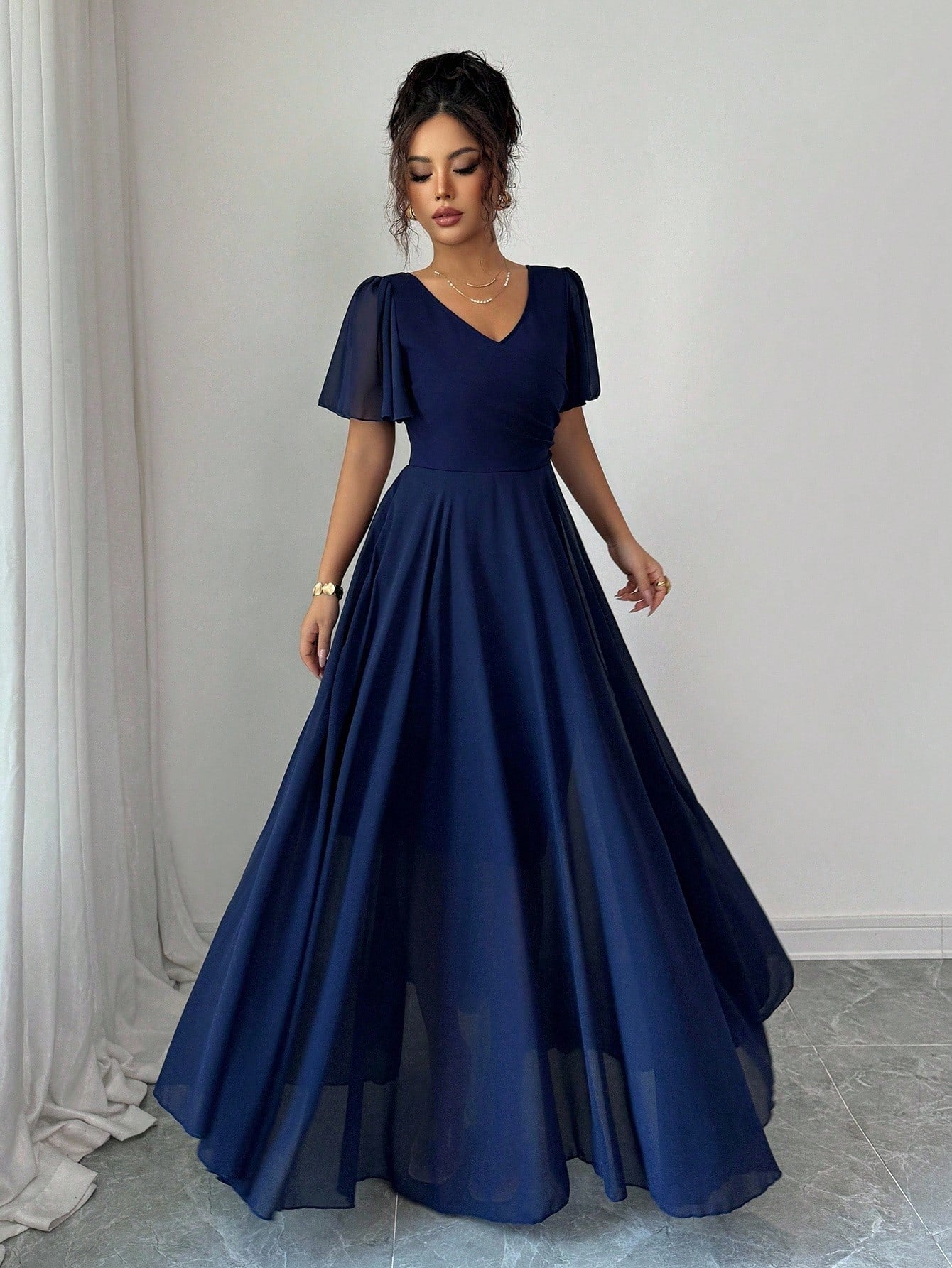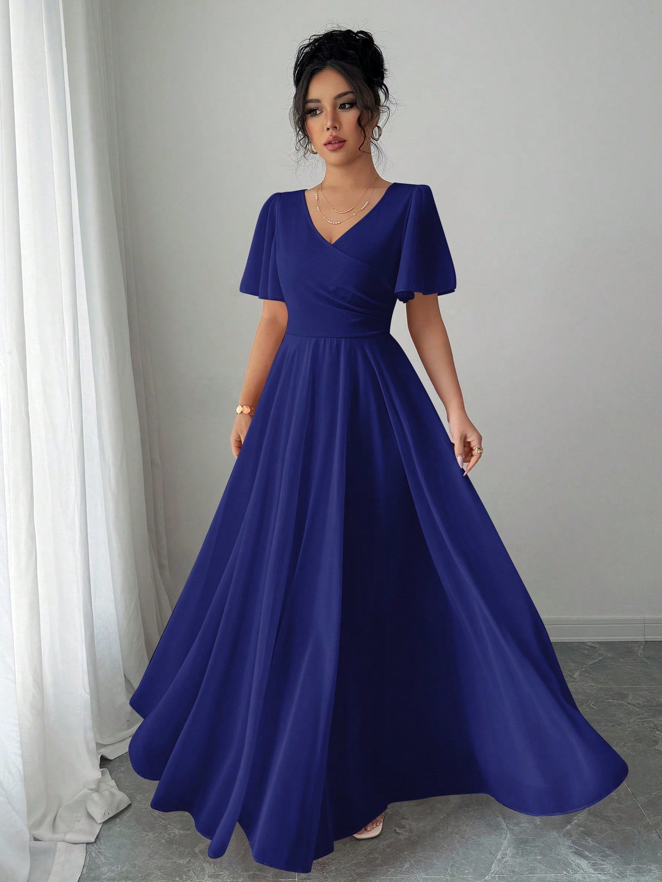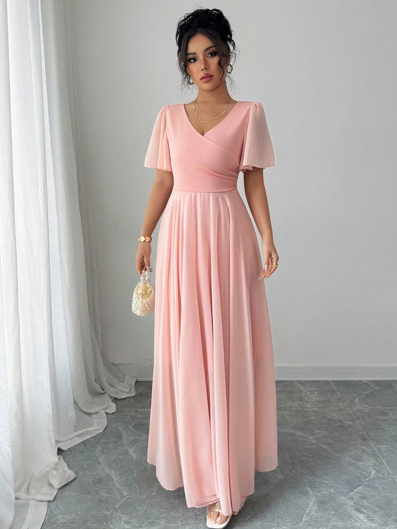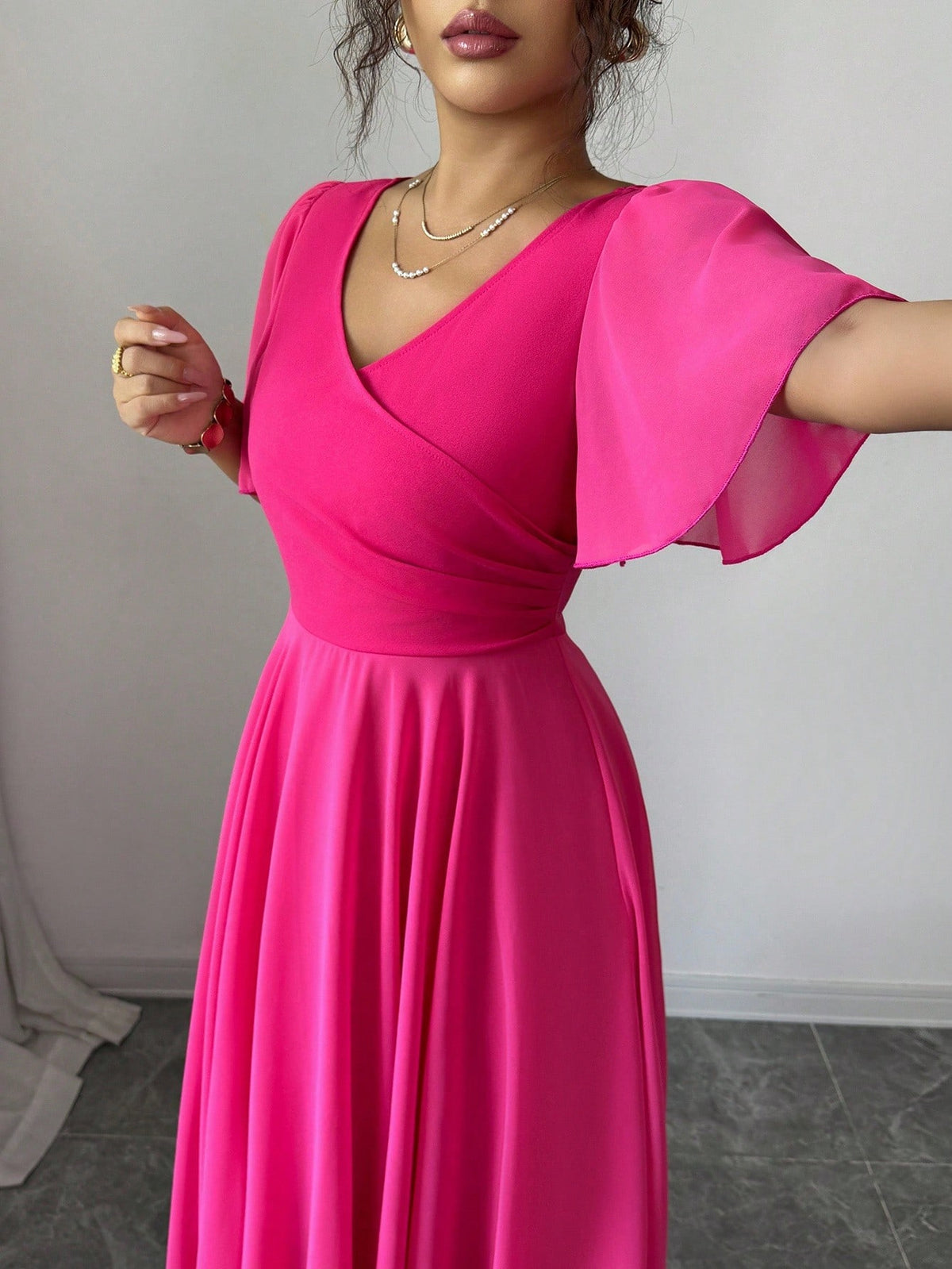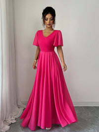 Cinched Waist V-Neck Evening Dress - Hot Pink / S