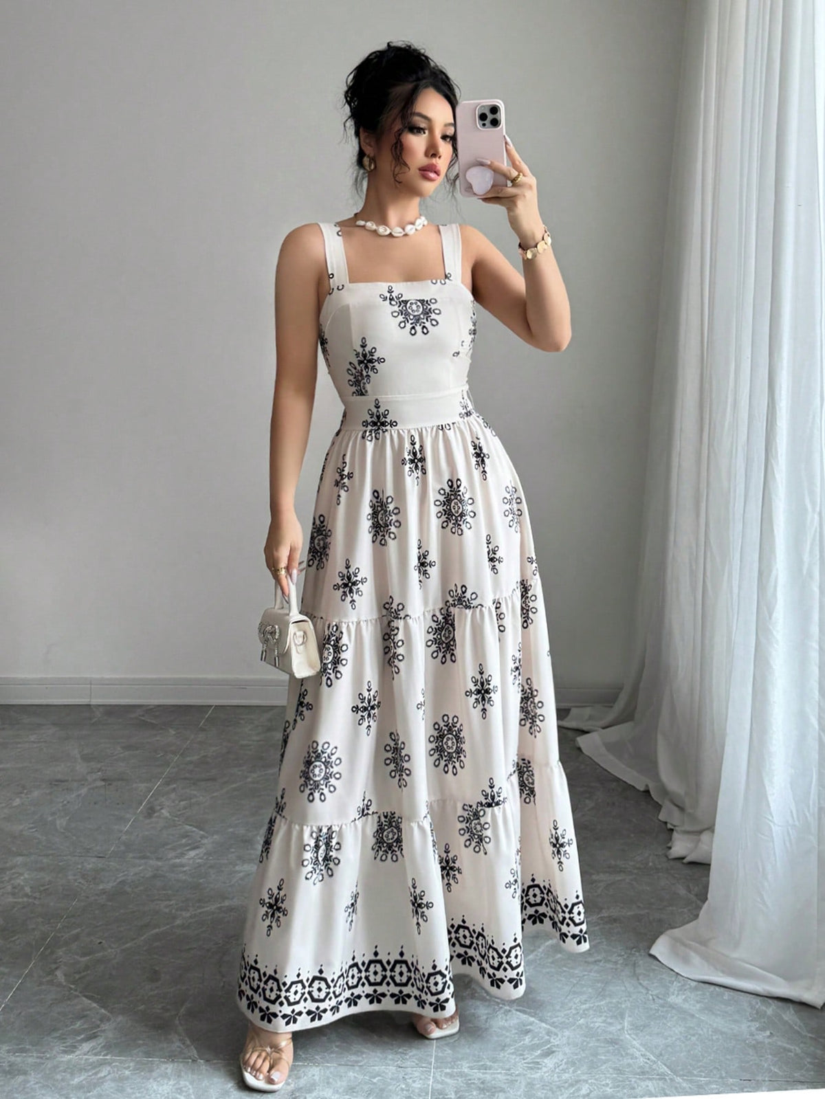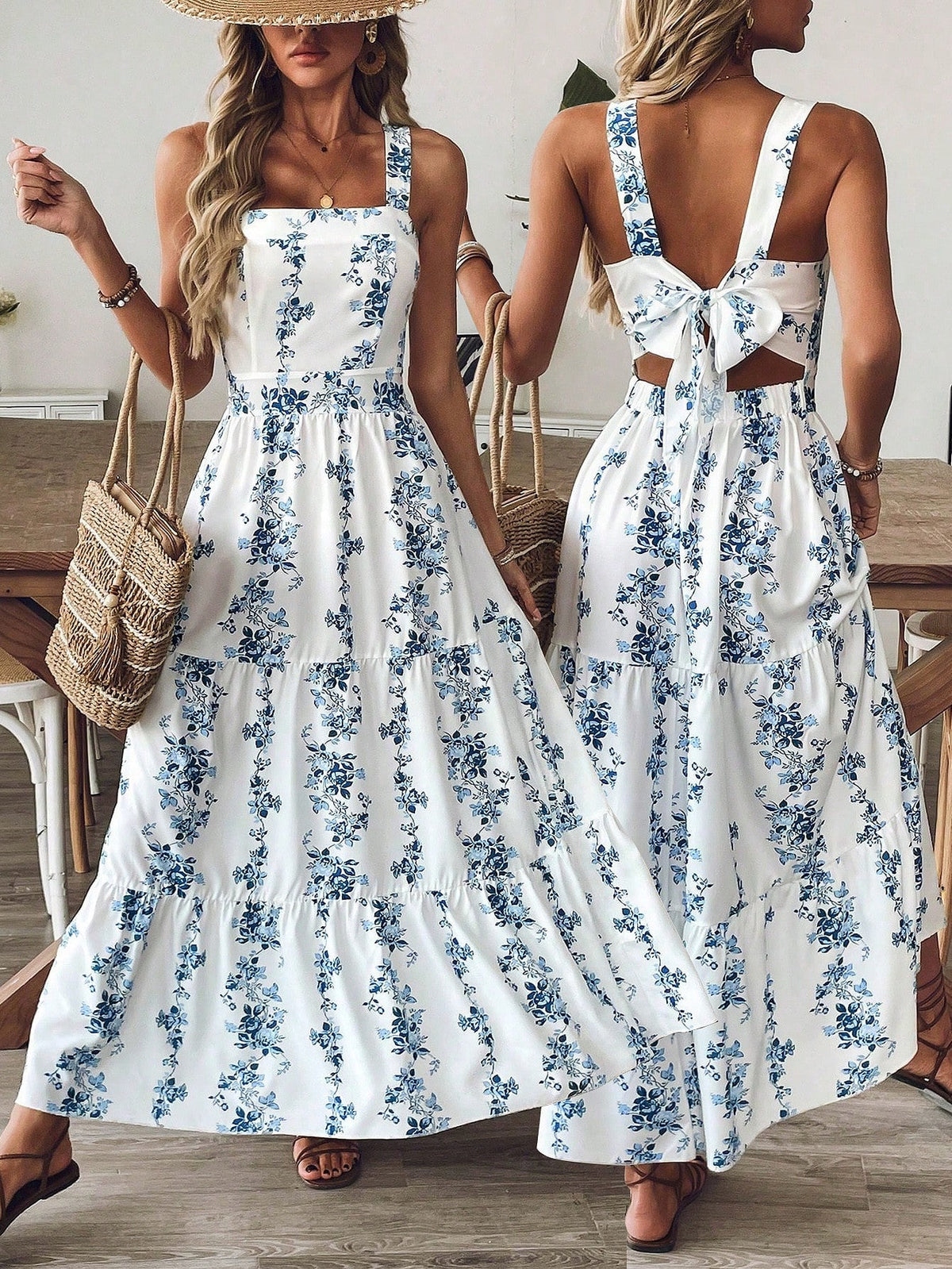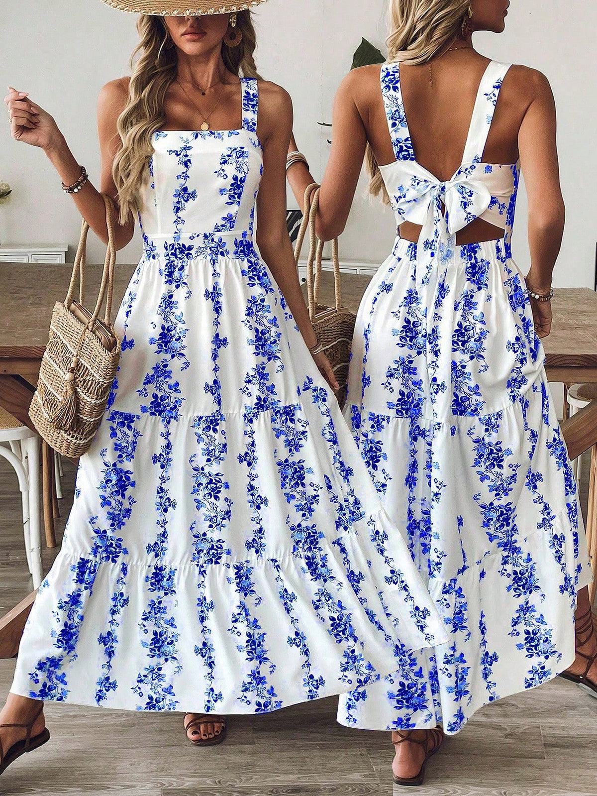 Easy, breezy, and polished. This blue & white printed midi features a waist-defined silhouette and comfy straps—perfect for daily commutes, coffee runs, and weekend plans.