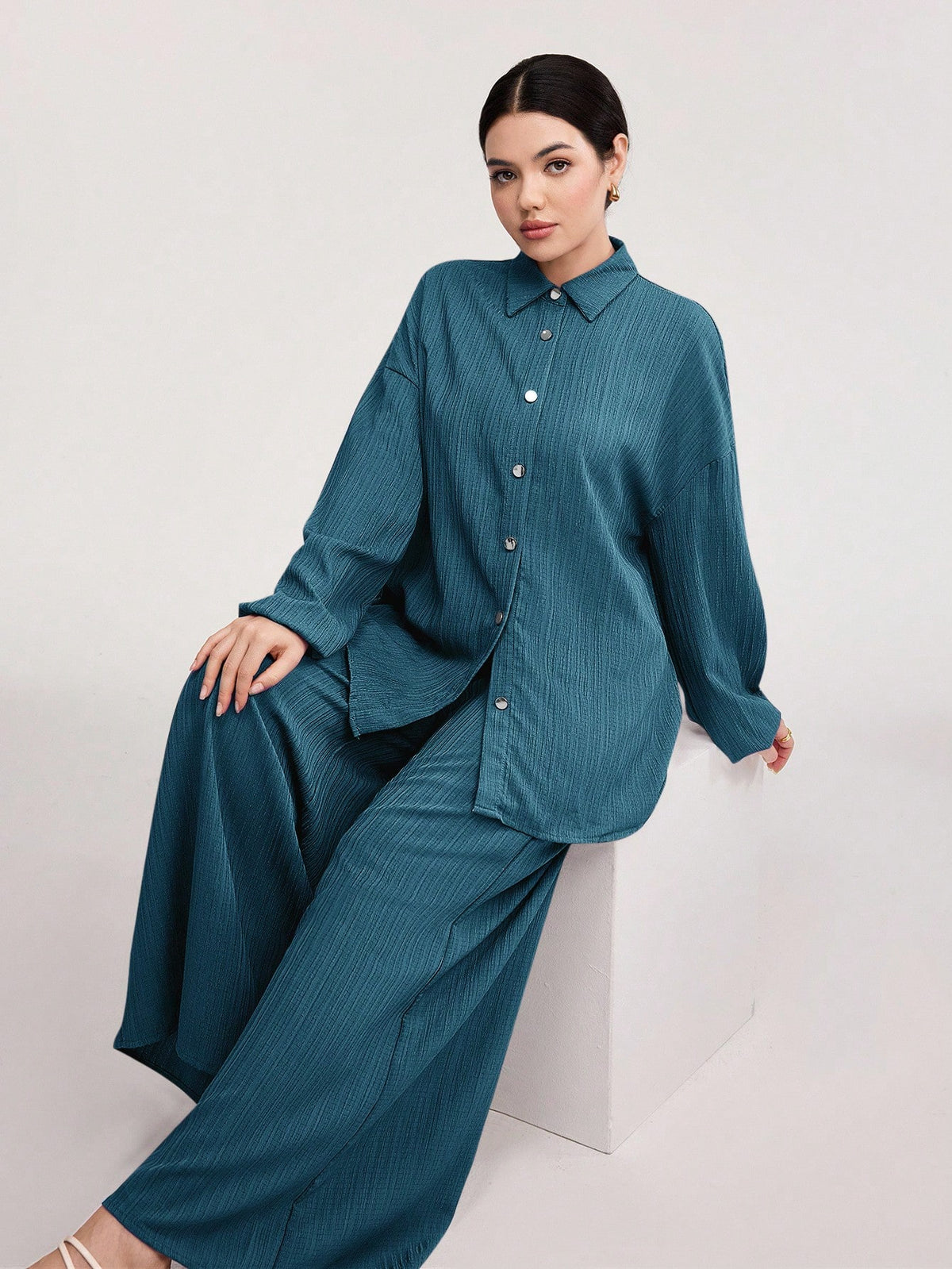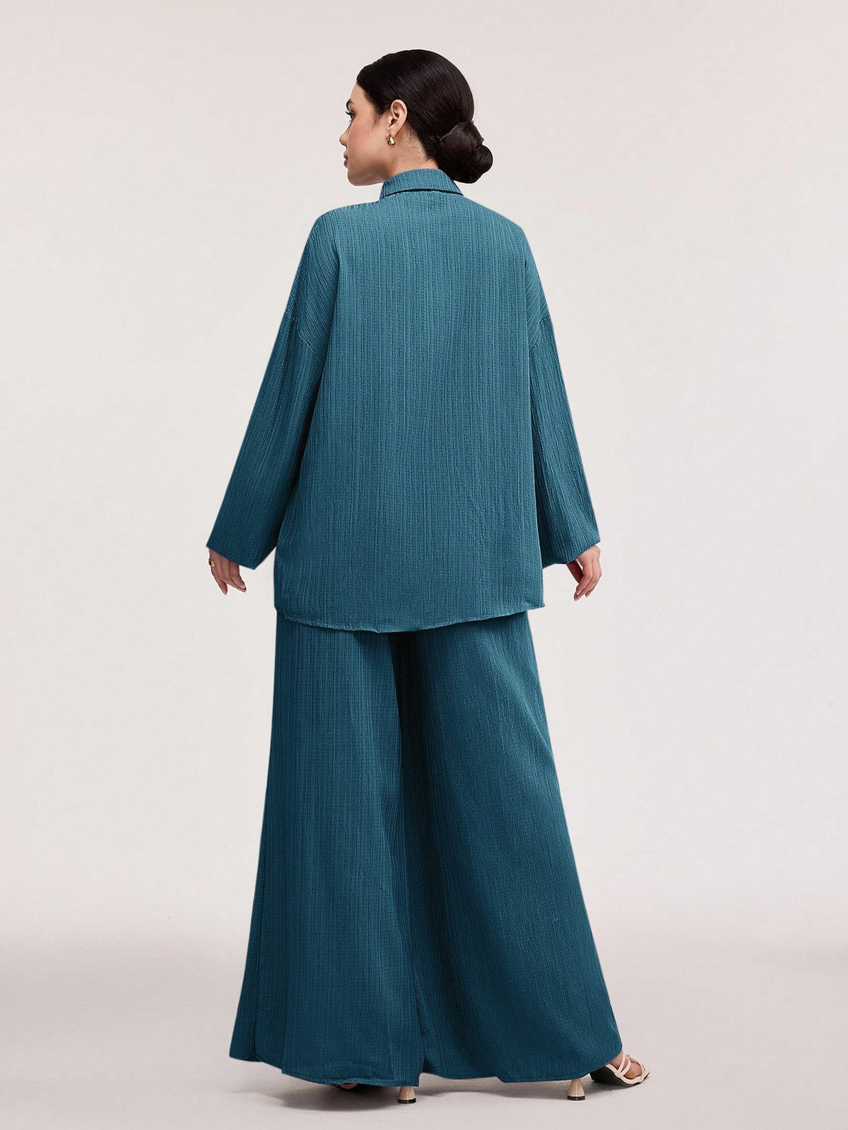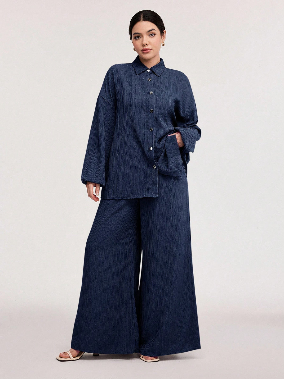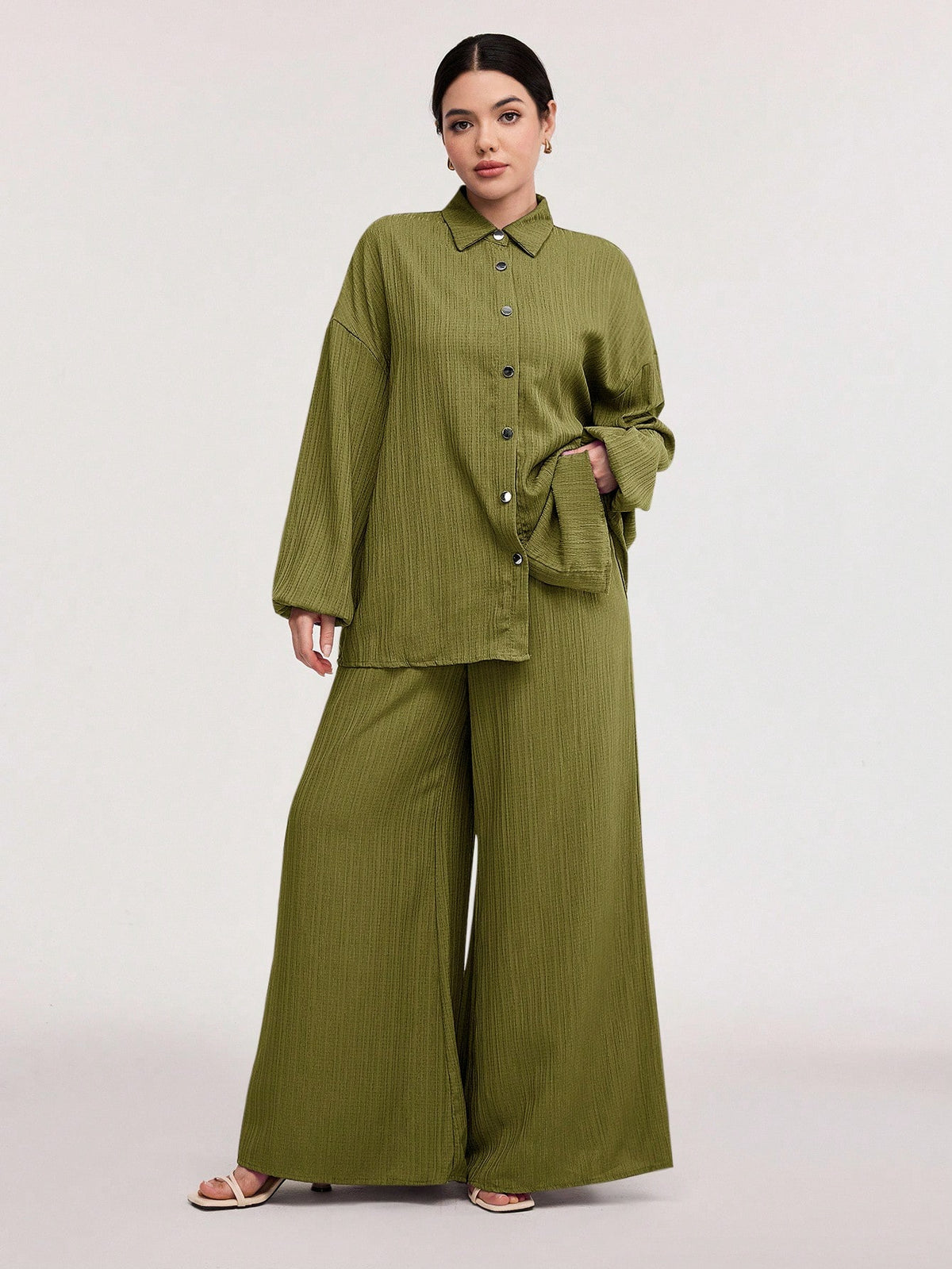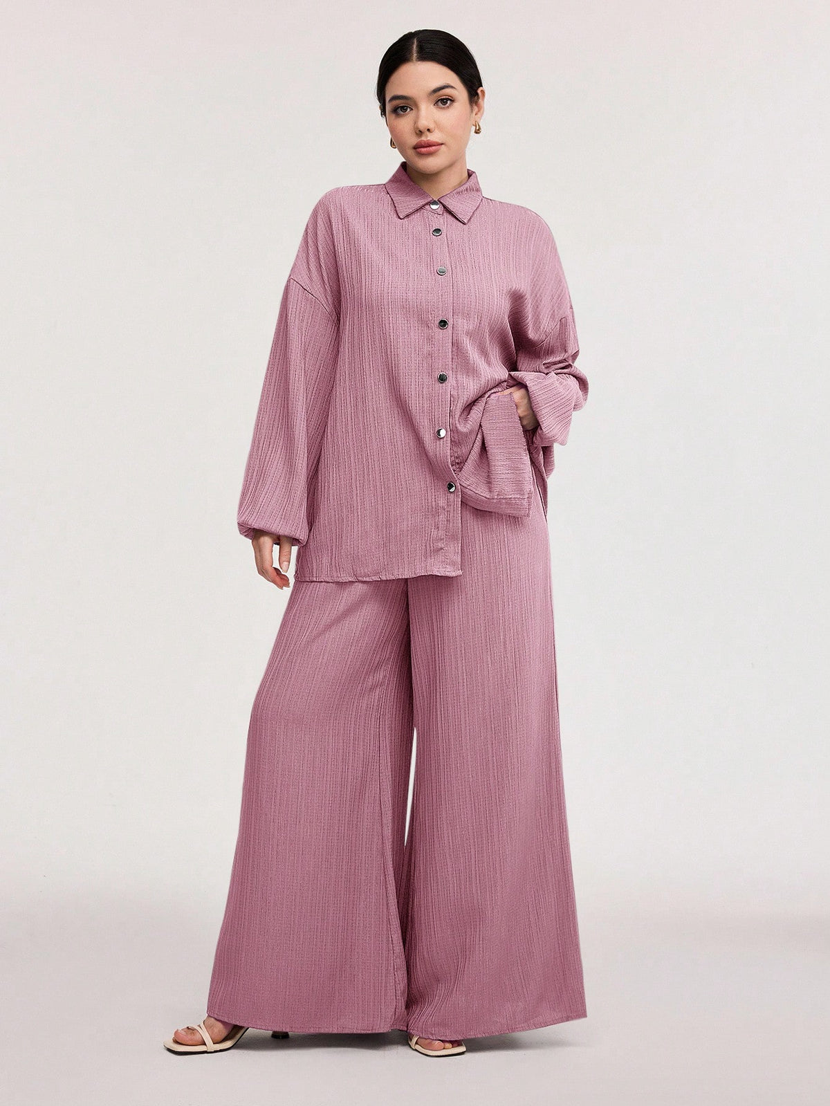 Textured Lantern Sleeve Pants Set