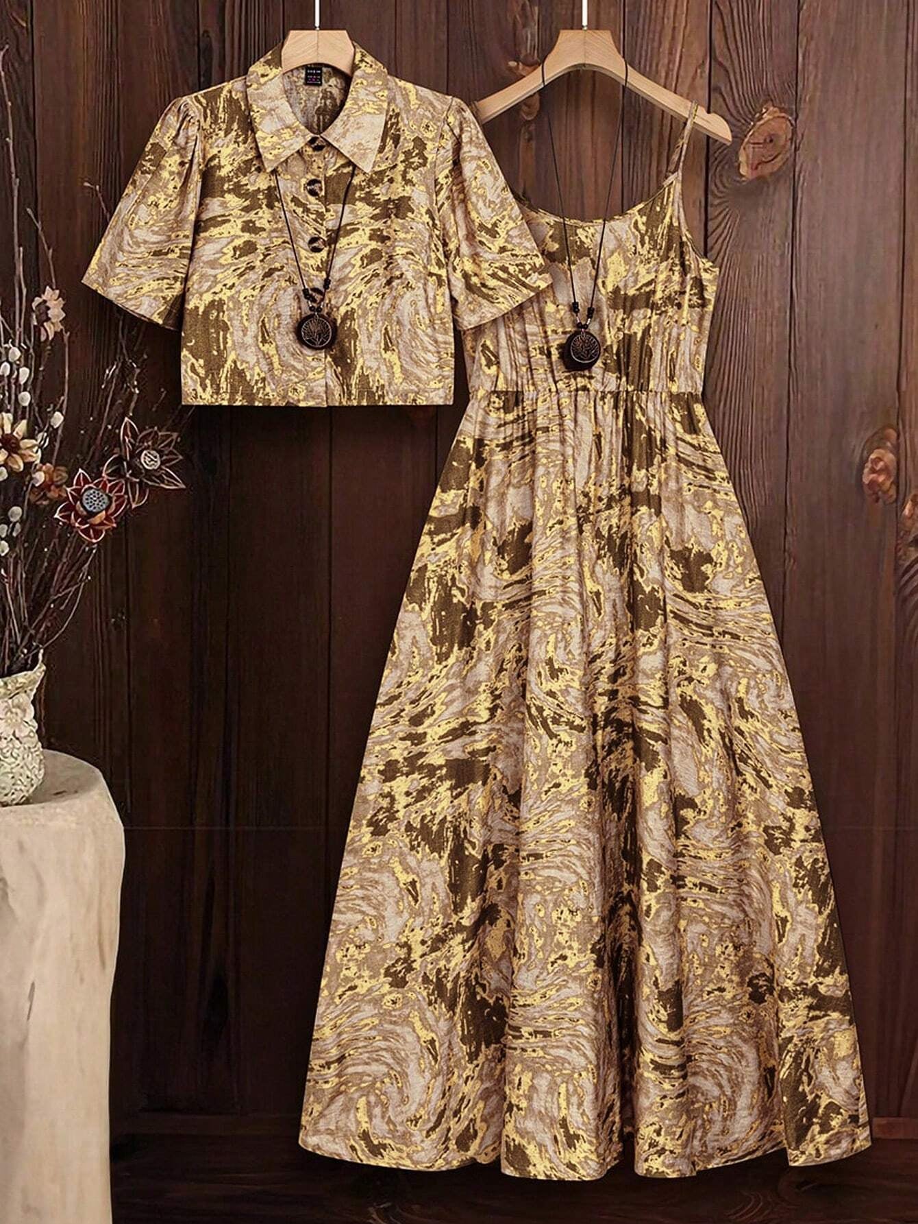Step aside, boring basics – this Tie-Dye Two-Piece Set is bringing the vibes. Featuring a breezy short-sleeve shirt and a slinky slip dress, this set is basically your summer BFF. Whether you’re beach-bound or brunching with the crew, the pastel tie-dye gives “I woke up like this” energy—effortless, comfy, and cool as hell.