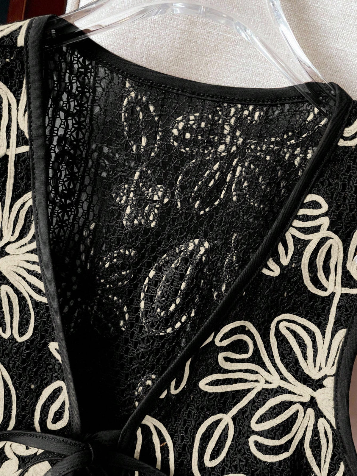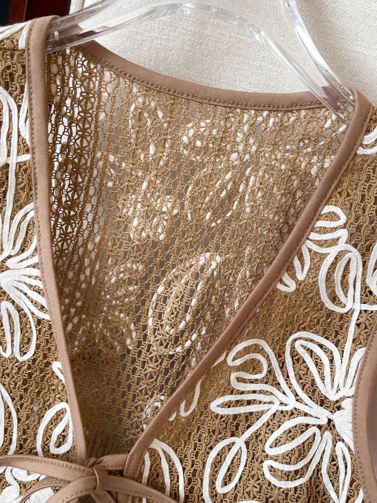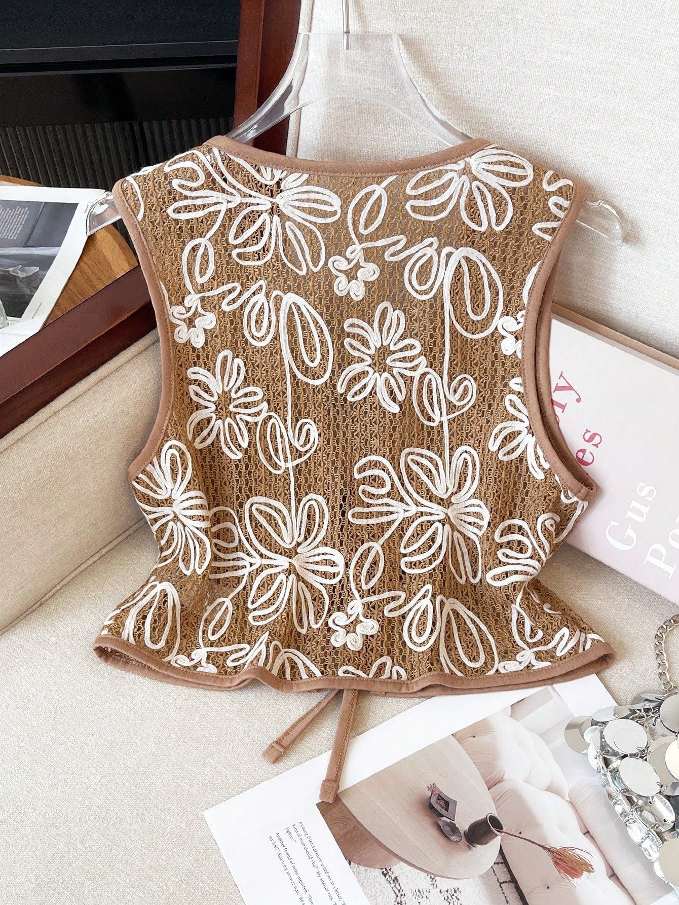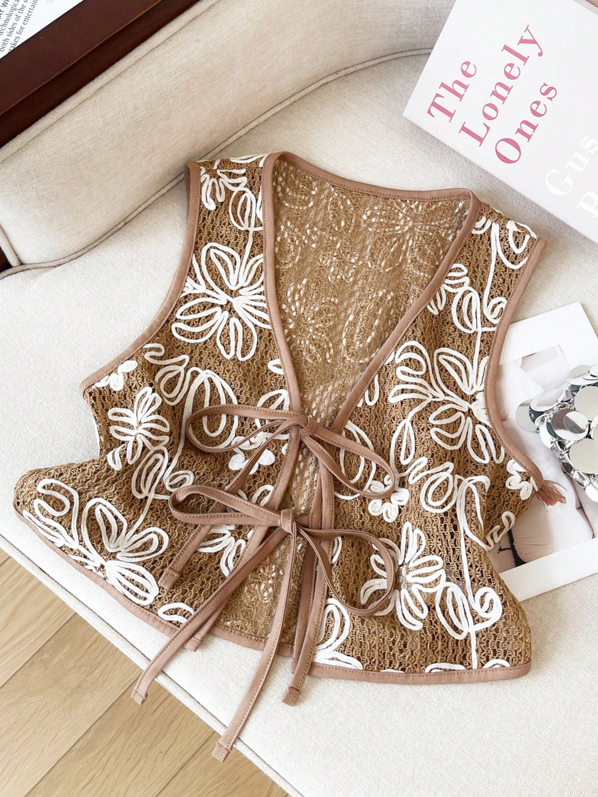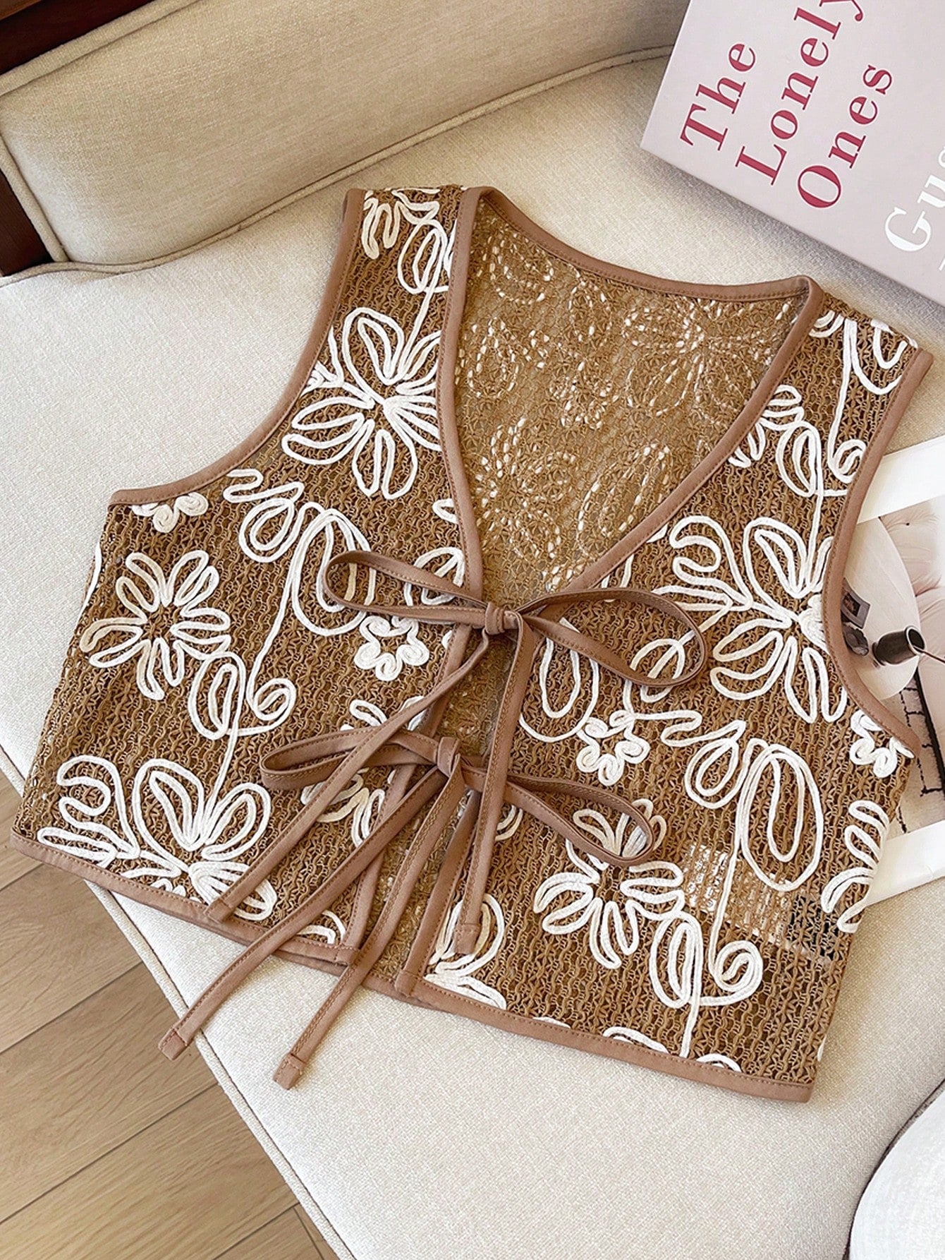 Stay stylish and breezy with this floral jacquard tie-front camisole. Featuring delicate jacquard texture and a tie-front design, this top is perfect for summer outings, casual wear, or evening gatherings.