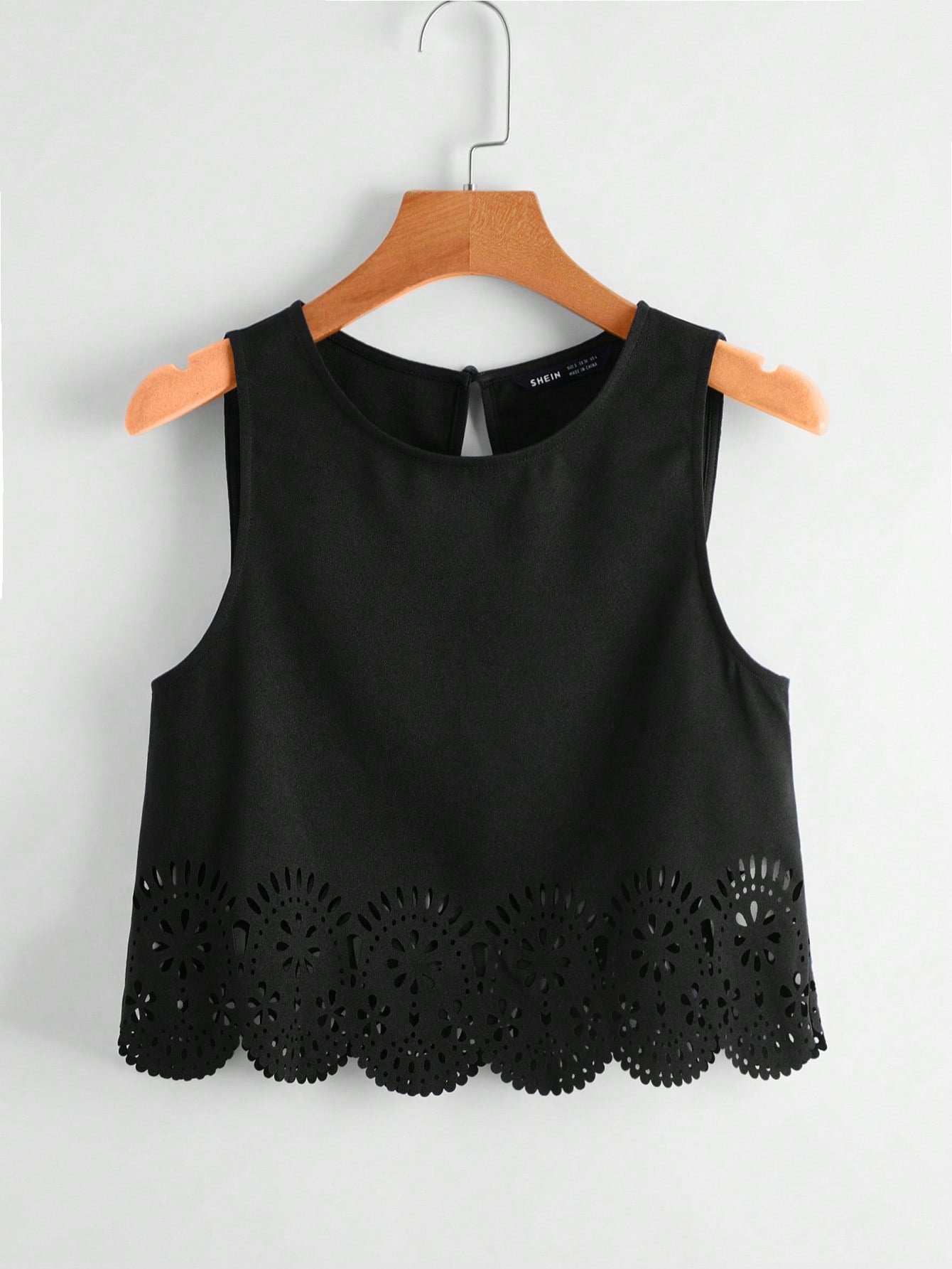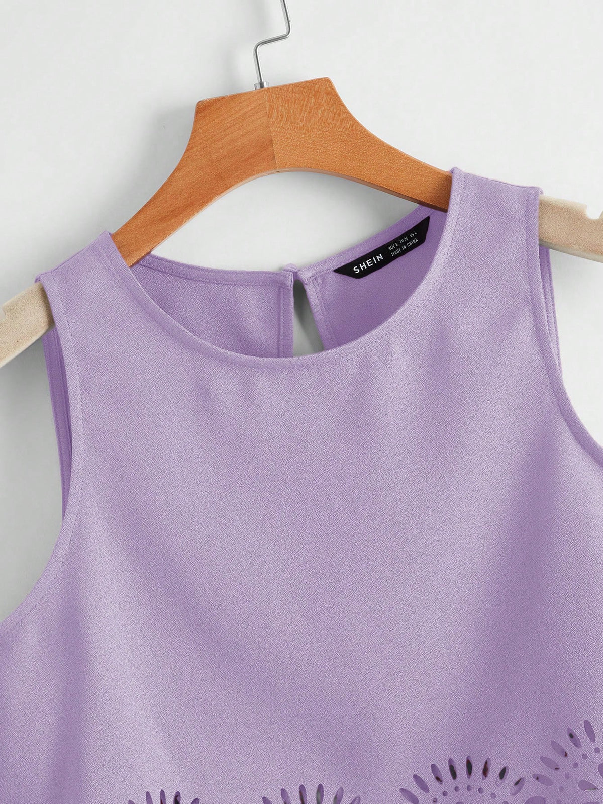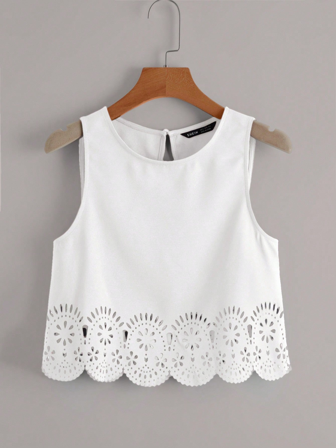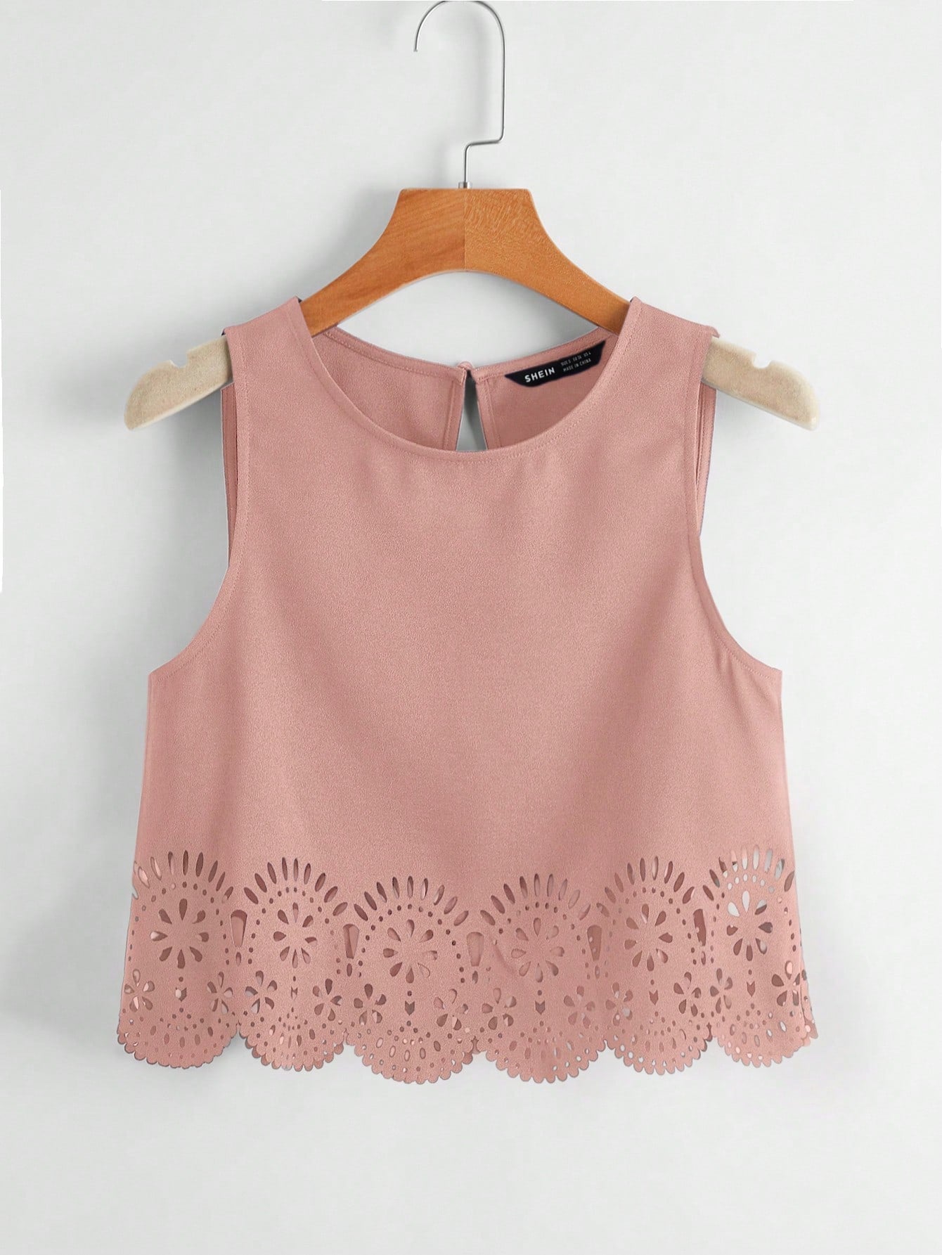 Add elegance to your summer wardrobe with this laser-cut scallop trim tank top from SHEIN LUNE. The delicate scallop edges and airy fabric make it perfect for casual outings, brunch, or office chic looks.