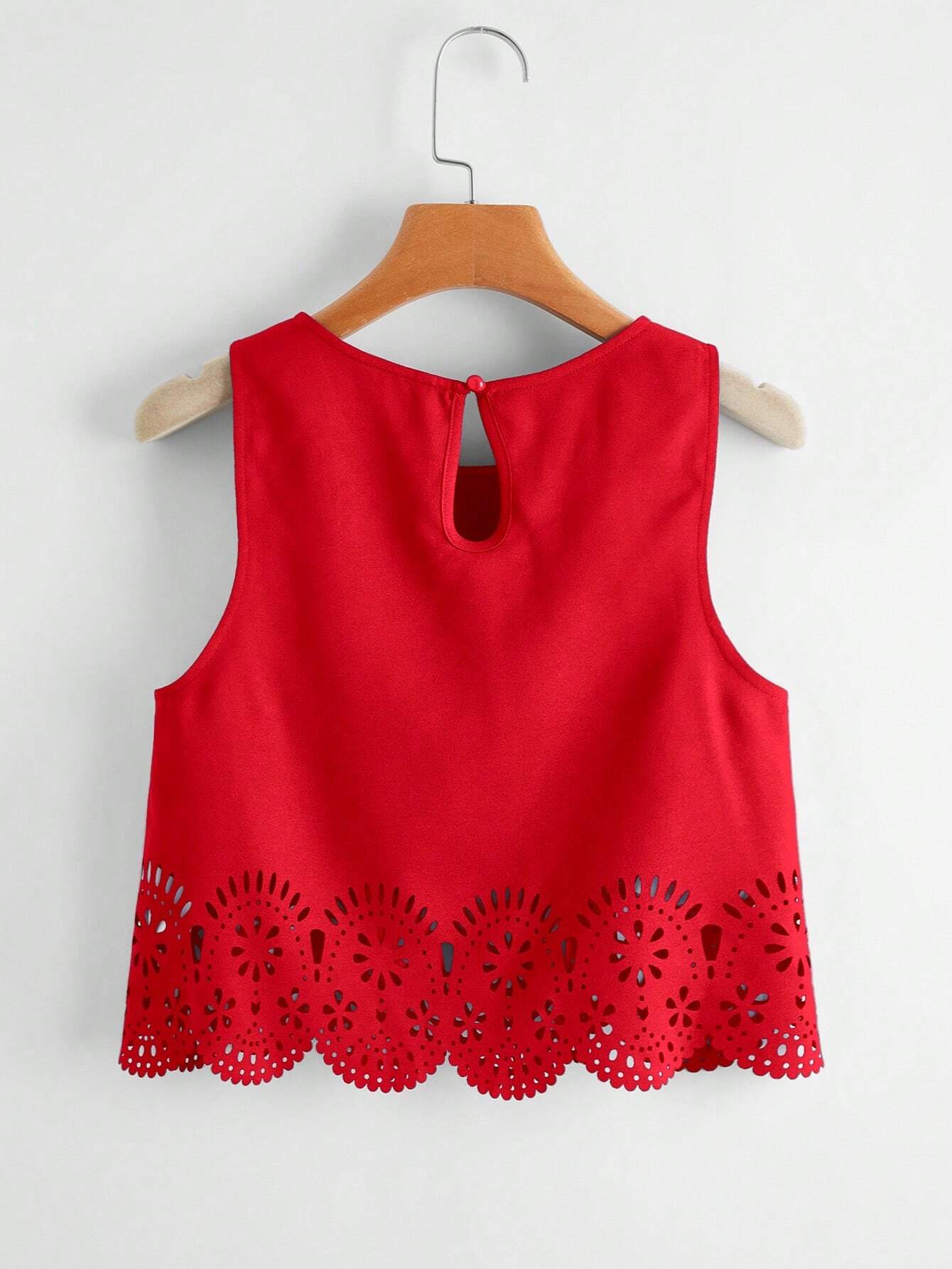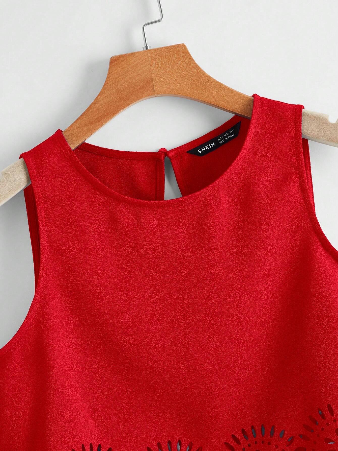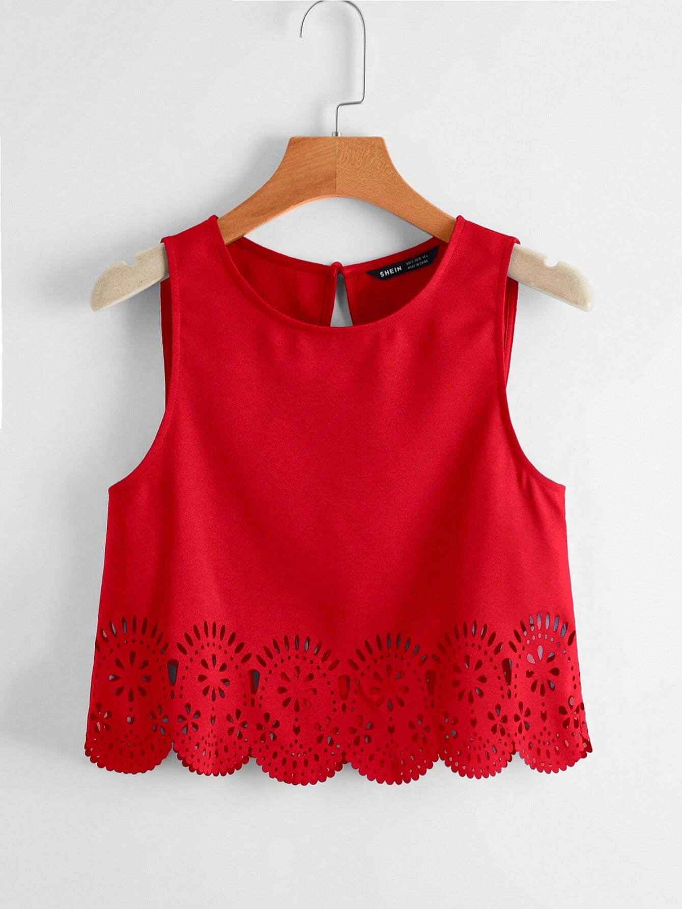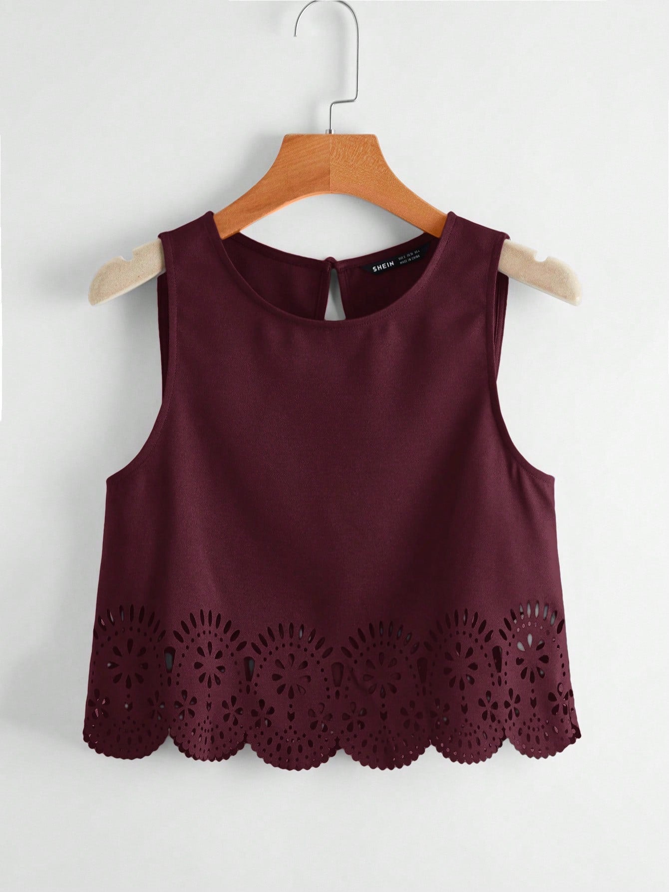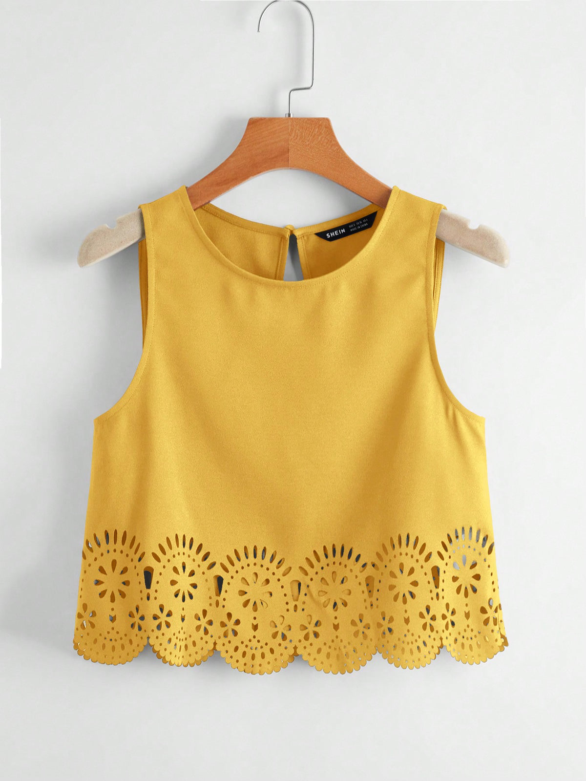 Add elegance to your summer wardrobe with this laser-cut scallop trim tank top from SHEIN LUNE. The delicate scallop edges and airy fabric make it perfect for casual outings, brunch, or office chic looks.