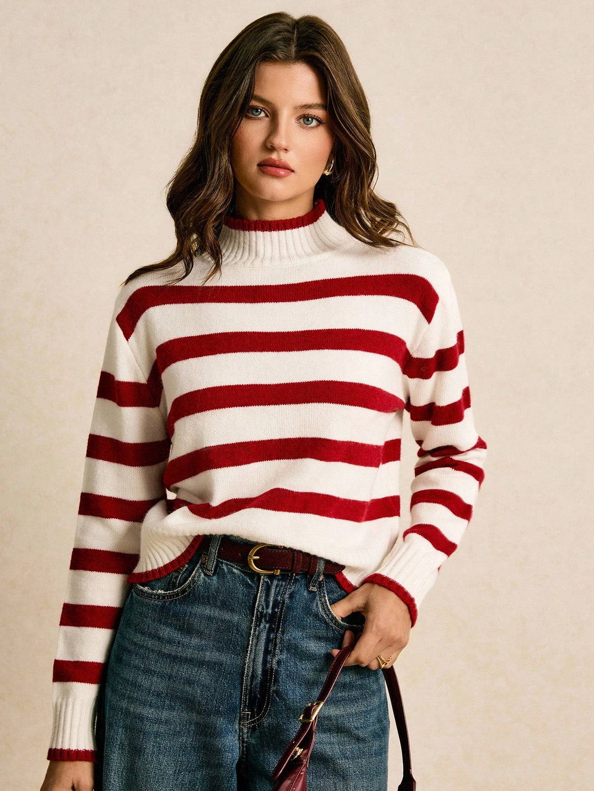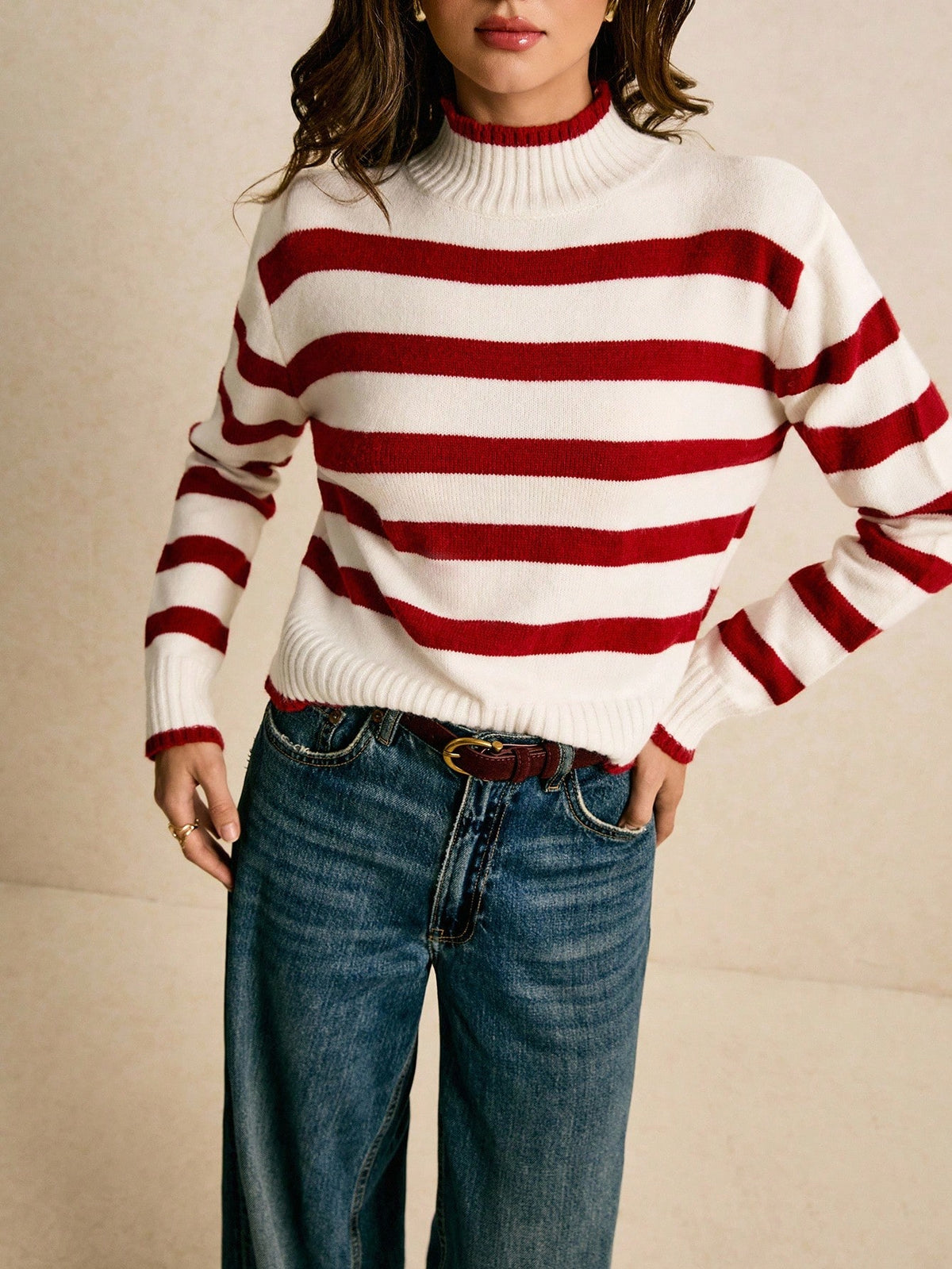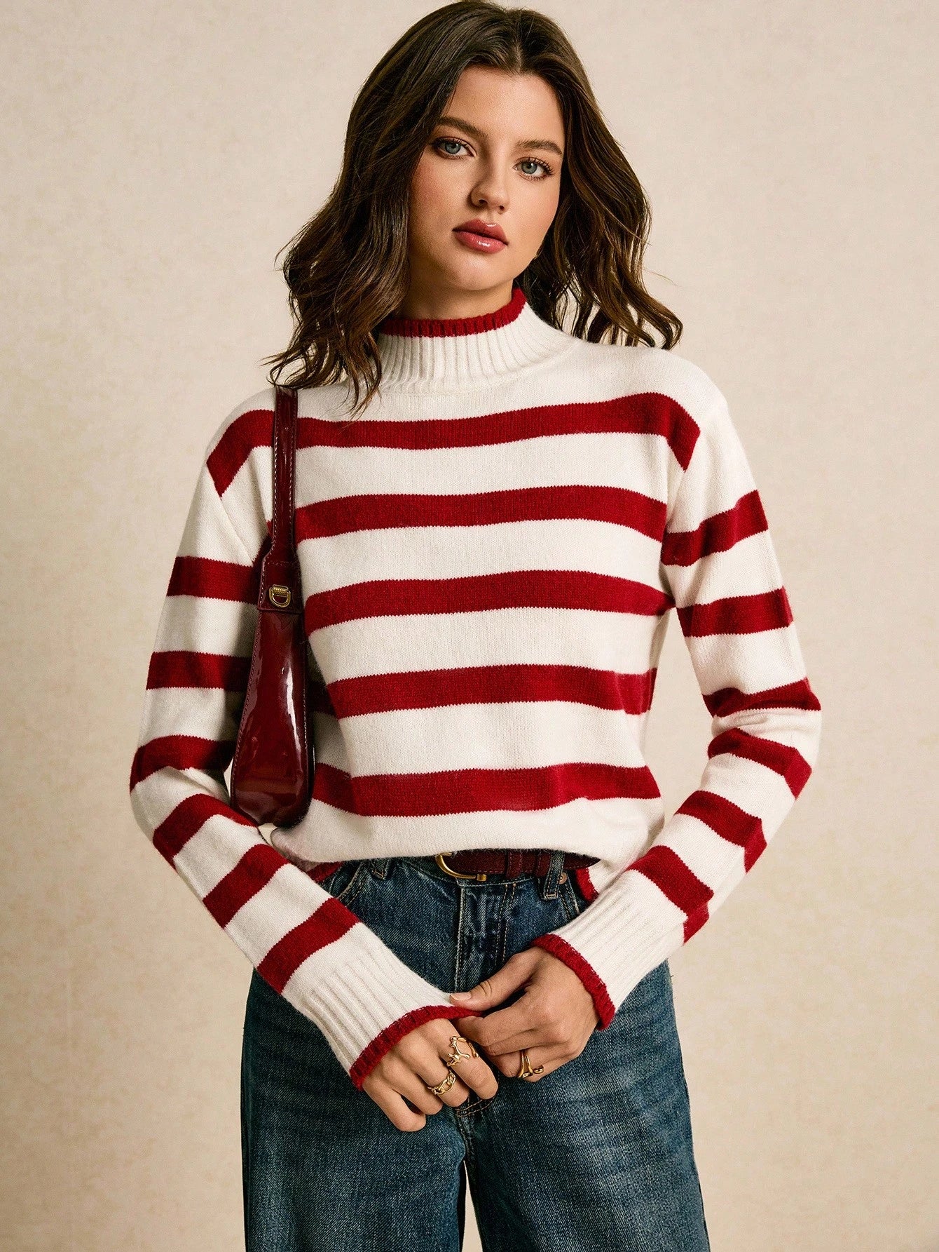 Stay warm and stylish with this cozy winter essential! Featuring a bold colorblock design with subtle stripes and a stand collar, this casual sweater is perfect for layering during the chilly months in Pakistan. Its relaxed fit offers comfort without compromising on style, making it an ideal pick for everyday wear or casual outings.