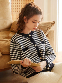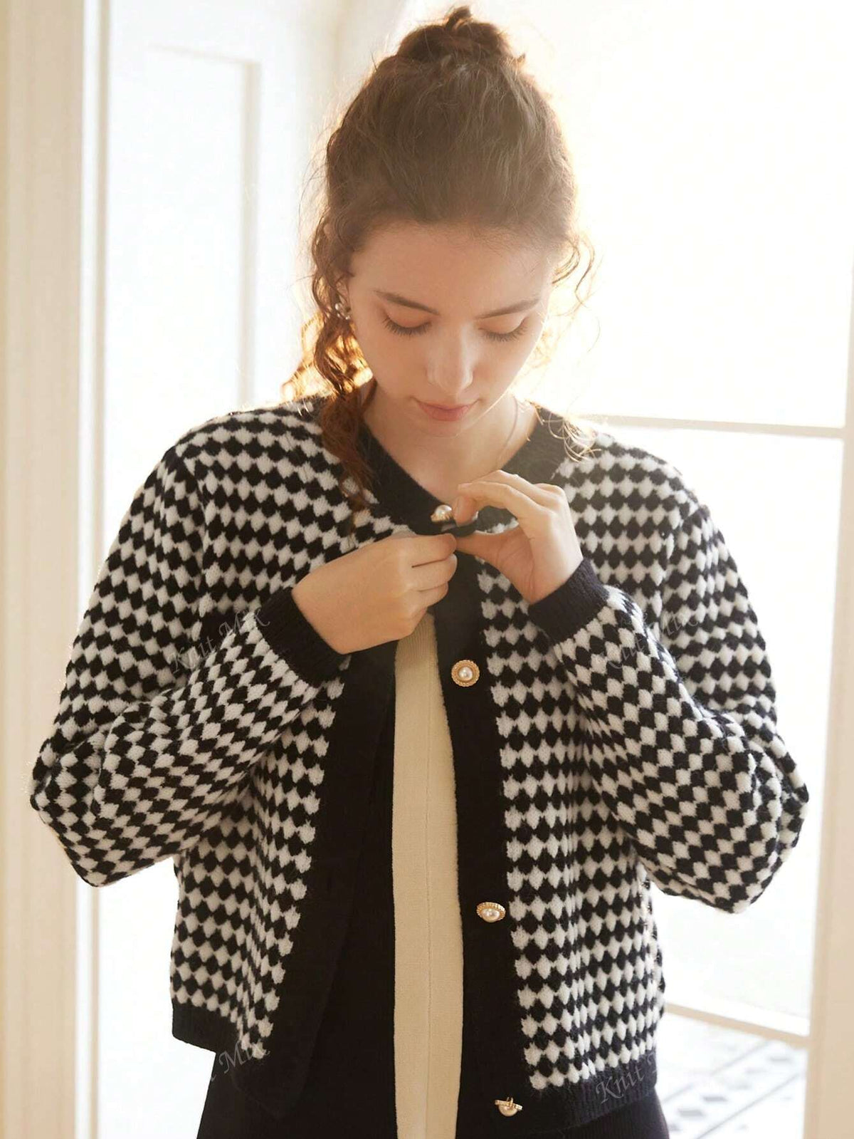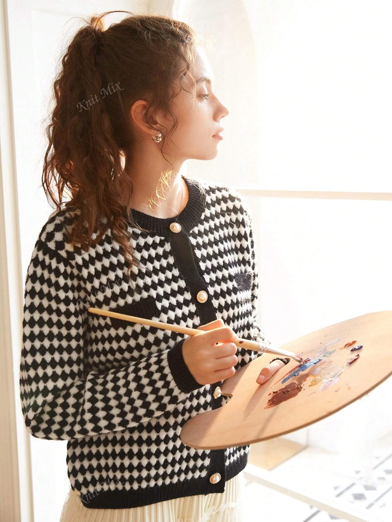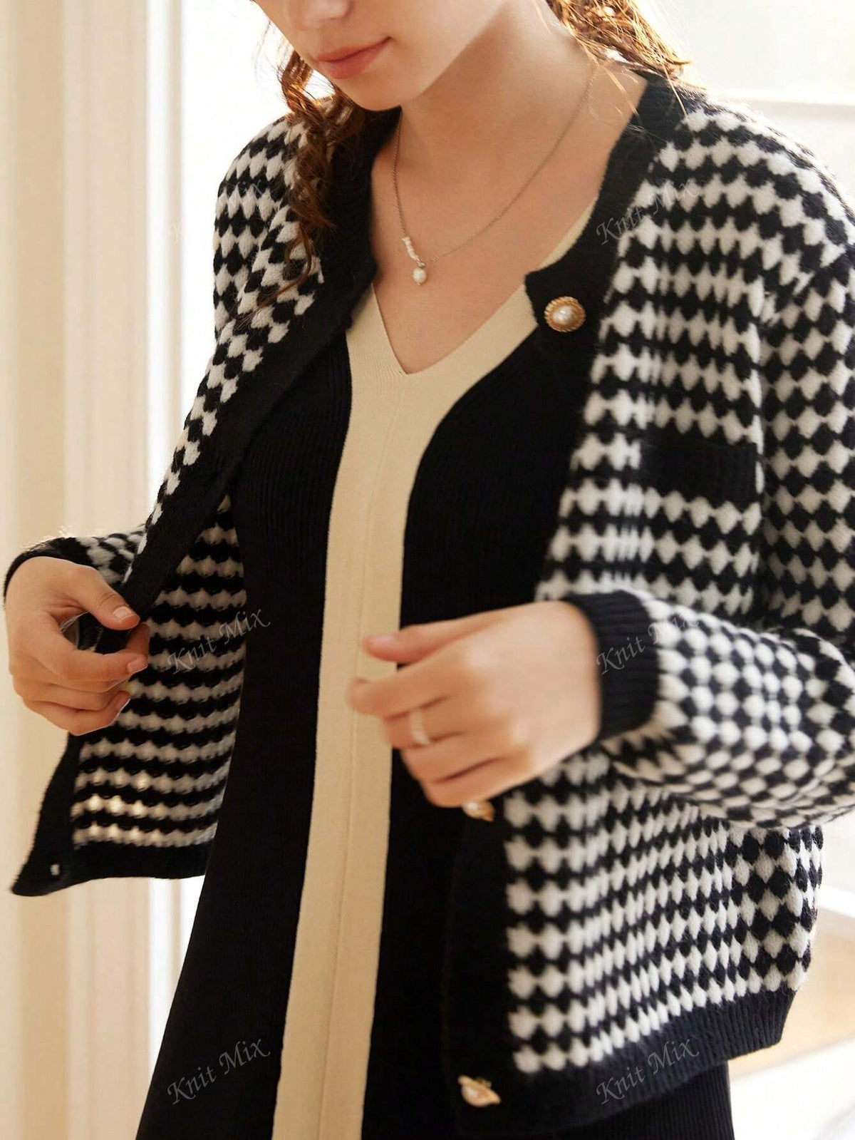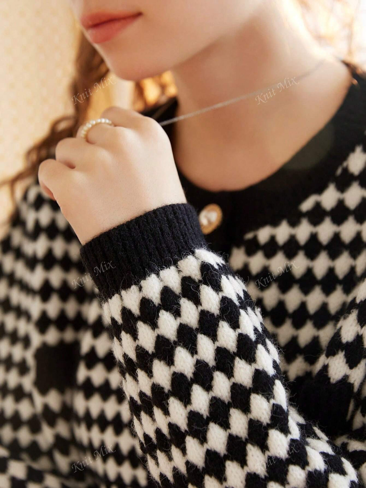 Stay warm and stylish with this chic plaid pearl button cardigan, designed with a cozy knit fabric and loose-fit silhouette. Inspired by French commuter fashion, this soft and fashionable sweater is perfect for winter, fall, and even chilly spring evenings in Pakistan. Featuring a modern plaid pattern, elegant pearl buttons, and a flattering neckline, it pairs beautifully with jeans, skirts, or dress pants.