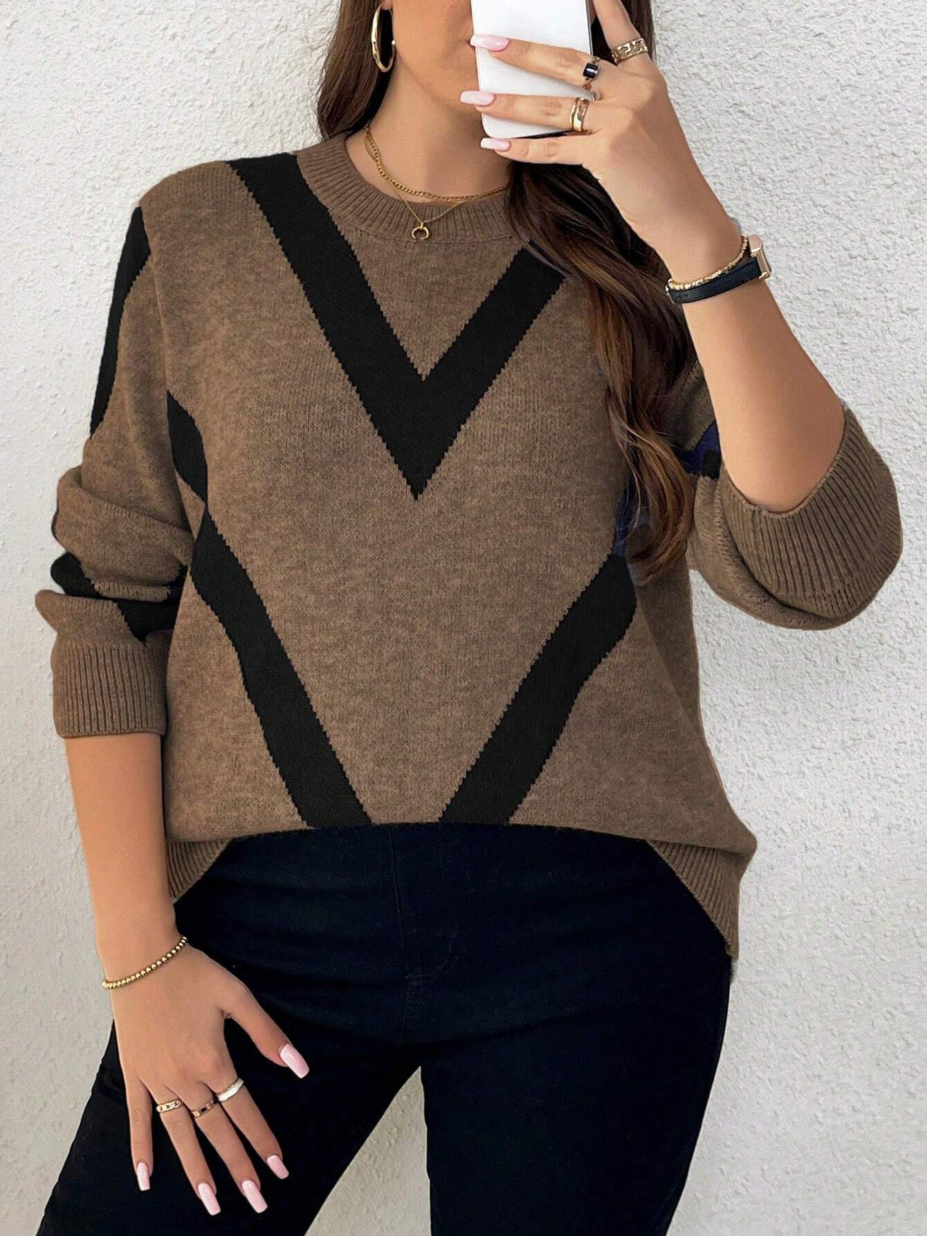 Stay cozy and stylish this winter with our Plus Size Jacquard Knit Pullover Sweater, perfect for casual wear in Pakistan’s chilly months. Designed for comfort and fashion, this long sleeve sweater features a textured knit, flattering fit, and timeless design ideal for layering or wearing solo.
