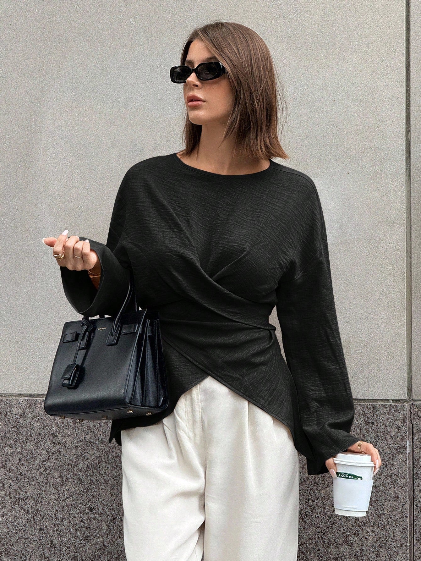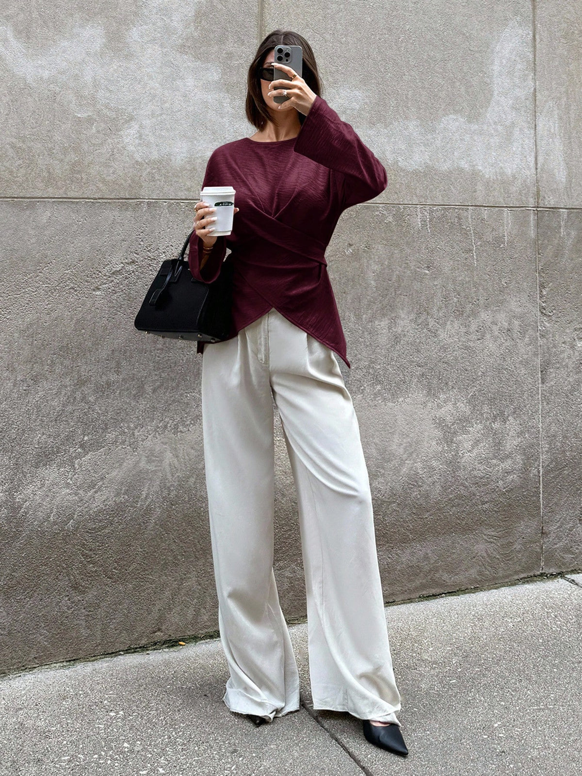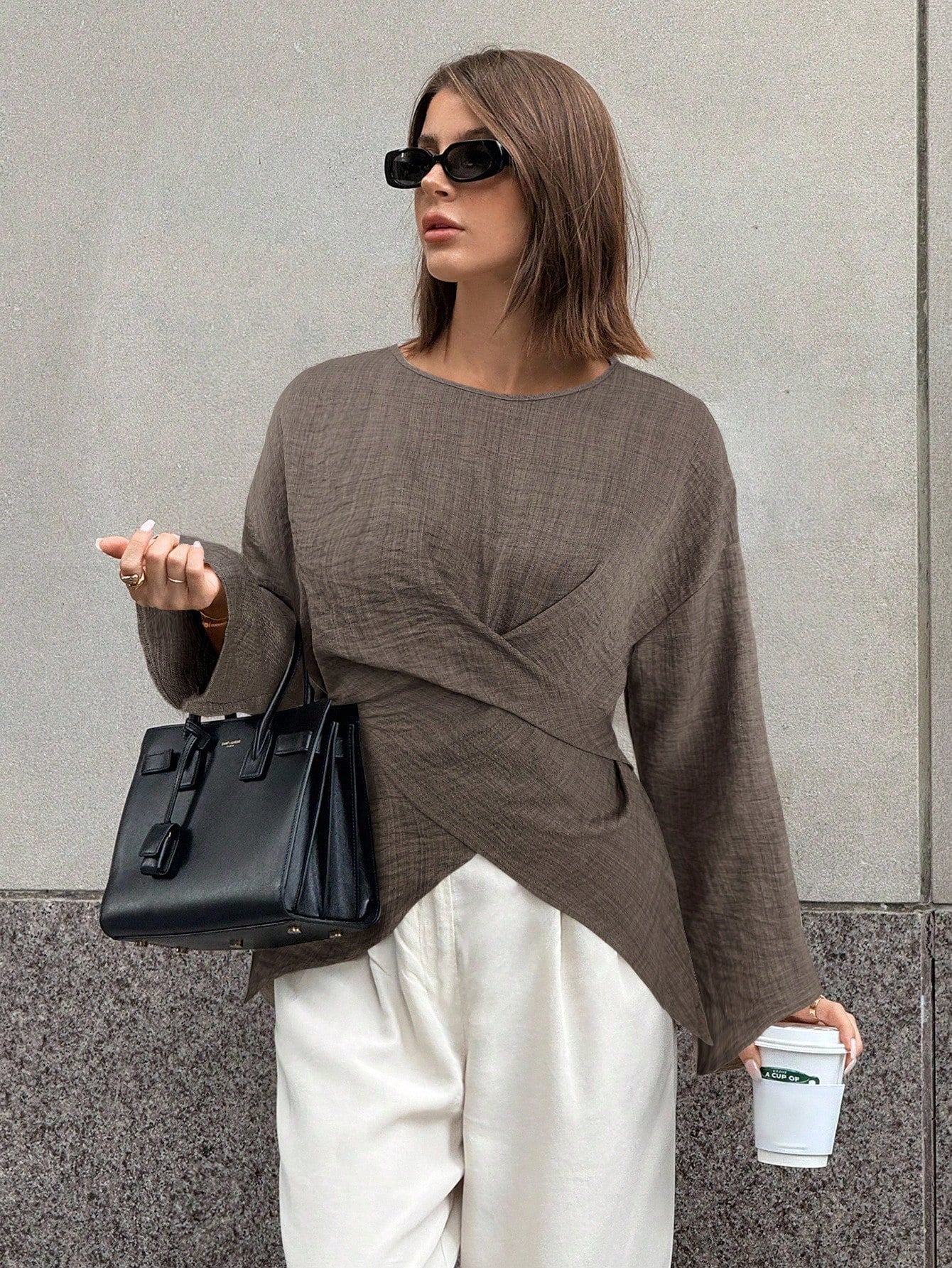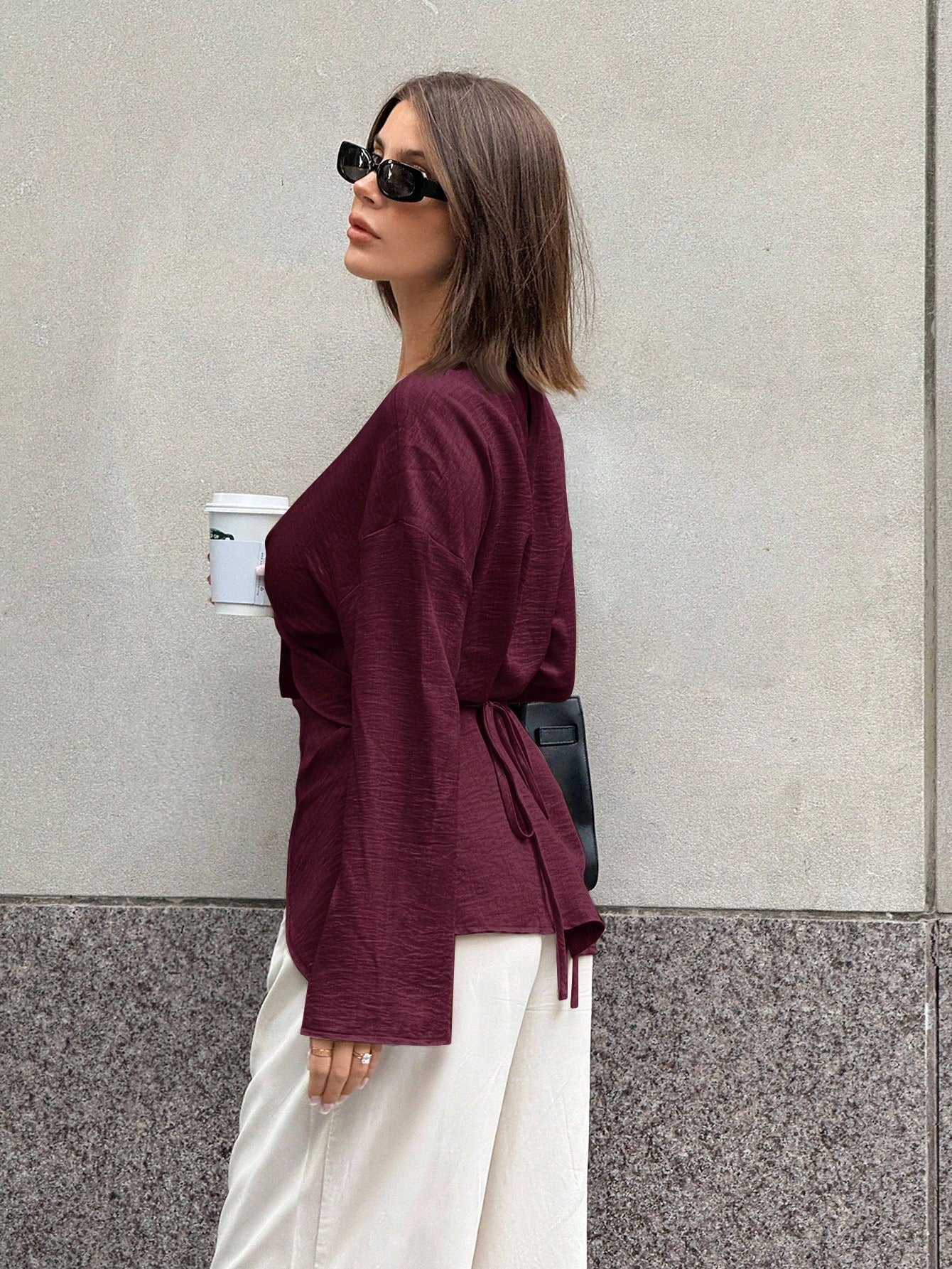 Step into effortless style with this Women's Solid Color Cross Wrap Shirt. Designed for comfort and elegance, this casual commuter top features a flattering wrap design that suits all body types. Whether you're heading to the office or a casual lunch, this shirt blends versatility with fashion-forward vibes.